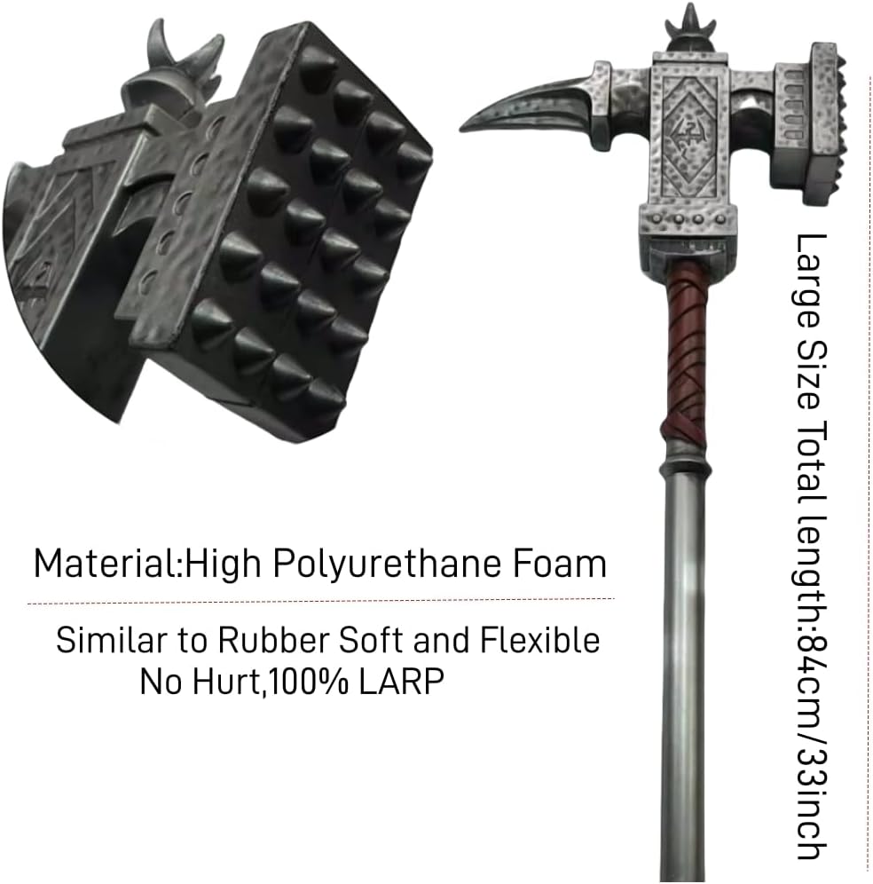 damdos Halloween Prop Cosplay Arma Damage-Hammer, 83,8 cm Cosplay Arma Spada Martello Gioco di ruolo Regali di compleanno, Martello Danneggiamento dell'arma, 84 cm
