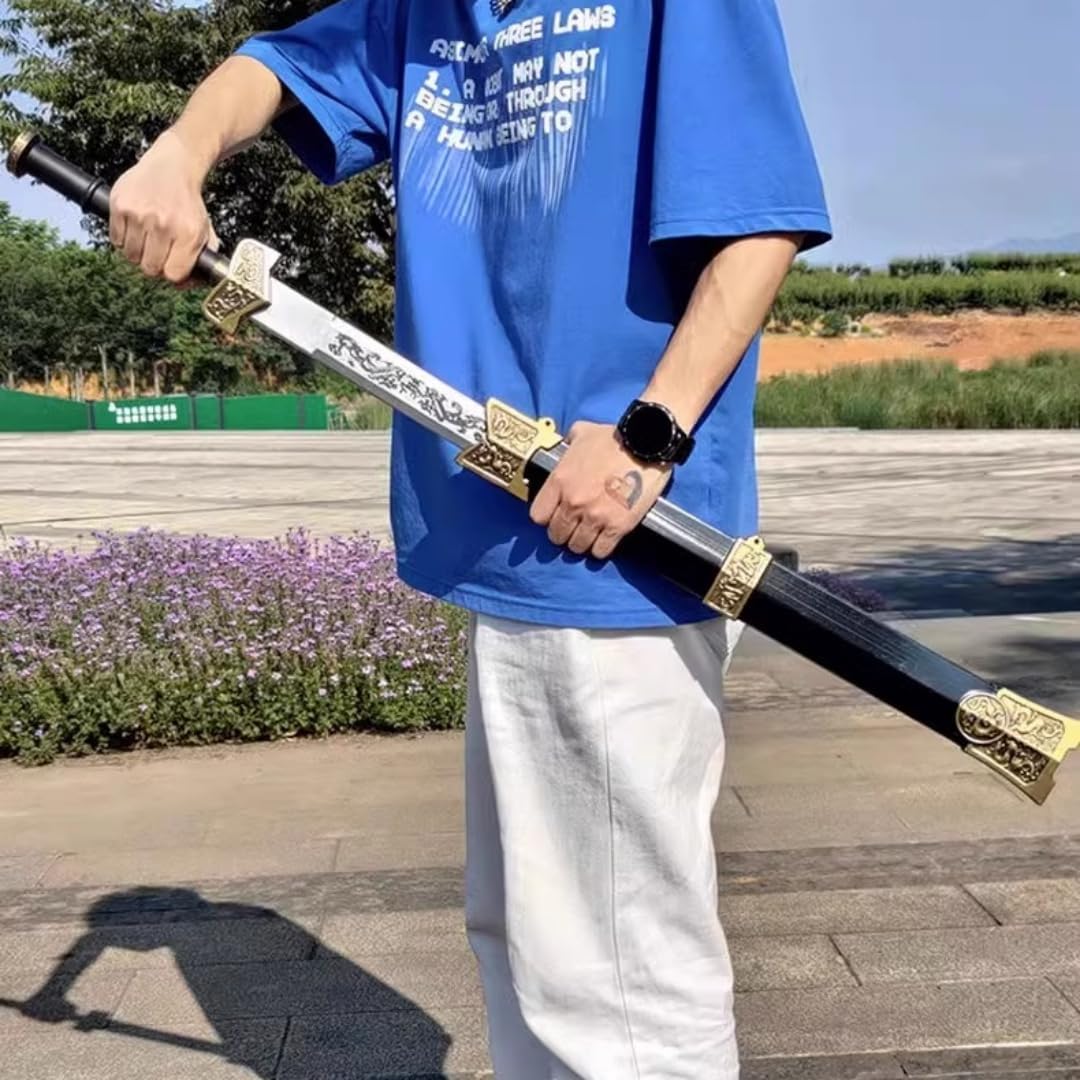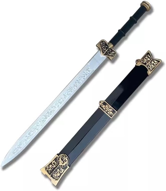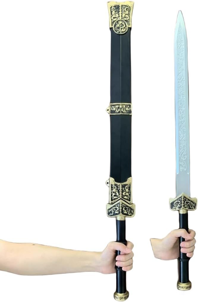 Oggetti di scena per Halloween, spada tradizionale cinese, spada Kung Fu, spada della dinastia Han, giochi di ruolo, regali di compleanno Morbido e sicuro: realizzato in materiale espanso EVA PU durevole e sicuro, morbido e flessibile, 100% LARP Marchio: Damdos, la taglia grande misura ca. Lunghezza: 80 cm Ideale per: LARP, giocatori di ruolo, costumi, montaggio a parete, collezionisti, regali di compleanno Il pacchetto include: spada e fodero