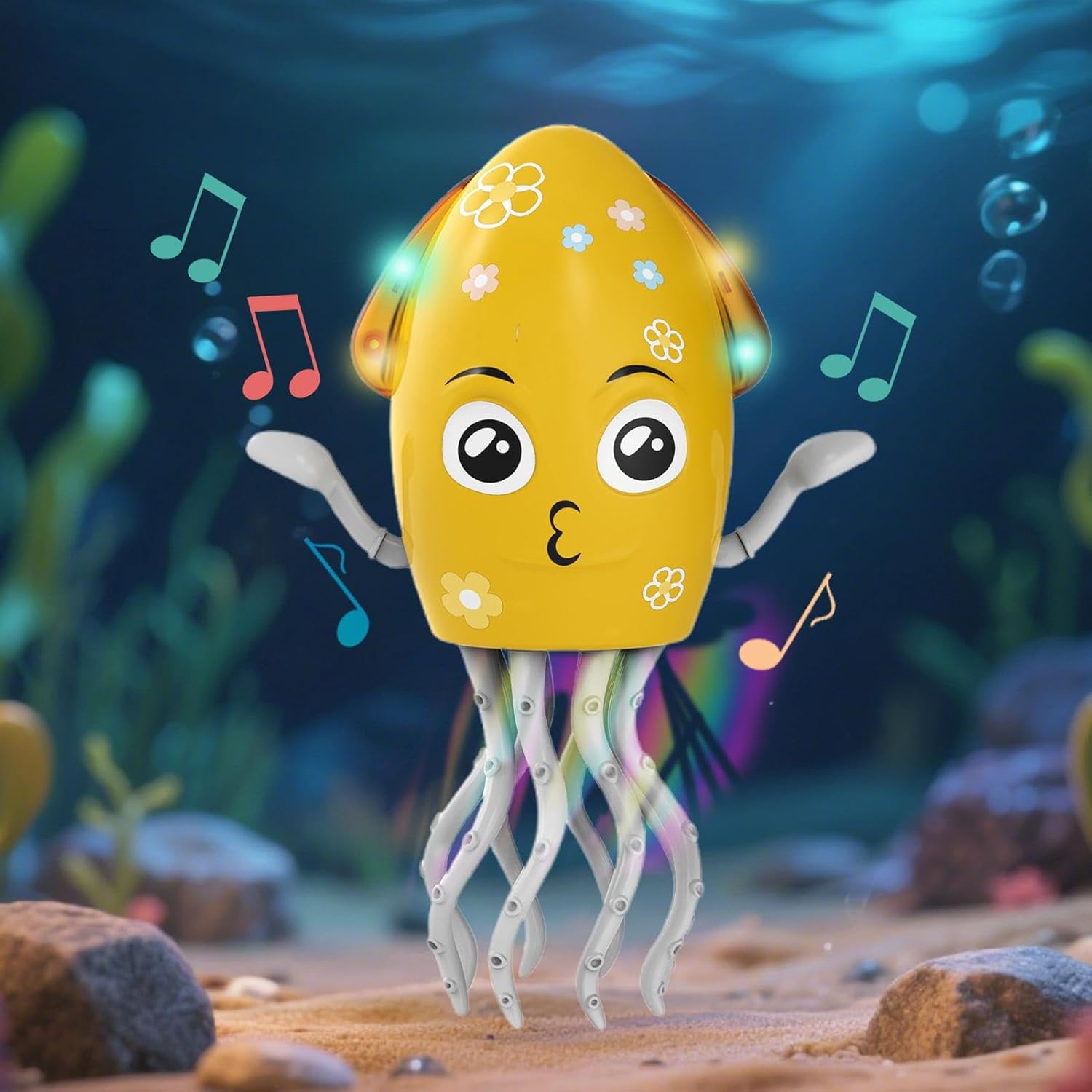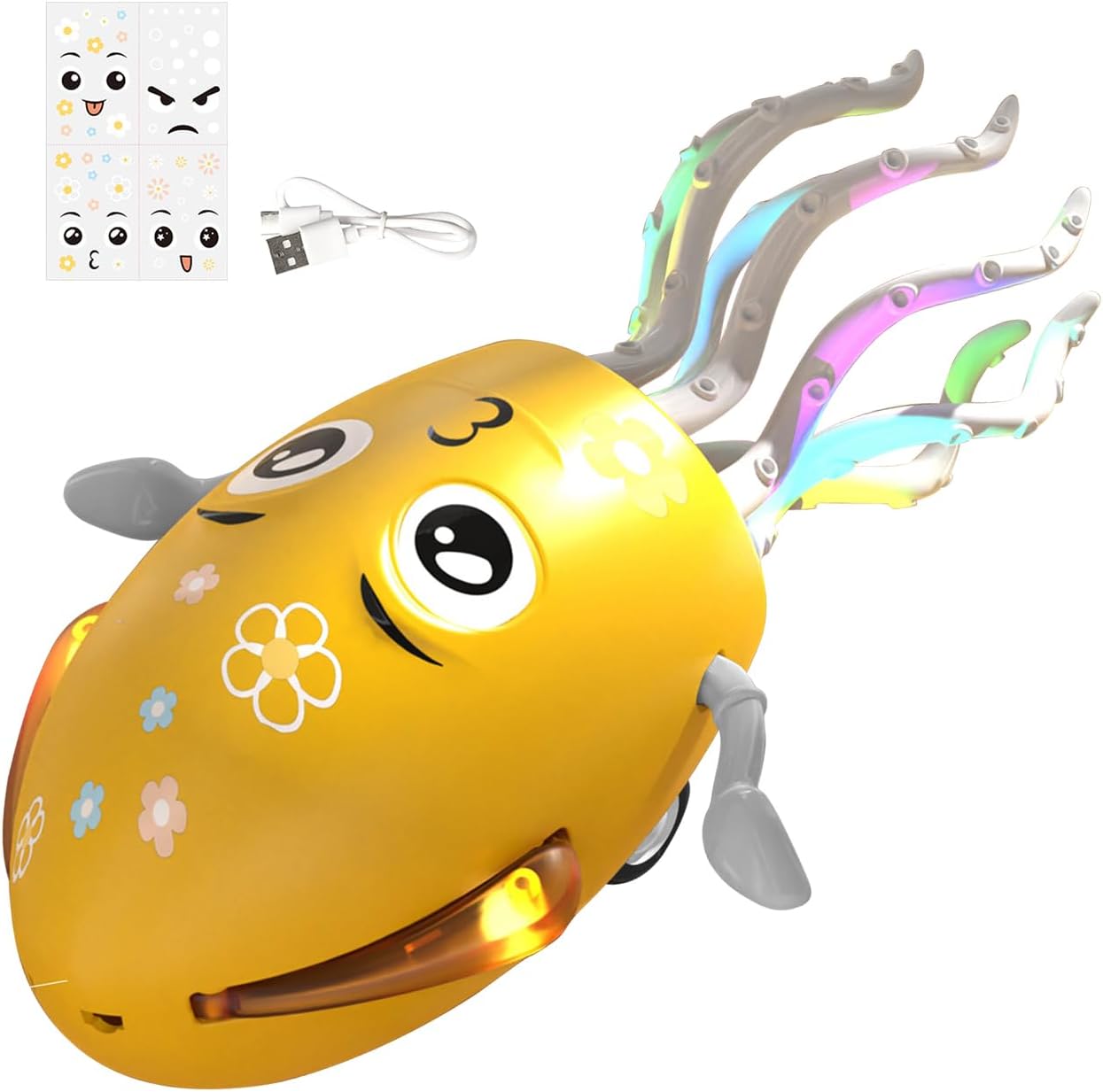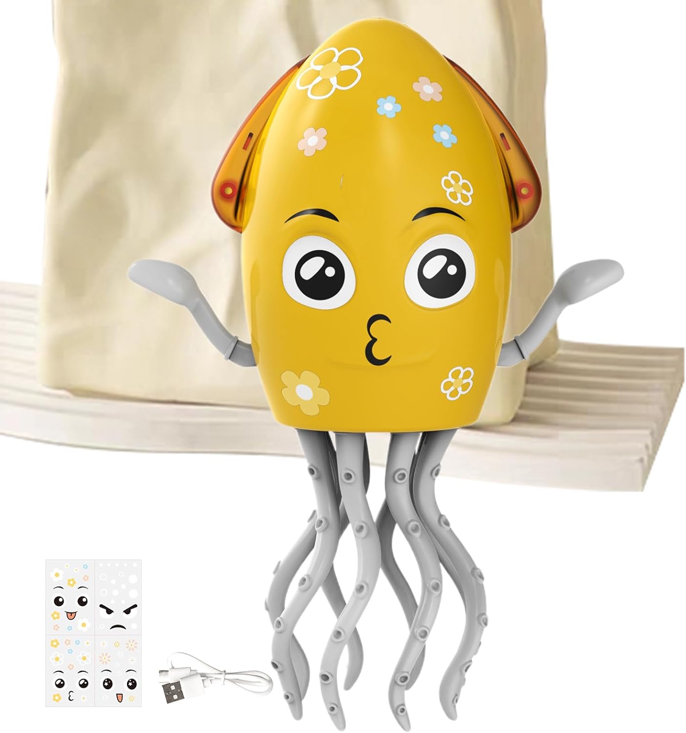 Aggiungi divertimento: incoraggia la creatività con le caratteristiche del viso adesive, offrendo combinazioni flessibili per espressioni di polpo distintive che ispirano il gioco fantasioso e i design distintivi Design attraente: vantando routine di danza esagerate e movimenti agili, il giocattolo offre una performance accattivante attraverso la tecnologia 3D avanzata, completata da una consistenza morbida che garantisce comfort e impegno duraturo per i bambini Stimolazione uditiva e visiva: luci a LED colorate con musica dinamica e ritmi, per catturare l'attenzione, stimolando al contempo la consapevolezza sensoriale negli utenti di tutte le età, migliorando il gioco con effetti visivi coinvolgenti Promozione delle competenze: incoraggiare la percezione del ritmo e il coordinamento del corpo, questo giocattolo crea opportunità per l'interazione divertente integrando al contempo l'apprendimento delle lingue nelle routine di gioco quotidiano ABS sicuro: con un basso consumo energetico, il giocattolo è realizzato in materiale ABS, garantendo una durata, una finitura e una durata della batteria estesa per divertimento ininterrotto