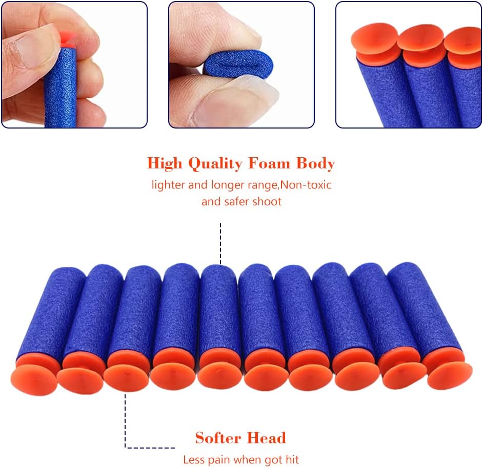 Qualità e materiale: le freccette sono realizzate in plastica atossica di alta qualità e schiuma EVA, grandi quantità, durevoli, soddisfano le tue esigenze quotidiane. Avvertenza di sicurezza: per i bambini che sono adatti a partire dagli 8 anni. Non mirare agli occhi o al viso. Dimensioni: ogni dimensione delle munizioni è di 7,2 cm x 1,2 cm (lunghezza x diametro). Colore: blu. Compatibilità: adatto per NERF N-Strike Elite o B9837 A8494 A3901 C0391 C0390 B4616 A1691 A1690 36033 53378 A0200 98696 B6259 B7. 169 B 5574 B5573 B5816 B4620 A9316 A0707 98695 ecc. Contenuto della confezione: 100 freccette blu, prezzo conveniente ma lo stesso divertimento dell'originale.