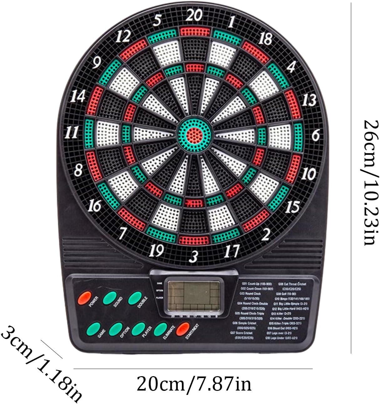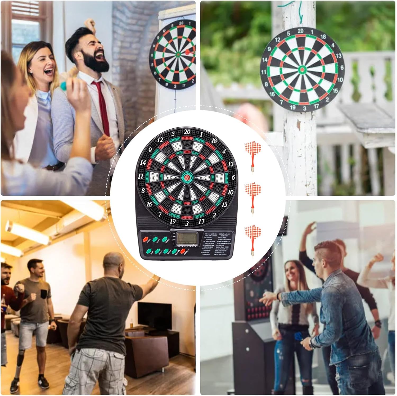 Display LCD ad alta definizione: migliorare le serate di gioco con il nostro set di dardi elettronici. Fino a poche persone possono giocare contemporaneamente, con un di punteggio automatico e un display LCD ad alta definizione che garantisce spesso un punteggio chiaro. Sperimenta ore di intrattenimento interattivo che sicuramente creerà un'atmosfera eccitante. Sicurezza assicurata: mantieni il divertimento con un set di gambe elettronico sicuro. Eventuali consigli di dardo logori possono essere facilmente sostituiti senza interrompere il gioco, garantendo che anche i bambini possano goderne. Divertimento di lunga durata: creato con materiale addominali resistenti e resistenti all'usura, il nostro set di gambe elettronico offre una gioia duratura che non è facile da deformarsi. Offrendo un'eccellente sicurezza e robustezza, puoi giocare senza preoccupazioni. Ampie applicazioni: con questo set di dardi elettronici, puoi guidare tutti in una frenesia alimentata adrenalina. Che si tratti di un principiante o di un giocatore professionista, divertiti con il popolare sport bar e rendi la tua casa il segno di intrattenimento per amici e familiari. Segno semplificato: il nostro set di Dartboard elettronico fornisce un gioco intuitivo e un punteggio semplificato. Con un design elegante e livelli di difficoltà multiple, i giocatori di tutti i livelli di abilità possono migliorare il loro gioco e migliorare senza la seccatura di registrare manualmente i punteggi.