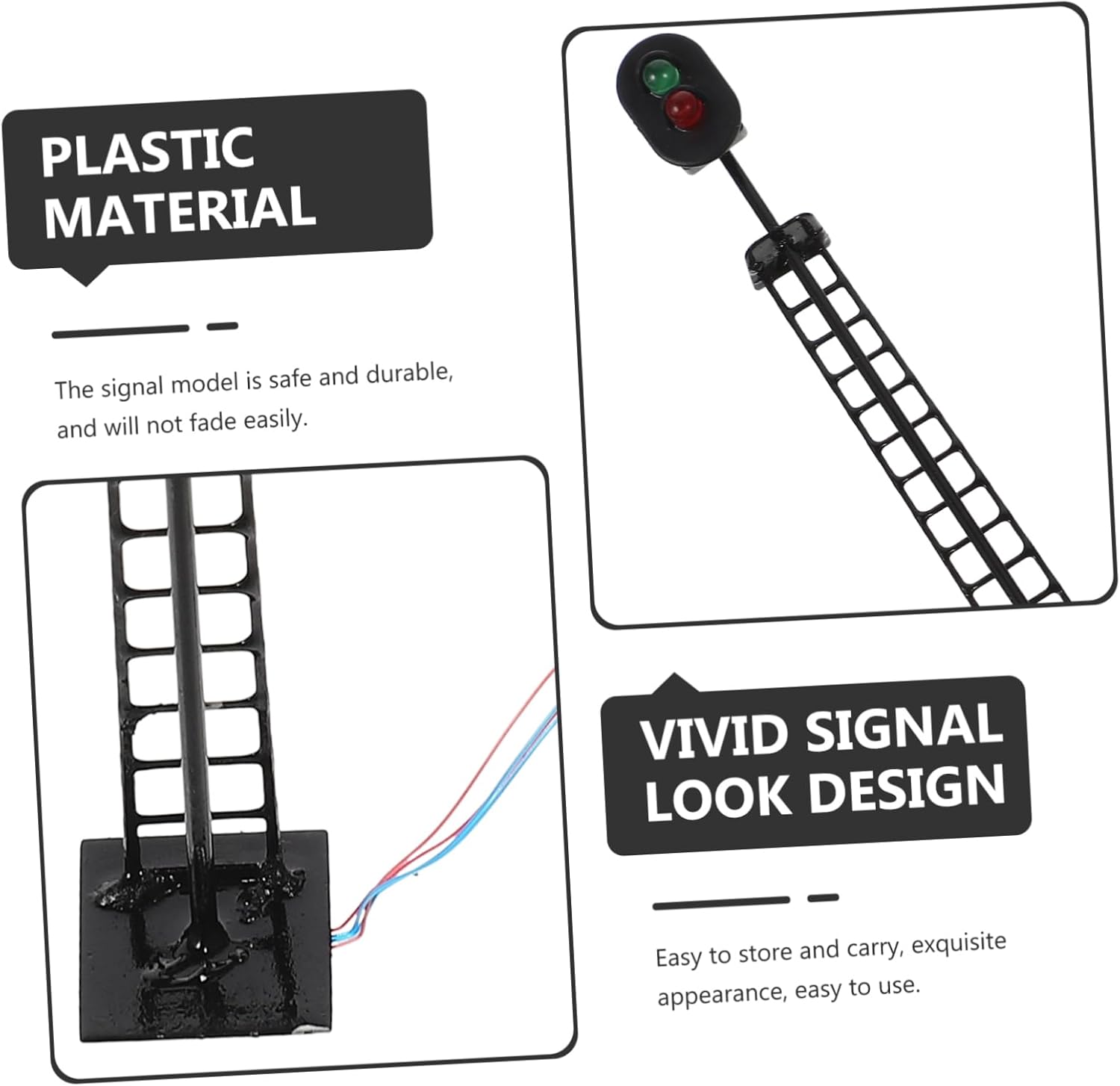 per modellismo ferroviario: il segnale in miniatura può essere ampiamente utilizzato nel modello di semaforo per binari ferroviari, semaforo architettonico, modelli architettonici, layout di scena o decorazione del paesaggio, modello di segnale ferroviario Mini modello di simulazione di : i modelli di segnale, con un design realistico, saranno un buon decoro per la tua attività fai da te, modello di semaforo ferroviario Luce per modellismo ferroviario: è dotata di dettagli realistici, unici e con un buon effetto decorativo, scenario modello Decorazione per mini lampade semaforiche: realizzate con , queste lampade sono delicate, pratiche e resistenti, modello di lampada semaforica ferroviaria. Simulazione di lampione stradale: forme realistiche e lavorazione artigianale sono essenziali per l'abbellimento fai da te di micro-paesaggi, lampada per micro paesaggi
