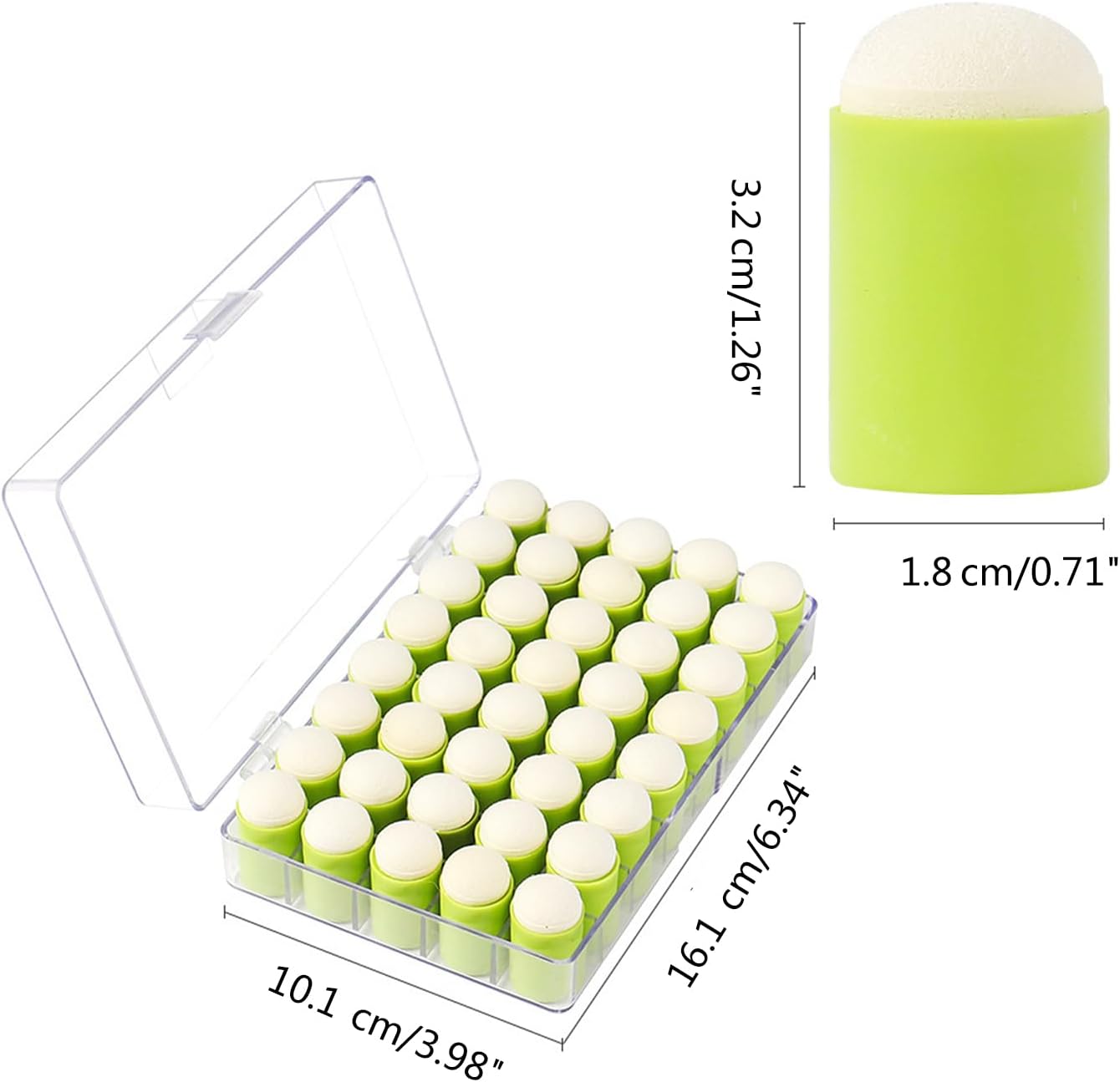 Funziona alla grande con tamponi colorati, acquerelli, colori acrilici, glitter, guazzo ecc. Perfetto per dipingere o su carta, tela, legno, tessuto, plastica e altri oggetti. La confezione contiene 40 tamponi di spugna per le dita. Spugna di qualità, sicura, non tossica, morbida, molto assorbente, facile da colorare. Con custodia trasparente, impermeabile, antipolvere, compatta e portatile. Manico in plastica antiscivolo, ideale per mani piccole. Ottimi strumenti di disegno per i bambini che imparano a dipingere presto, sviluppano l'immaginazione e la creatività dei bambini, ecc. Ampiamente usato per feste di compleanno per bambini, feste di Halloween, Natale, festival, attività di festa, asilo, genitori bambini, progetti artigianali a scuola. Molto adatto per dipingere, biglietti di auguri fatti a mano, festival, scrapbooking, diario, diario, taccuino, agenda, calendario, album fotografico, ecc.