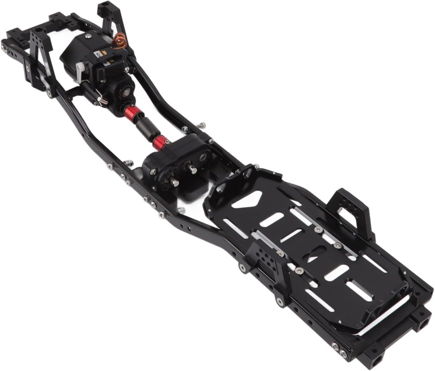 anteriore: telaio RC con design del anteriore, scocca facile da installare, che può migliorare le prestazioni della tua auto RC Modalità a 2 velocità: chassis in metallo con micro servo e modalità a 2 velocità opzionale, che può essere impostata su 2 velocità utilizzando marce alte e basse Interasse 313 mm: telaio in metallo interasse con trasmissione lucida e telaio interasse 313 mm per veicoli cingolati 1/10 RC Lega di alluminio: il misuratore di qualità 'acqua è realizzato in materiale in lega di alluminio, che è indossabile e resistente e può essere utilizzato con sicurezza 2 opzioni di trasmissione: il telaio in metallo RC utilizza un trasmettitore a 3 e un micro servo e può essere configurato con un spostabile in due modi