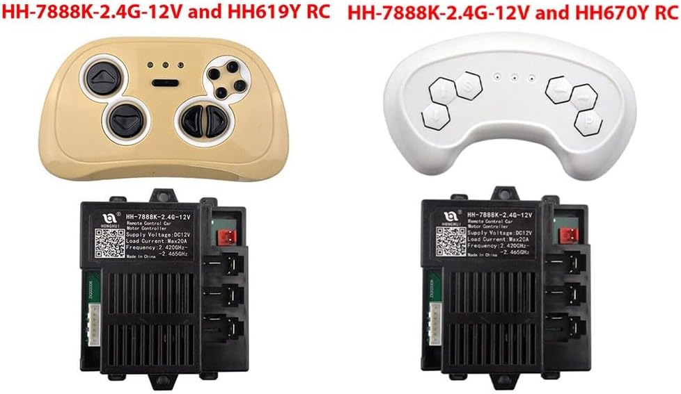 * HH-7888K-2.4G-12V Ricevitore per auto elettrica per bambini HH670Y HH619Y RC. * Tenere premuti contemporaneamente i pulsanti avanti e indietro. La spia lampeggia, quindi avvia l'auto. La spia smette di lampeggiare e la connessione è riuscita. * Come giudicare se la scatola di controllo è adatta per la tua auto? * Aprire l'auto elettrica danneggiata e selezionare la casella di controllo. * Se l'alloggiamento è lo stesso, la parte dovrebbe adattarsi alla vostra auto. *Se è necessario modificarlo da soli, si prega di controllare l'etichetta sul ricevitore.