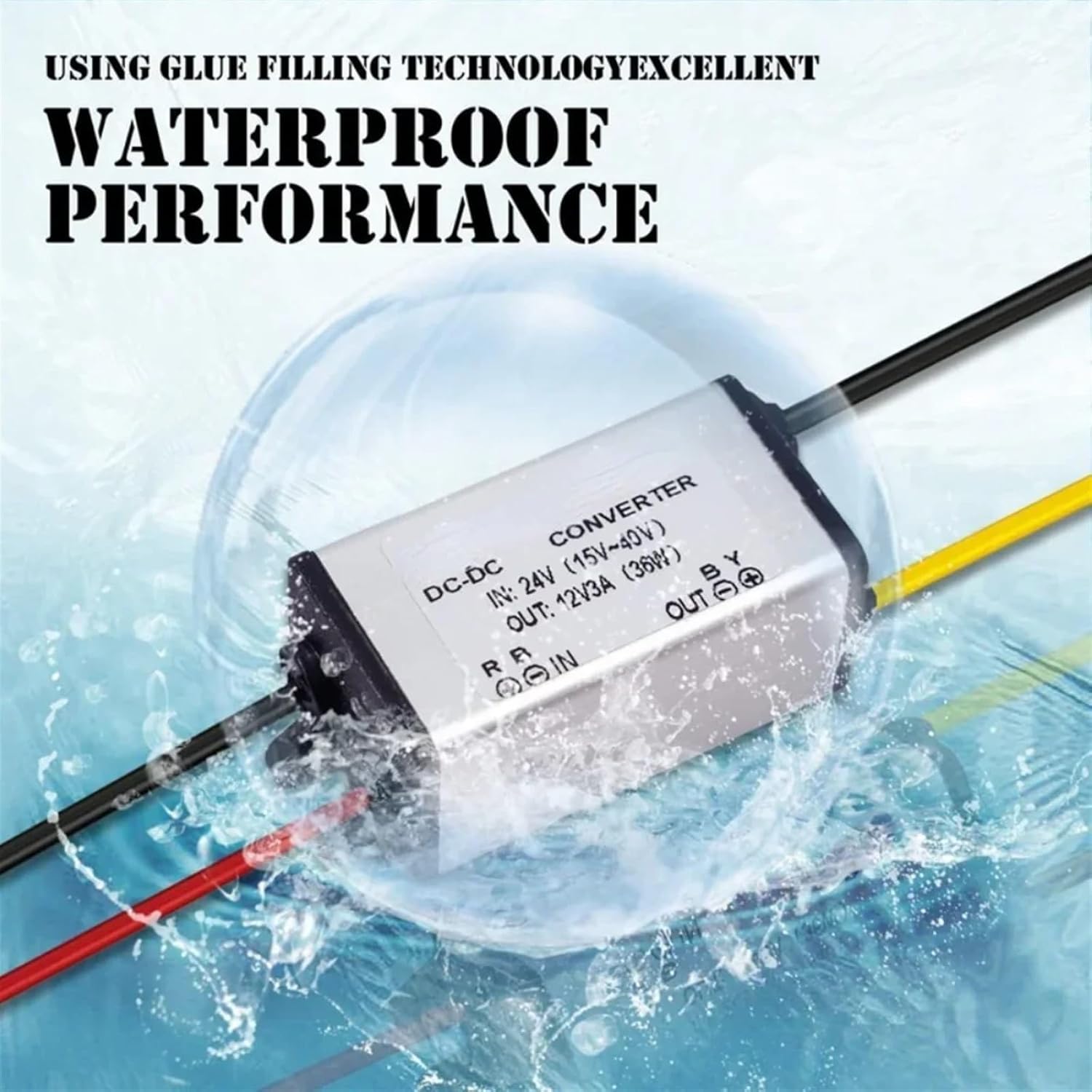 Convertitore step-down da CC 24 V a CC 12 V. (Ingresso ad ampio intervallo 15-40 V) Corrente massima 3 A 36 W. L'alloggiamento in lega impermeabile rende il convertitore ideale for l'uso in un'ampia gamma di applicazioni tra cui veicoli, sistemi di sicurezza, apparecchiature ospedaliere, telecomunicazioni, ecc Protezione integrata da sovratensione, sottotensione, sovraccarico, surriscaldamento e cortocircuito La lunghezza della linea è di circa 12 cm, sottile, piccolo volume, facile installazione. e prestazioni. 3 anni di garanzia. Descrizione del prodotto Convertitori di tensione Questo convertitore di potenza è realizzato con la tecnologia di riempimento e sigillatura di gel di silice organico ad alta conduzione termica ed è compatibile con molteplici funzioni di protezione automatica, sovracorrente, cortocircuito, sovratemperatura, impermeabile, resistente all'umidità, questi caratteri distintivi rendono il nostro regolatore del convertitore di alimentazione ampiamente utilizzato sugli autobus , CMB, camion di grandi dimensioni, motore, navigazione GPS, energia solare, energia fotovoltaica, display for autobus, schermo pubblicitario for taxi, audio for auto, TV LCD, LED, citofono e di monitoraggio. Progettazione professionale Progettazione di circuiti Dopo la progettazione del circuito professionale, ha le caratteristiche di alta integrazione e materiali hardware solidi. Protezione intelligente Protezione da alta tensione transitoria in ingresso Protezione da sovracorrente in uscita Protezione da sovratemperatura del chip. Stabilizzazione della tensione Anello magnetico con nuclei Si-Fe Resistenza alle alte temperature e super stabilità. Per saperne di più Aggiornamento tecnologico Tecnologia di rettifica. Conversione efficiente, l'efficienza di conversione arriva fino al 96%. Grado di impermeabilità IP67 Riempimento in gel di silice organico ad alta conduzione di calore E