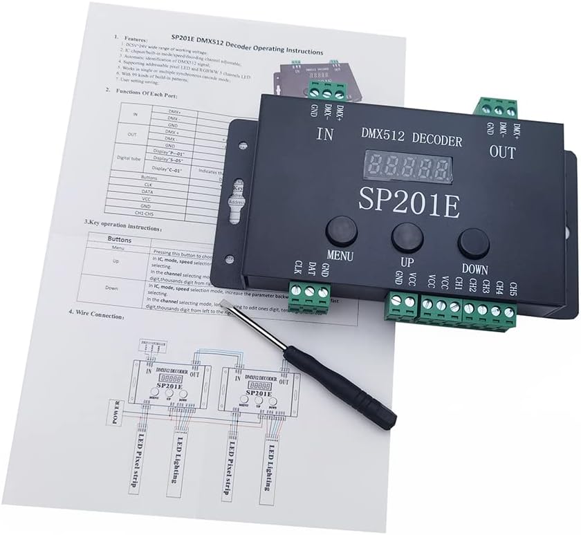 Supporta quasi tutti i driver LED a filo singolo o due fili, come WS2811, WS2812B, WS2801, SK6812, SK6812-RGBW, WS2813, LPD6803, LPD8806, APA102, TM1913, UCS1903, SM16703. 3, SM16. 703 3, DMX5. 12, ecc. Se non c'è ingresso del segnale DMX, può funzionare come controller SPI e controllare fino a 1024 pixel. Sono disponibili 99 tipi di modalità di colore dinamiche integrate, come flash, illuminazione, dissolvenza, smooth, caccia, stream, stroboscopico, che sono vivaci e belle. Velocità regolabile. Quando l'ingresso del segnale DMX, può identificare automaticamente DMX512 e funzionare come decoder DMX con interfaccia compatibile standard DMX512. I canali di decodifica sono regolabili Rispetto ad altri decoder DMX che possono decodificare solo un tipo di LED, il decoder ALITOVE DMX può decodificare sia i LED pixel indirizzabili intelligenti sia i LED RGBWW a 5 canali. I controller/decoder DMX possono essere combinati tra loro e funzionare in sincronia. 5 V ~ 24 V di corrente continua; display LCD: salvare le impostazioni utente quando il dispositivo è spento. Protezione da inversione di polarità, protezione hot swap