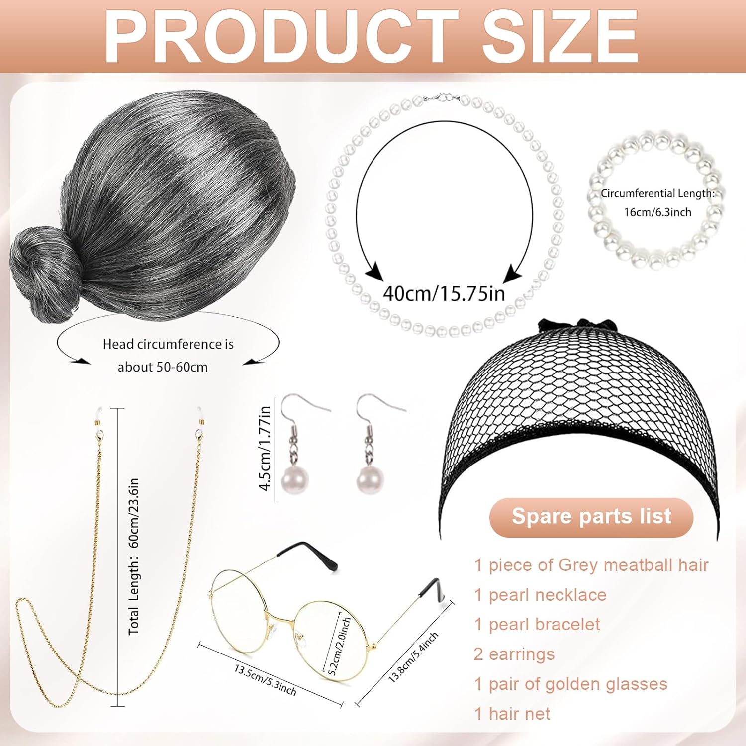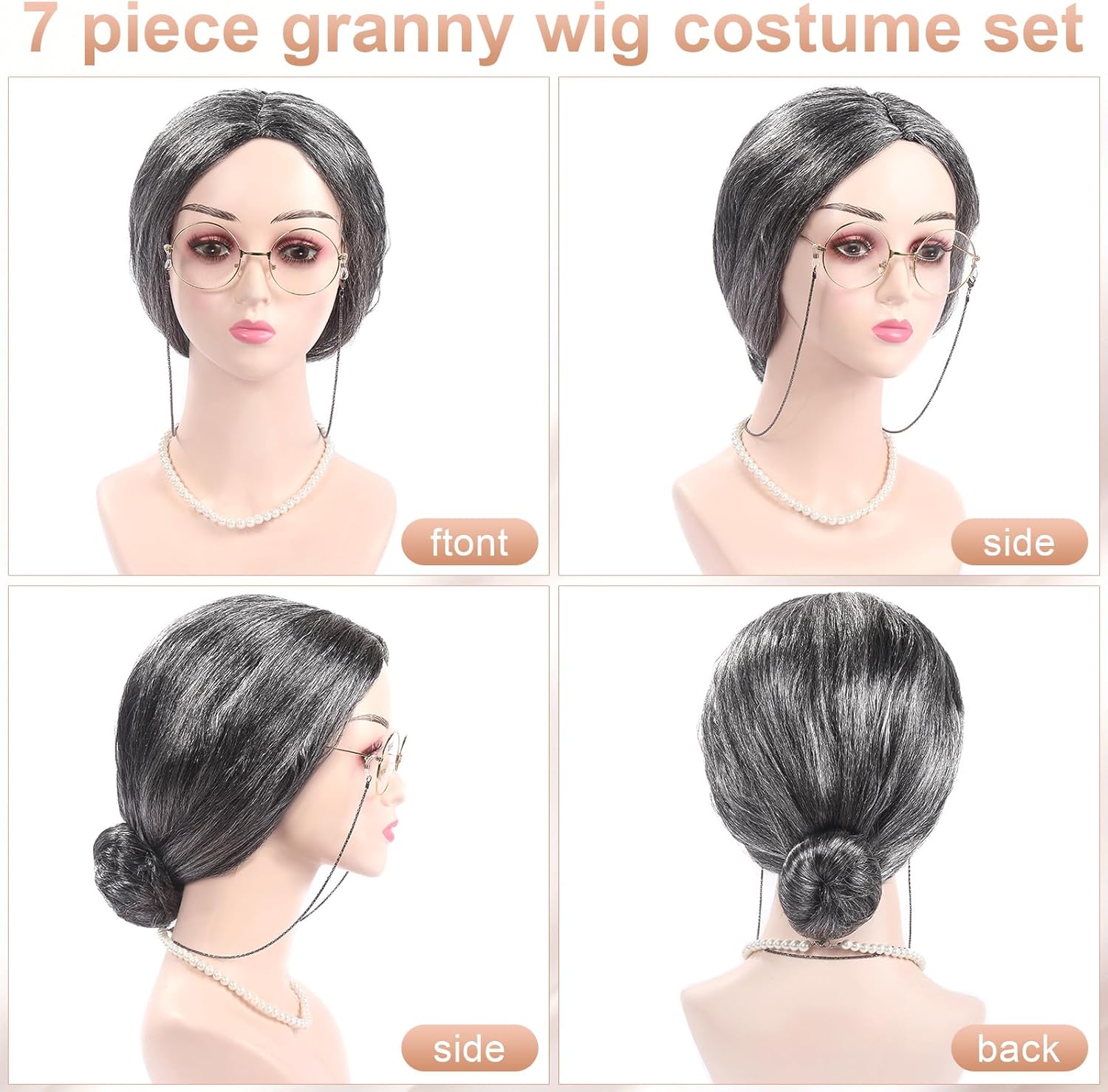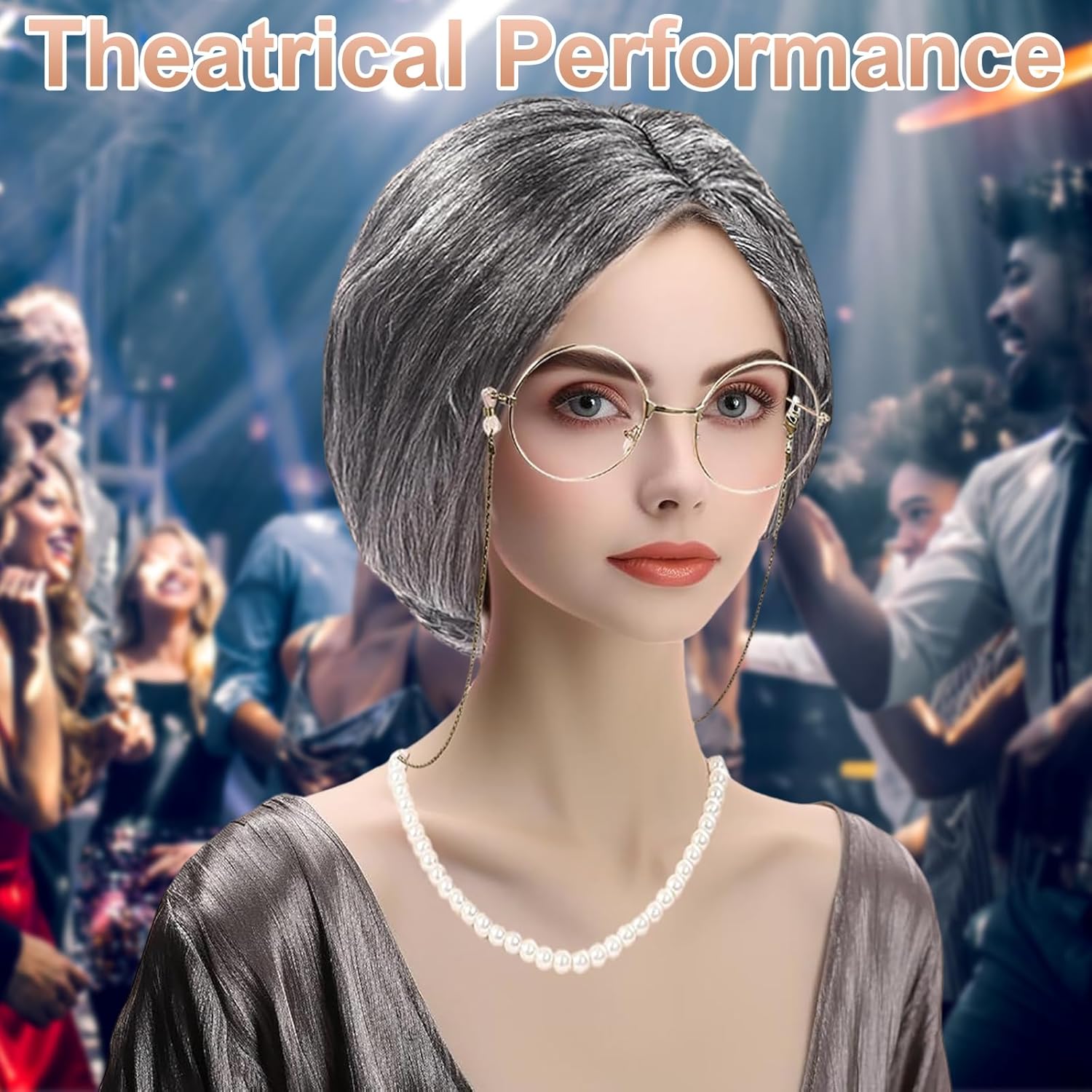 【Materiali di alta qualità】 La parrucca è realizzata in fibra sintetica di alta qualità e il cappuccio della parrucca è in poliestere. È sicuro e non tossico, non facile da danneggiare o cambiare colore, aspetto realistico, durevole e può essere riutilizzato a lungo. 【Tuta di valore】 Include 1 parrucca grigia, 1 accessorio per occhiali con catena, 1 collana di perle artificiali, 1 paio di orecchini di perle, 1 braccialetto di perle, 1 berretto per parrucca. Puoi abbinare i vestiti da solo, il che è sufficiente per soddisfare le tue diverse esigenze. 【Elegante e alla moda】 La collana di perle è composta da perle artificiali e resistente chiusura a moschettone in metallo. Occhiali in metallo con montatura rotonda e cinturini a catena per occhiali, abbinati a perle squisite e semplici, non solo possono elevare la tua età, ma anche perfezionare la tua immagine e il tuo temperamento. 【Gioco di ruolo】 Questa tuta da gioco di ruolo da vecchia signora è comoda e comoda da indossare. Puoi cambiare la tua età in pochi secondi. La parrucca ti consente di imitare rapidamente gli anziani e puoi anche indossare un cappello o un foulard sulla parrucca per aggiungere personalità e divertimento alla festa. 【Ampia applicazione】 Adatto per la maggior parte degli adulti e degli adolescenti. Grandi parrucche in costume per nonne, vecchiette, ecc. È adatto per feste d'epoca, giochi di ruolo, spettacoli teatrali, feste in maschera, carnevali, Babbo Natale, ecc.