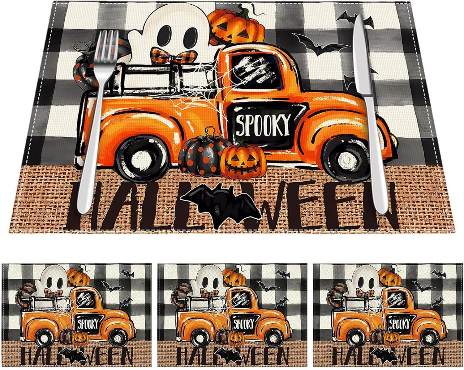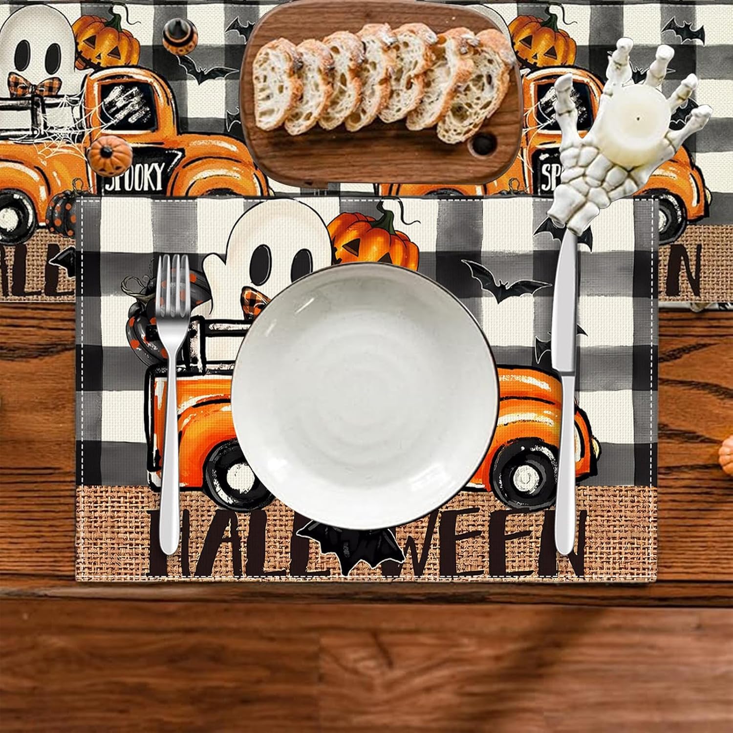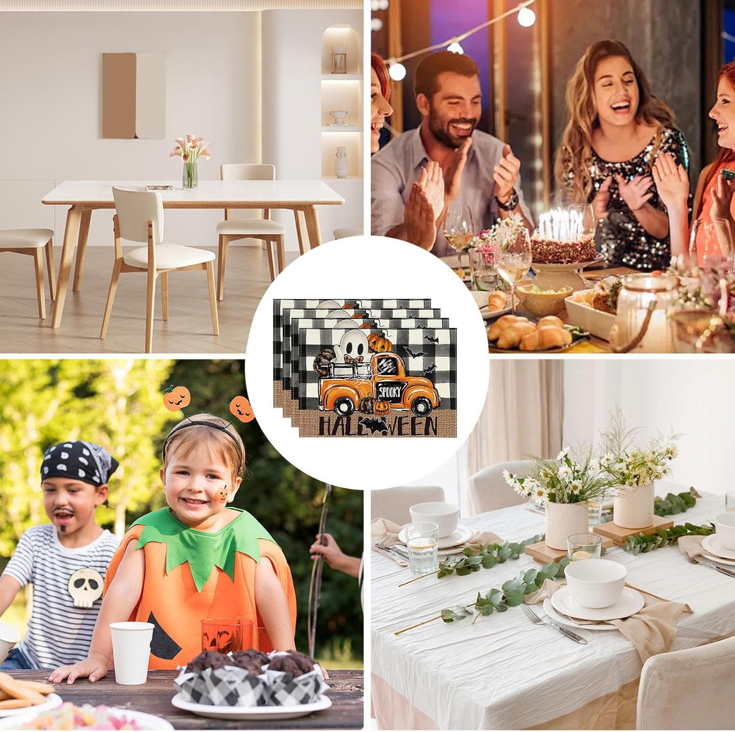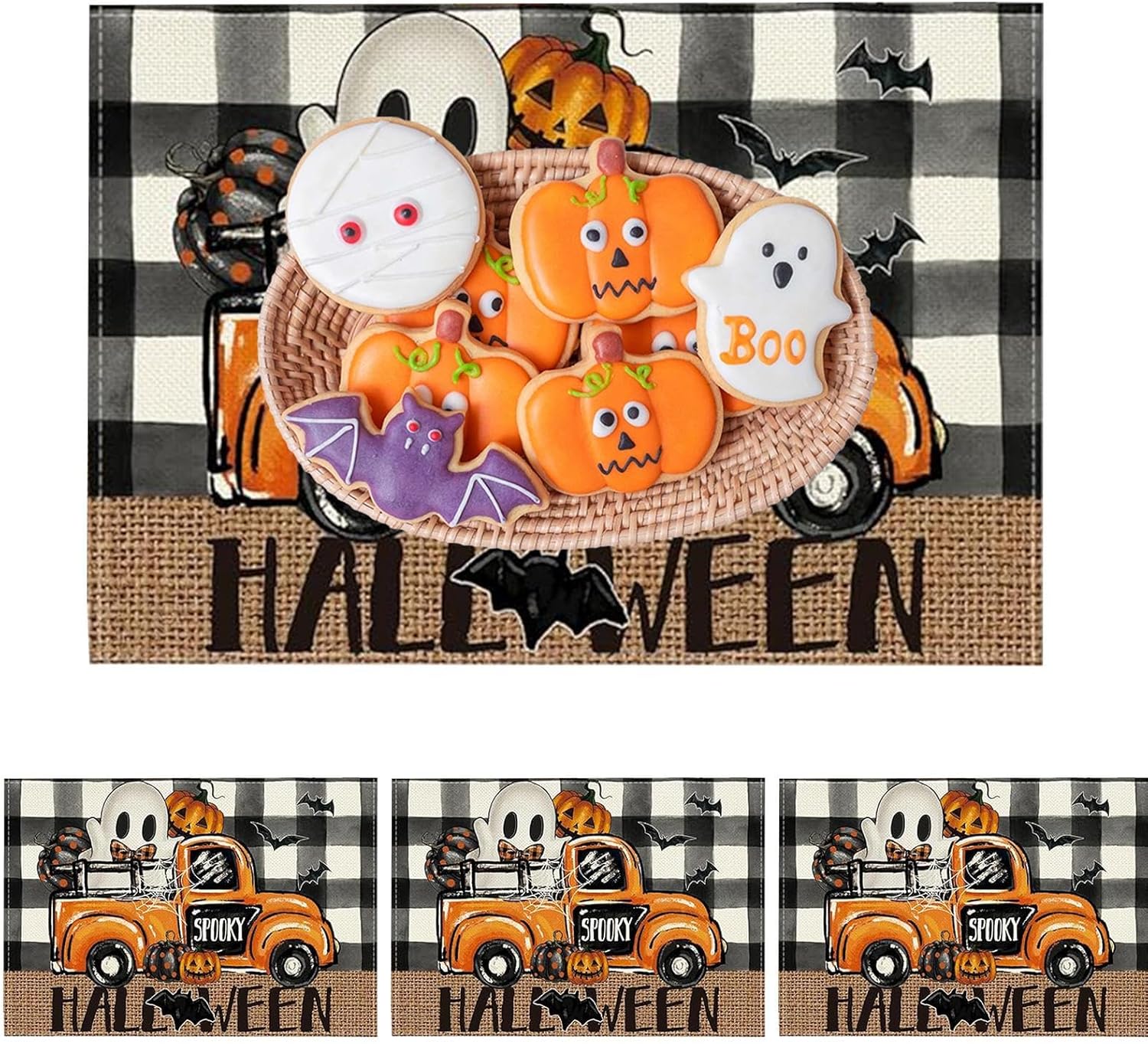 Uso lavabile in lavatrice: realizzati in poliestere morbido, queste tovagliette di Halloween sono riutilizzabili, lavabili in lavatrice e altamente resistenti sbiadimento, fornendo una resistenza senza pari. Squisito artigianato: con bordi di ortimento e rinforzati per impedire alle tovagliette di sfilacciare, garantendo una lunga durata di servizio per il tuo arredamento di Halloween. Mantieni il tuo tavolo al sicuro: le nostre tovagliette di Halloween sono la decorazione perfetta per la tua casa, fungendo da protettori contro macchie e graffi. Goditi un'esperienza culinaria inquietante con un tavolo pulito e ordinato. Crea un'atmosfera spettrale: le nostre tovagliette di Halloween vantano immagini chiare e luminose che proteggono il tuo tavolo contro macchie e graffi. per Halloween, aggiunge un'atmosfera inquietante a qualsiasi pasto mantenendo il tavolo al sicuro da . Uso ampio: trasforma il tuo spazio da pranzo con le nostre tovagliette di Halloween perfette per l'uso quotidiano a casa e versatili per ogni occasione. Immagina i tuoi ospiti e aggiungi brillantezza alla tua impostazione del tavolo durante le vacanze, i ricevimenti e le feste.