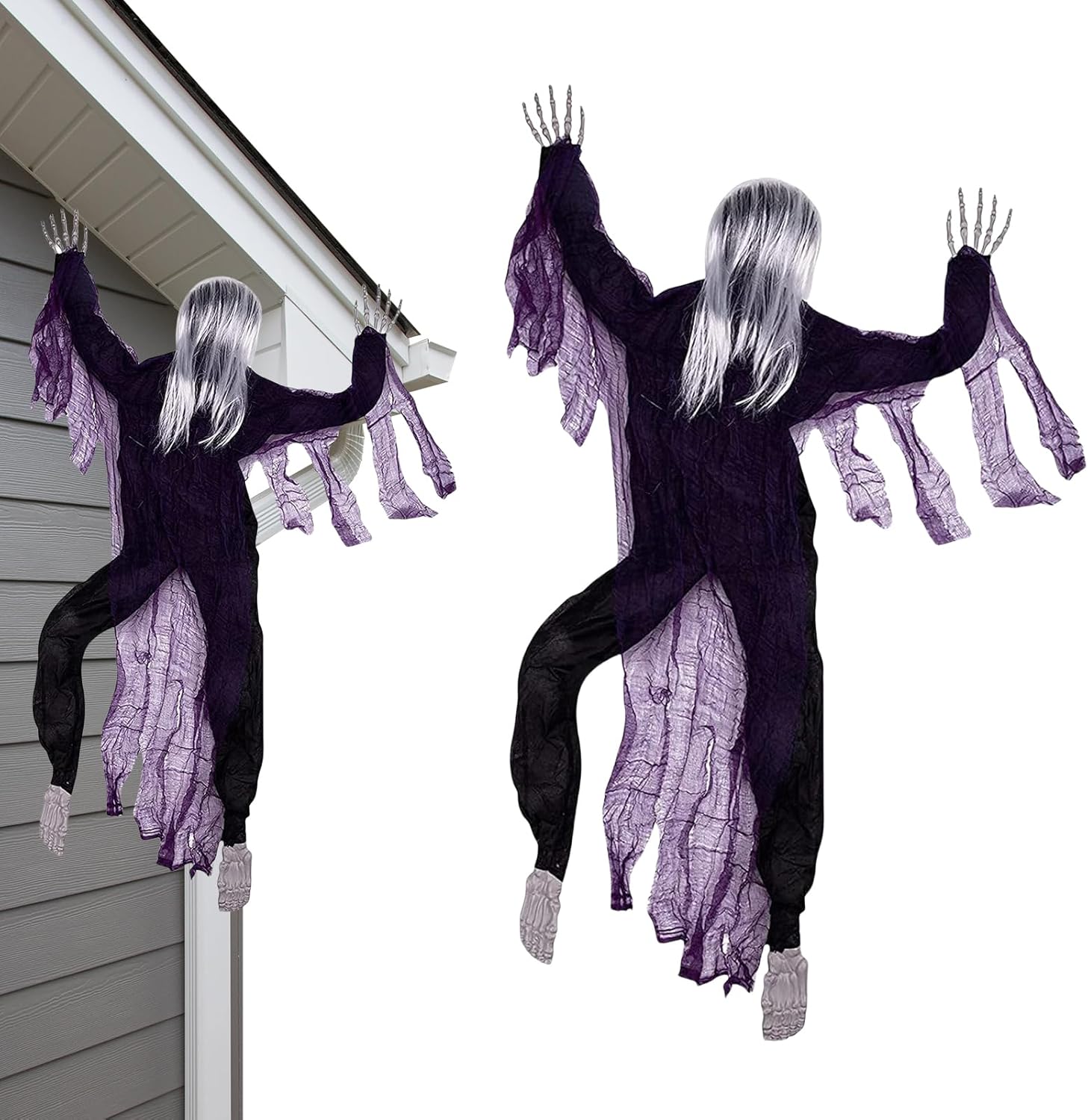 Design spaventoso: assisti alla vista spettrale degli scalatori di Halloween in abiti e garze spettrali, con braccia mobili e un corpo scheletrico con capelli bianchi, che cercano realisticamente di arrampicarsi nella tua casa. Dimensioni del corpo umano: organizza il tuo Halloween con uno zombi rampicante a grandezza naturale che assume una posa spaventosa. Con un'altezza di 63 pollici, delizierà e spaventerà sicuramente gli ospiti, rendendolo l'aggiunta perfetta a qualsiasi casa o festa infestata. Attacco flessibile: adattabile a qualsiasi posizione; ogni mano è dotata di gancio e possono essere ripiegate per ridurre lo spazio di stoccaggio; Gli arti possono essere piegati per pose realistiche. Atmosfera spettrale: crea un'atmosfera spettrale con l'aiuto di queste spettrali piante rampicanti di Halloween. I tuoi ospiti tremeranno di terrore vedendo le creature morte viventi arrampicarsi facilmente. 【Ampiamente usato】 Trasforma la tua finestra in strani schermi con lettere di Halloween. Perfetto per una terrificante casa infestata, scene di cimitero e portico, nonché per usi versatili come forniture per feste di Halloween.