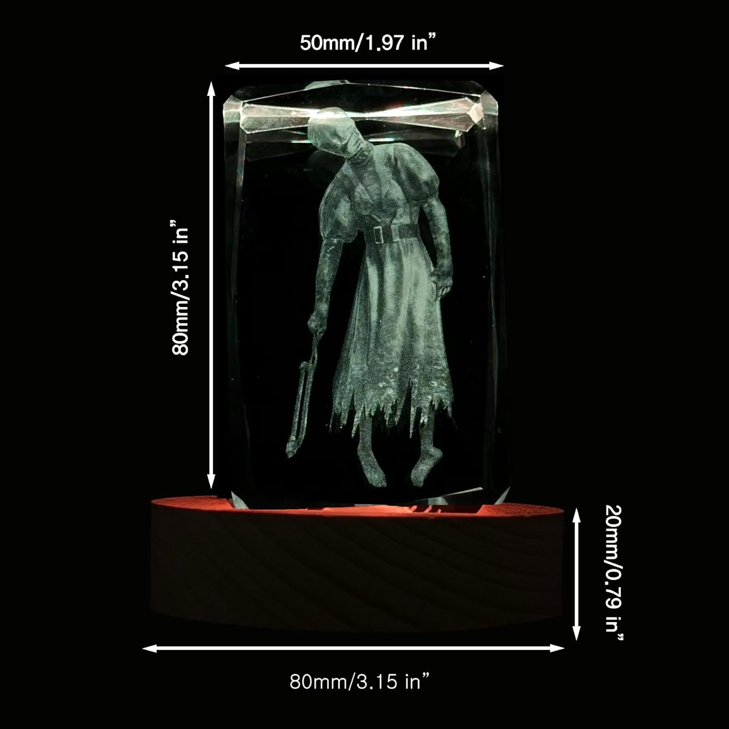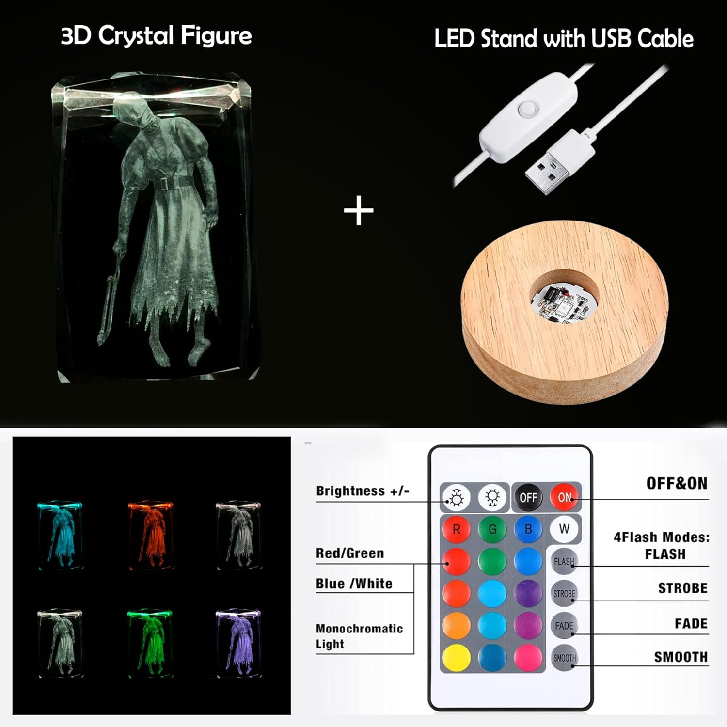 [Dead by Daylight 3D Crystal Figure] - La tecnologia avanzata di incisione laser 3D rende chiari i dettagli dei costumi di Killer, delle armi e delle pose dell'assassino. Il Killer è inciso al laser nel cristallo trasparente K9. Effetto visivo 3D: 16 colori LED RGBW con 4 modalità di illuminazione dinamica (flash/stroboscopio/dissolvenza/liscio) rendono la figura Killer più attiva e realistica. È inoltre possibile modificare la luminosità della luce. [Regalo speciale di gioco] - La figura del personaggio del gioco 3D Dead by Daylight sarà una decorazione perfetta su una scrivania da gioco. Sarà un regalo speciale per giocatori, fidanzati, adulti e adolescenti. [Come usare] - Il supporto in legno per lampada a LED colorato RGBW 16 è dotato di un cavo USB. È possibile cambiare 16 colori LED e 4 modalità di illuminazione utilizzando il telecomando. [Dimensioni compatte] Dead by Daylight 3D Game Figure Crystal Size è 50 x 50 x 80 mm / 1,97 x 1,97 x 3,15 pollici, e le dimensioni del supporto in legno sono 80 x 80 x 20 mm (diametro 80 mm).