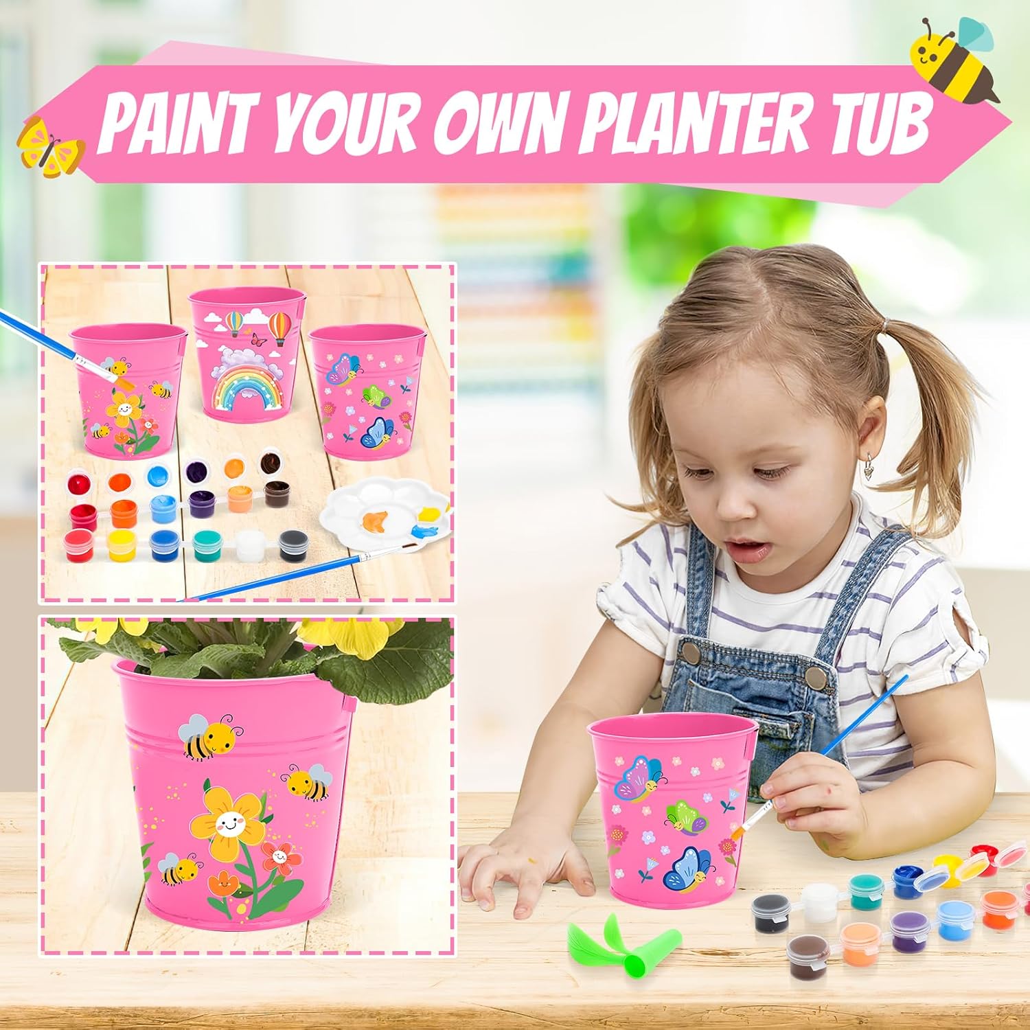 【Divertimento creativo con il giardinaggio fai-da-te】 Il nostro set da giardino non è solo per piantare: è una tela creativa per giovani artisti! Con 3 vasi da fiori, 1 rastrello, 1 zappa, 1 flacone spray, 1 paio di guanti da giardinaggio, 1 annaffiatoio, 1 zaino, 1 grembiule, 1 cappello, 1 bottiglia di vernice e 2 pennelli, i bambini potranno decorare i loro vasi e i loro strumenti mentre si prendono cura delle loro piante. È il connubio perfetto tra giardinaggio e arte che stimola la fantasia e tiene occupate le manine dei più piccoli nel miglior modo possibile! 【Durevole e sicuro per i piccoli giardinieri】 Abbiamo realizzato questo set con i migliori materiali in modo che duri anche durante i giochi più difficili. Gli attrezzi da giardinaggio in metallo per bambini sono durevoli, mentre lo zaino e il grembiule in tela sono leggeri e facili da trasportare. Perfetto per attività familiari condivise, giochi di gruppo o giochi da soli, questo set è progettato per crescere con l'amore per il giardinaggio dei tuoi figli. 【La natura incontra la creatività】 Questo set è più di un semplice giocattolo: è una porta verso la natura e la creatività. In giardino, nel patio o nel cortile, i bambini possono apprendere le basi della botanica trascorrendo del tempo all'aria aperta. È un ottimo modo per insegnare la responsabilità e la gioia di prendersi cura delle piante divertendosi. 【Sviluppo delle abilità attraverso il gioco】 Il nostro set da giardino promuove abilità di sviluppo essenziali come destrezza, coordinazione occhio-mano e capacità motorie. Mentre i bambini piantano semi, scavano il terreno e innaffiano le piante, imparano attività che rafforzano la fiducia in se stessi e l’indipendenza. 【Regalo ideale per piccole dita verdi】 Questo set da giardino tutto in uno con opzioni fai-da-te è il regalo ideale per ragazze e ragazzi. Aiuta i bambini a sviluppare un senso di divertimento pratico e incoraggia la creatività, rafforzando al contempo gli stretti legami familiari attraverso attività condivise. Con tutto ciò di cui hanno bisogno, è un ottimo modo per introdurre i bambini al mondo del giardinaggio e dell'espressione di sé. Rendi green la tua prossima avventura!