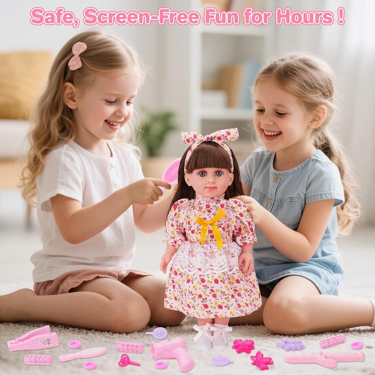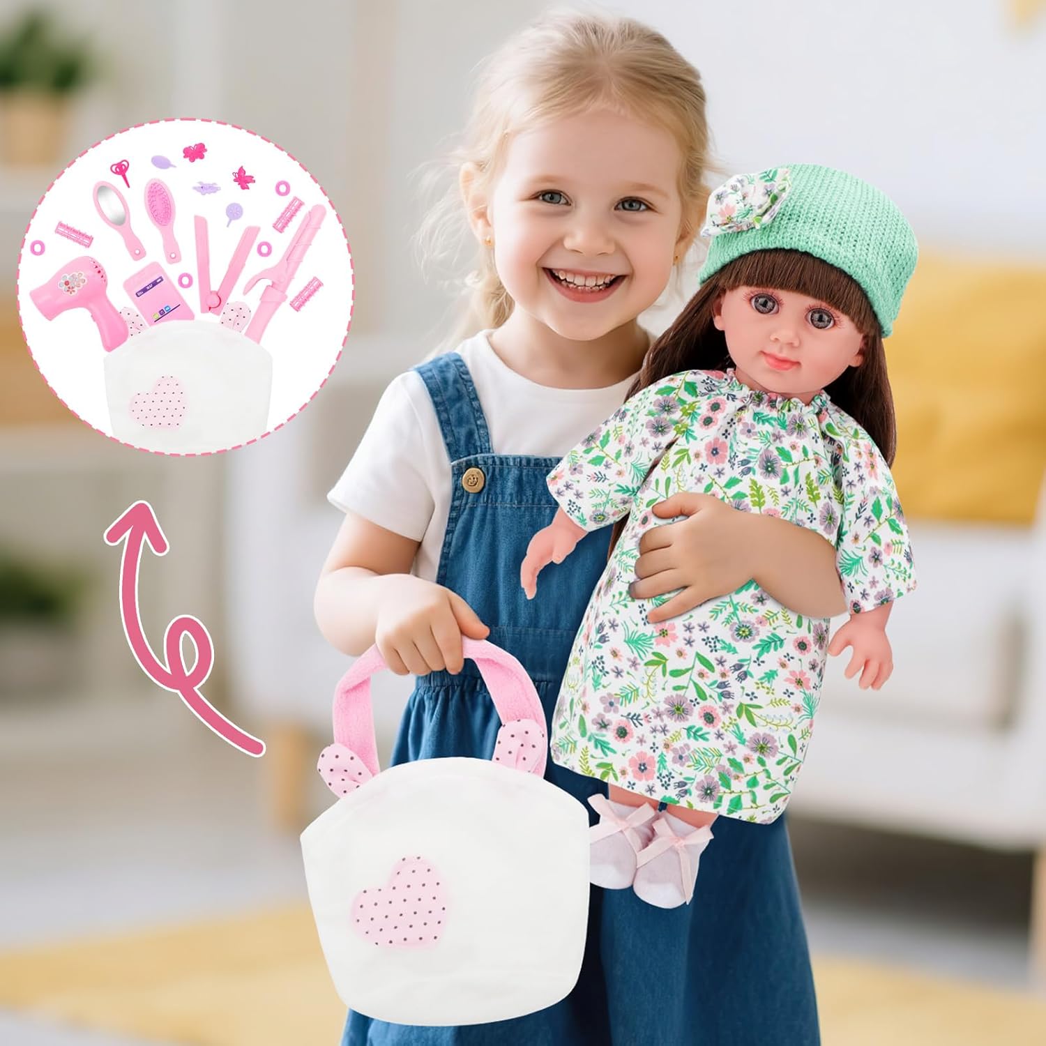 【Set da sogno ultra completo con 20 accessori】 Regala a tuo figlio un'esperienza di gioco senza precedenti con la nostra scatola per bambole eccezionalmente completa! Contiene tutto ciò di cui hai bisogno per ore di gioco creativo: una bellissima bambola da 36 cm con lunghi capelli rosa da acconciare, 3 adorabili vestiti facilmente intercambiabili e uno straordinario set di 20 accessori. Il tuo piccolo potrà utilizzare l'asciugatrice, la piastra e i bigodini per creare acconciature alla moda, guardarsi allo specchio, aggiungere mollette ed elastici, quindi partire all'avventura con la borsetta e il telefono giocattolo. Molto più di una semplice bambola, è un universo di possibilità. 【Ore di giochi di ruolo e creatività】 La nostra bambola è la compagna perfetta per sviluppare l'immaginazione e le abilità sociali di tuo figlio. Può interpretare una mamma premurosa che cura e veste il suo bambino, una stilista di talento che crea nuovi look o un'amica fuori per una giornata di shopping. Questi scenari di gioco di ruolo sono essenziali per apprendere l’empatia, la responsabilità e la narrazione. I numerosi accessori stimolano le capacità motorie e la creatività, offrendo possibilità di gioco molto più varie rispetto ai set tradizionali. 【Bambola realistica e di alta qualità】 Abbiamo progettato questa bambola per essere morbida, coccolosa e resistente al gioco appassionato. Il suo corpo flessibile permette di posizionarlo in modo naturale per il cambio d'abito o per le sessioni di parrucchiere. Le sue braccia, gambe e testa sono articolate per pose realistiche. Con i suoi occhi grandi ed espressivi e le lunghe ciglia, ha uno sguardo toccante che incoraggia l'interazione e il legame emotivo. Tutti gli indumenti e gli accessori sono progettati con materiali sicuri e lavabili, garantendo una perfetta igiene e durata nel tempo. 【Acconciatura e Moda: Un Universo di Stili da Scoprire】I capelli lunghi e morbidi della bambola sono un vero invito alla creatività. Il tuo bambino adorerà usare i 2 pettini inclusi per districare, quindi provare lo styling con gli accessori specializzati: l'arricciacapelli per creare splendidi ricci, la piastra per capelli lisci e l'asciugacapelli per un'asciugatura perfetta. Con i 3 abiti alla moda e gli accessori come gli occhiali, può creare infiniti outfit, passando in un attimo da un outfit casual a un elegante abito da sera. 【Il regalo ideale per bambini dai 3 anni in su】 Stai cercando un regalo che delizierà una bambina per il suo compleanno, Natale o qualsiasi altra occasione? Questo set di bambole è la soluzione perfetta. La confezione attraente e l'eccezionale valore ludico lo rendono un regalo che impressionerà. Soddisfa perfettamente le esigenze di gioco dei bambini più piccoli, promuovendo le competenze chiave divertendosi. È molto più di un giocattolo, è un compagno di crescita che diventerà presto il preferito di tuo figlio. Regala un sorriso e ore di felicità con questo set completo pensato per le mani dei più piccoli.