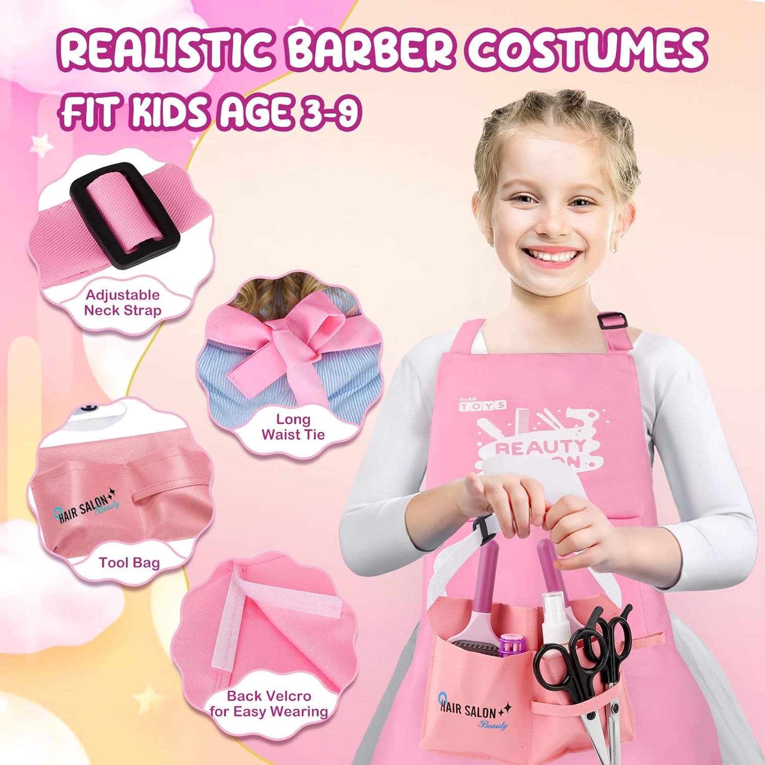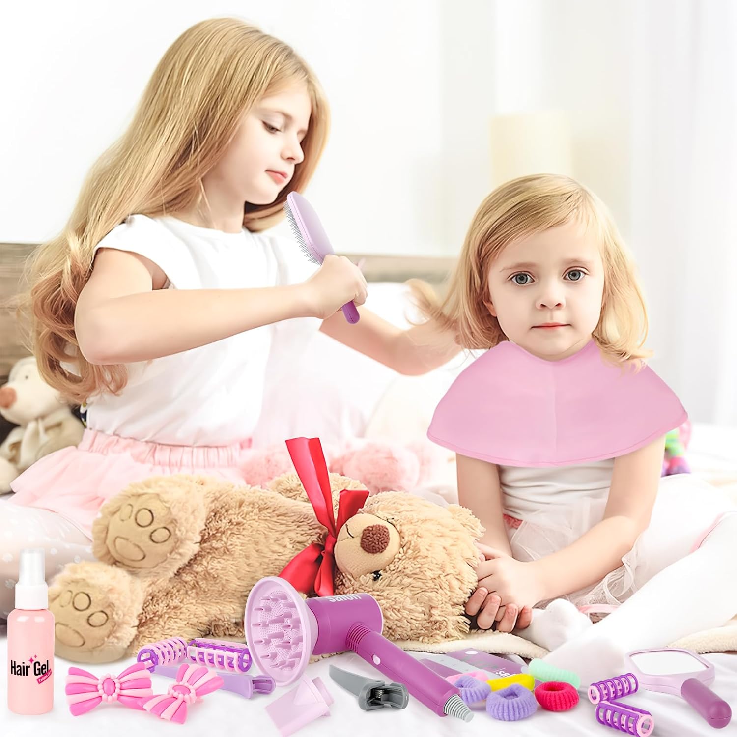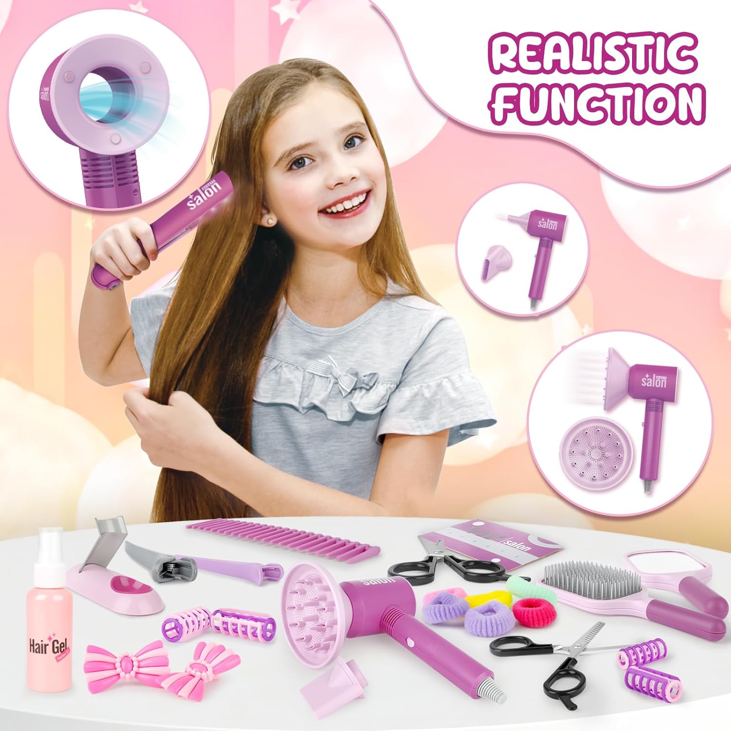[Giocattoli di bellezza per bambini] Questi giocattoli per modellare la testa sono realizzati in plastica ABS di alta qualità e tessuti di alta qualità, non tossici e privi di BPA, che è molto sicuro per far giocare liberamente i bambini. [Accessori completi giocattolo per parrucchiere per ragazze] Il giocattolo per salone di bellezza deAO comprende 28 pezzi, tra cui sciarpa, borsa degli attrezzi, grembiule da parrucchiere, asciugacapelli, piastra per capelli, ferro arricciacapelli, forbici, tagliacapelli, pettine, specchio, lacca per capelli, fermagli per capelli, carta VIP, bottiglia di profumo e altro ancora. Un set contiene tutti gli accessori di cui hai bisogno! [Design realistico] Abbiamo progettato questo set da parrucchiere in base agli oggetti utilizzati nella vita per offrire ai bambini un'esperienza più realistica. L'asciugacapelli può emettere aria come un vero asciugacapelli. Le false forbici possono essere aperte e chiuse e non danneggeranno il bambino. Il simpatico mantello, la borsa degli attrezzi e il grembiule da parrucchiere rendono il parrucchiere ancora più realistico. [Il giocattolo per acconciature per ragazze colorato e dal design accattivante offre alla tua principessa un'esperienza realistica di gioco di ruolo da barbiere. Migliora l'immaginazione e le abilità pratiche di tuo figlio. Le ragazze possono fingere di pettinarsi i capelli con il set da parrucchiere per ricci e divertirsi per ore usando il pettine per giocare ai giochi da parrucchiere: pettinare e acconciare i capelli delle bambole. [Regalo giocattolo perfetto] I giocattoli per arricciacapelli per ragazze da 28 pezzi sono ideali per i bambini di età pari o superiore a 3 4 5 6 7 8 anni e oltre per giocare da soli o con amici e genitori. I tuoi figli lo adoreranno. Questa è una buona scelta per il regalo di compleanno, il regalo di Natale, il regalo di Pasqua, il regalo del Ringraziamento o qualsiasi altro regalo di occasione.