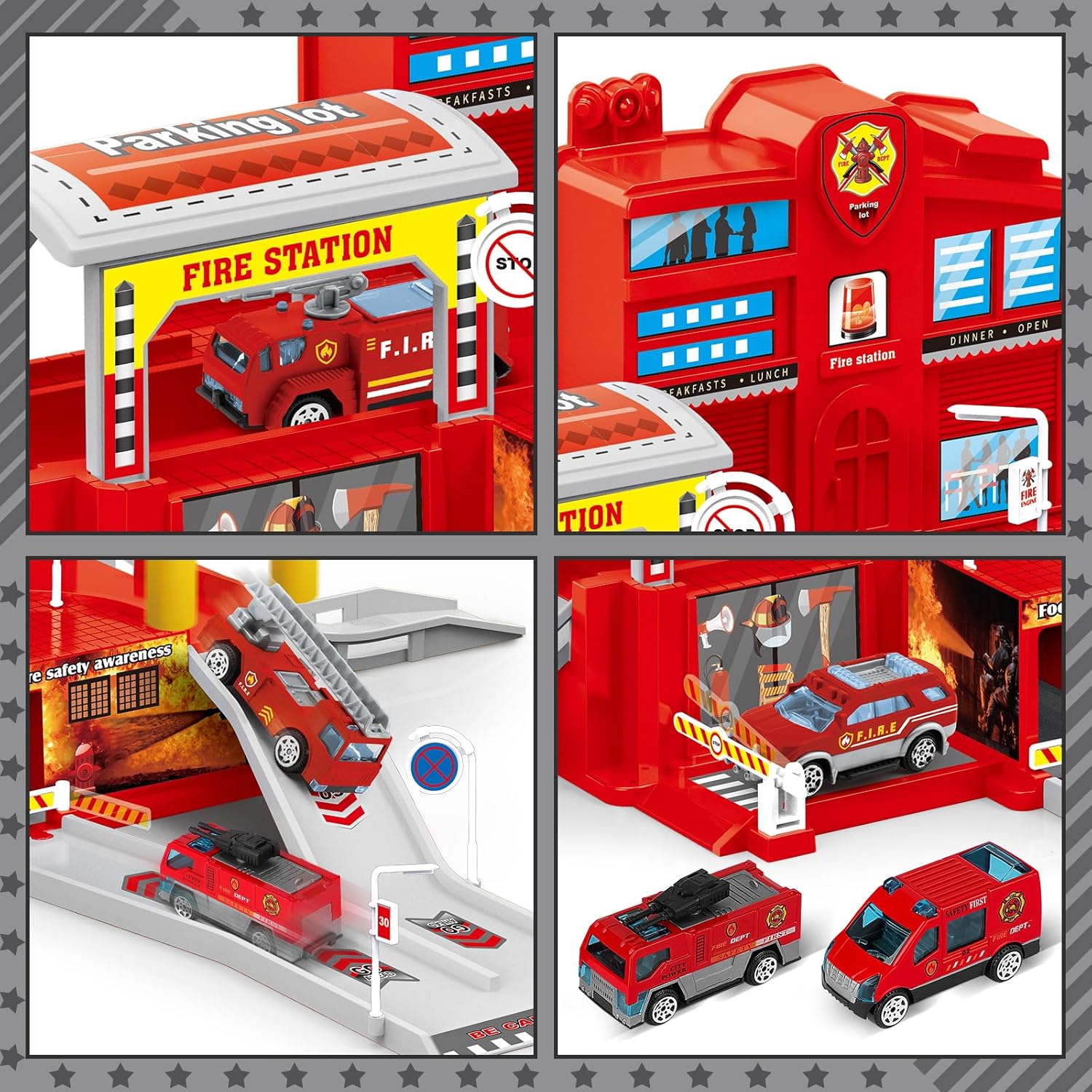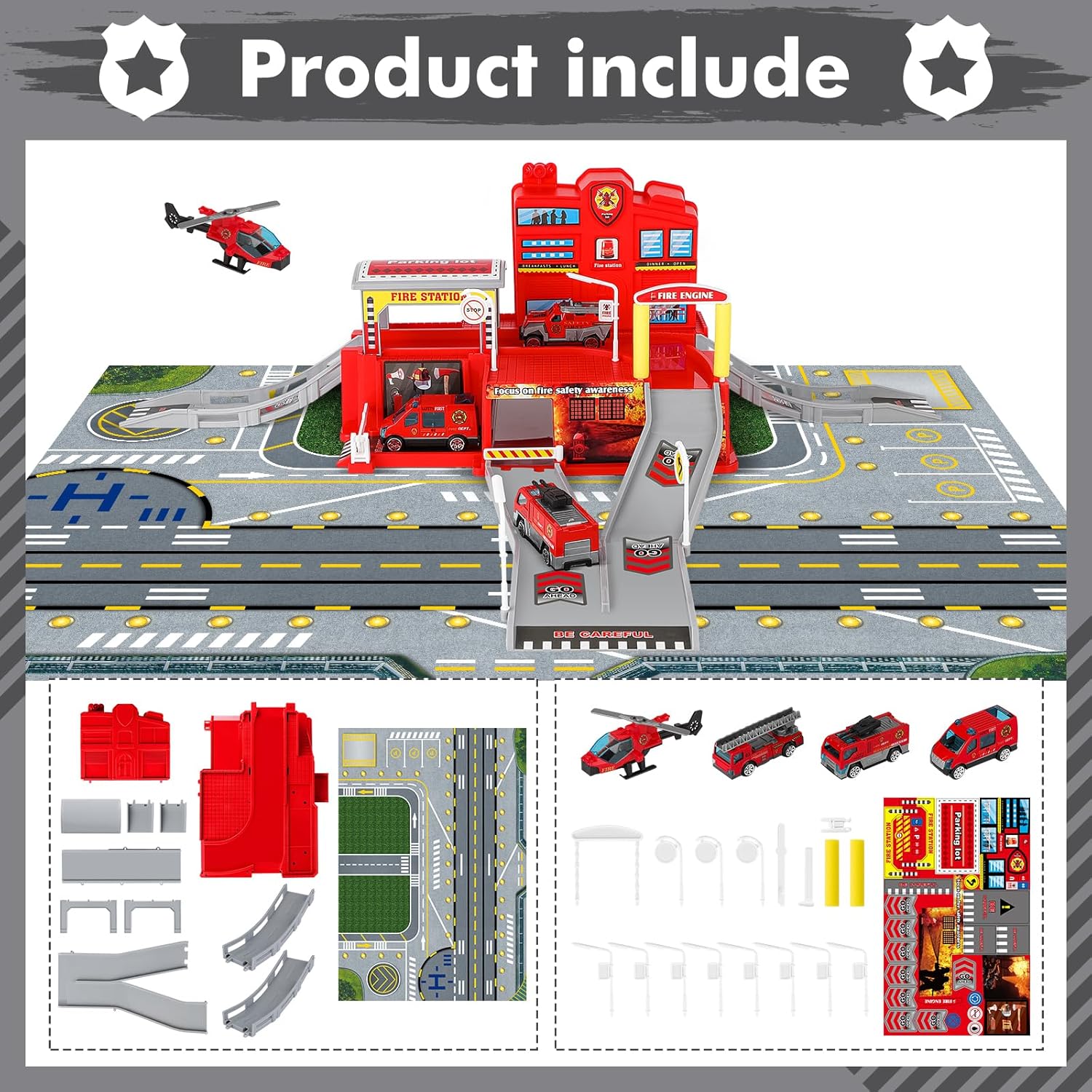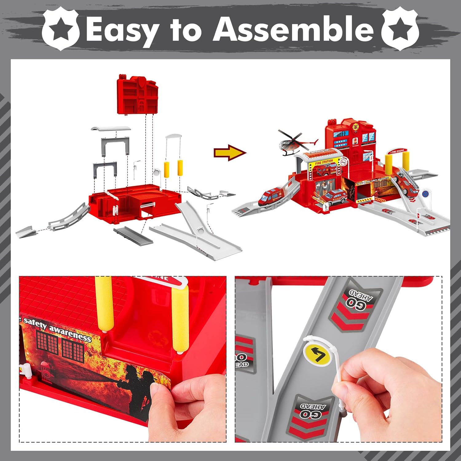 🚒 Giocattoli da Gioco Stazione Militare: Il giocattolo per parcheggio auto militare deAO con 3 auto e 1 elicottero, include infrastrutture come parcheggi per auto, rampe, lampioni, stazioni di servizio e vari segnali stradali comuni. Permette ai bambini di divertirsi simulando scenari realistici su scala reale. 🚒 Parcheggio Simulato: Questo giocattolo garage avventura di parcheggio con strade, auto e accessori realistici offre molteplici possibilità come il parcheggio al secondo piano, il rifornimento al primo piano, il lavaggio e le riparazioni. Diversi segnali stradali dividono il quartier generale della stazione in vari scenari funzionali, mantenendo la stazione militare in ordine. 🚒 Garage Giocattolo Facile da Assemblare: Segui semplicemente le istruzioni passo-passo illustrate per assemblare le parti del garage e ottenere un garage stazione militare, quindi posiziona i segnali stradali secondo il tuo piano scenico. Non ci vogliono più di cinque minuti per installare tutti gli accessori del giocattolo parcheggio militare. Il processo di assemblaggio stimola non solo la creatività dei giovani architetti, ma migliora anche la coordinazione occhio-mano dei bambini. 🚒 Materiali di Alta Qualità per Bambini: Il giocattolo parcheggio militare è realizzato in plastica ABS sicura per i bambini, non tossica e resistente. Le auto e gli elicotteri militari sono pre-assemblati, e il design morbido e avvolgente consente ai più piccoli di spingere e tirare il carrello con le loro piccole mani senza preoccupazioni! 🚒 Giocattoli Educativi per Bambini: Gli insiemi di giochi interattivi garage stazione militare con auto matchbox includono vari segnali stradali che possono sviluppare il riconoscimento dei colori, del traffico e stimolare l'immaginazione dei bambini. I giocattoli di torre di pattuglia dell'esercito sono la scelta ideale come regalo educativo per compleanni, Natale, sia per ragazzi che per ragazze.