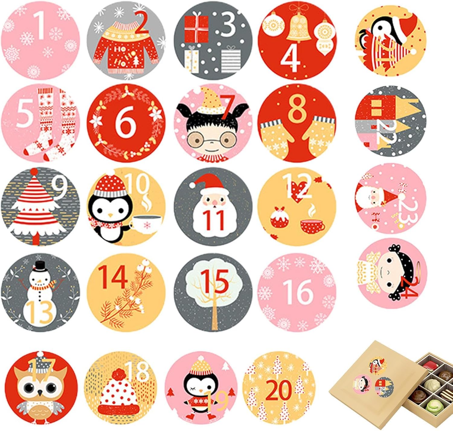 Durevolezza garantita: struttura rinforzata protegge i numeri da peeling e crepe. Composizione non tossica conforme alle normative internazionali sulla sicurezza dei bambini Personalizzazione creativa: consente di decorare tovaglie, finestre e regali con numeri stilizzati. Adesivi rimovibili versatili che favoriscono la creatività in centrotavola e vetrine a tema Aderenza perfetta: strato adesivo di precisione micrometrica assicura il pieno contatto con la superficie, creando unione permanente resistente a frequenti lavaggi e umidità accidentale Grande dettaglio: gli adesivi numerici per il calendario dell'avvento sono il perfetto dettaglio natalizio. Personalizza i tuoi regali con scatole che puoi creare e riempire a tuo piacimento, e portali a casa per migliorare la decorazione di queste feste. Decorazione versatile: decorazione ideale per calendari dell'avvento, biglietti natalizi, festivi, carta da regalo, biscotti e prodotti da pasticceria. Aggiunge un tocco festivo a progetti creativi e artigianali con un facile decollo.