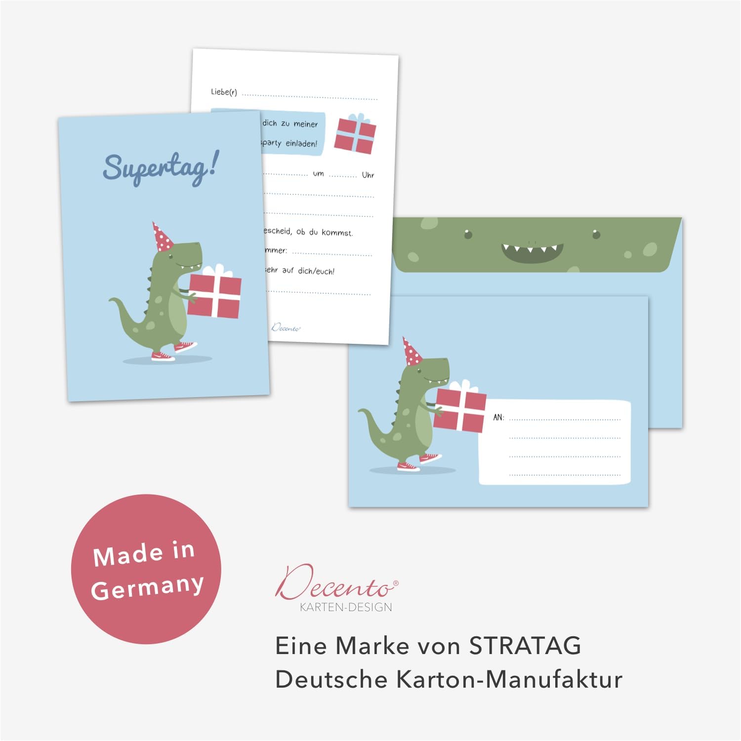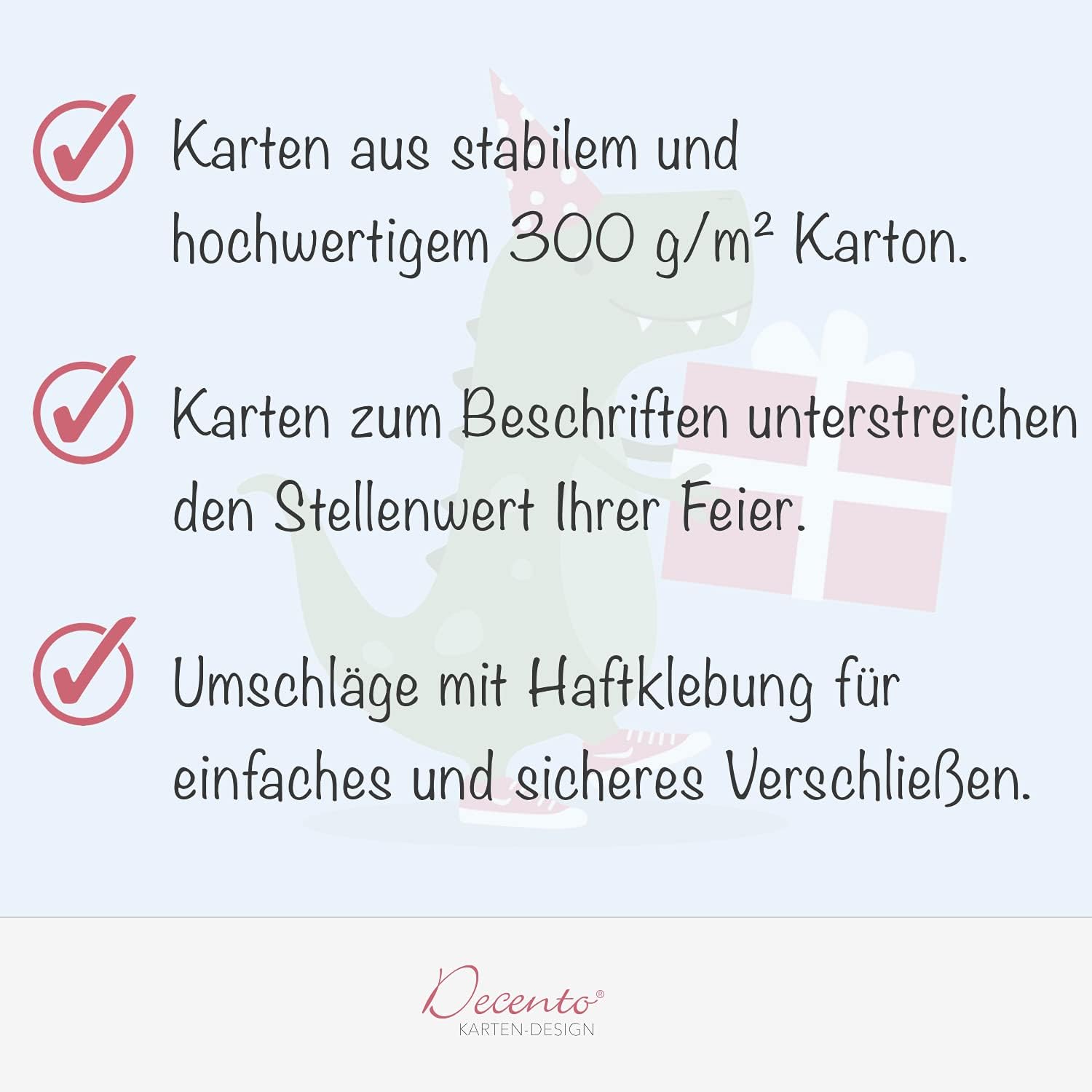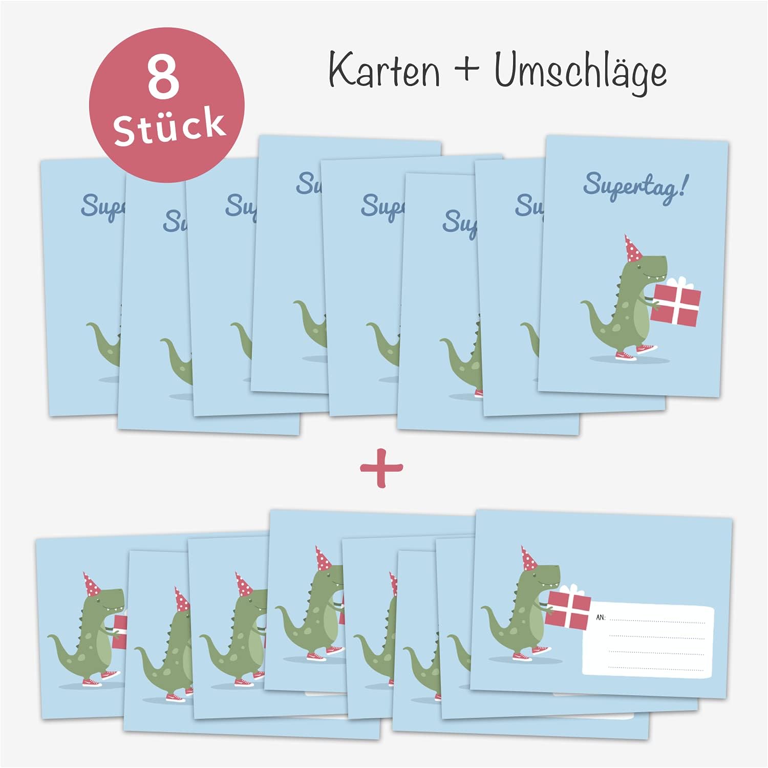 ♡ SET COMPLETO DI BIGLIETTI - Composto da 8 biglietti d'invito A6 con ottima scrivibilità + 8 buste C6 per una spedizione rapida ai tuoi ospiti di compleanno - perfettamente completati in un design contemporaneo e moderno. ♡ FACILI DA COMPILARE - Le cartoline tattili (14,8 x 10,5 cm) ti offrono molto spazio per scrivere il testo dell'invito. Il testo prescritto ti aiuterà a compilare le carte nel più breve tempo possibile. ♡ CARTA NON PATINATA - Per una maggiore struttura e una migliore scrivibilità con tutte le penne standard, le carte sono realizzate in robusto cartone naturale e riciclato da 300 g/m². Le nostre carte non sono patinate e non richiedono alcuna finitura. ♡ BUSTE INCLUSE - Sono incluse buste C6 abbinate (16,2 x 11,4 cm) in modo da poter inviare immediatamente i tuoi biglietti d'invito ai tuoi ospiti. Le buste sono autoadesive per una chiusura facile e veloce. ♡ MATERIALE SOSTENIBILE - I biglietti d'invito con il motivo dei dinosauri per la vostra festa dei dinosauri T-Rex sono realizzati con amore al 100% in Germania. I tuoi ospiti sentiranno la differenza rispetto alla carta artistica a portata di mano.