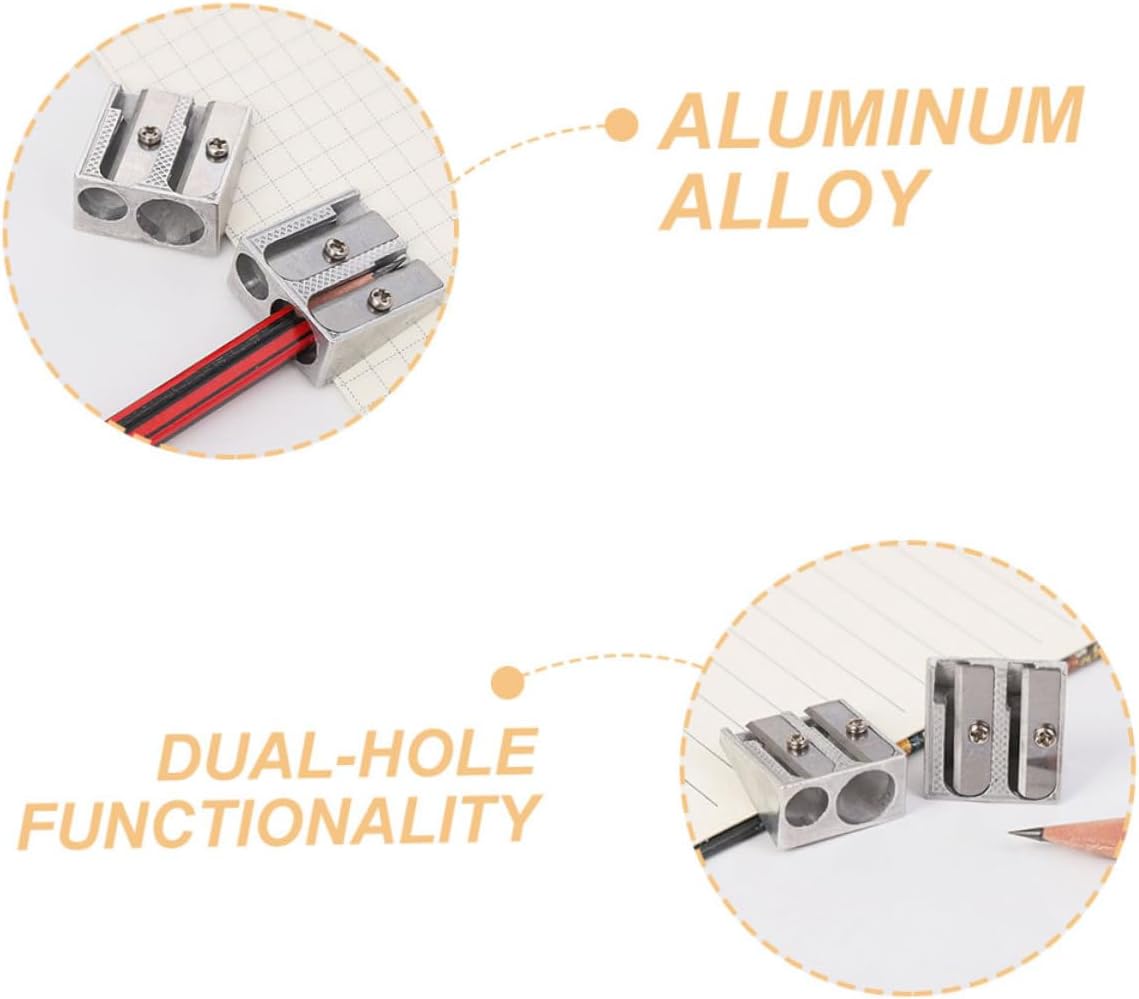 Design creativo: l'innovativo temperamatite in lega di alluminio a doppio foro facilita l'affilatura delle matite e migliora l'efficienza del lavoro Materiale eccellente: è realizzato in ottima lega di alluminio ed è durevole e affidabile per garantire un uso a lungo termine senza ruggine Funzionalità a doppio foro: il design a doppio foro consente di affilare matite con spessori diversi per soddisfare le diverse esigenze Affilatura di precisione: garantisce un'affilatura precisa e fornisce una nitidezza precisa Punte della matita per migliori esperienze di scrittura e disegno Uso versatile: Adatto a studenti, impiegati e artisti, è portatile e comodo da usare sempre e ovunque