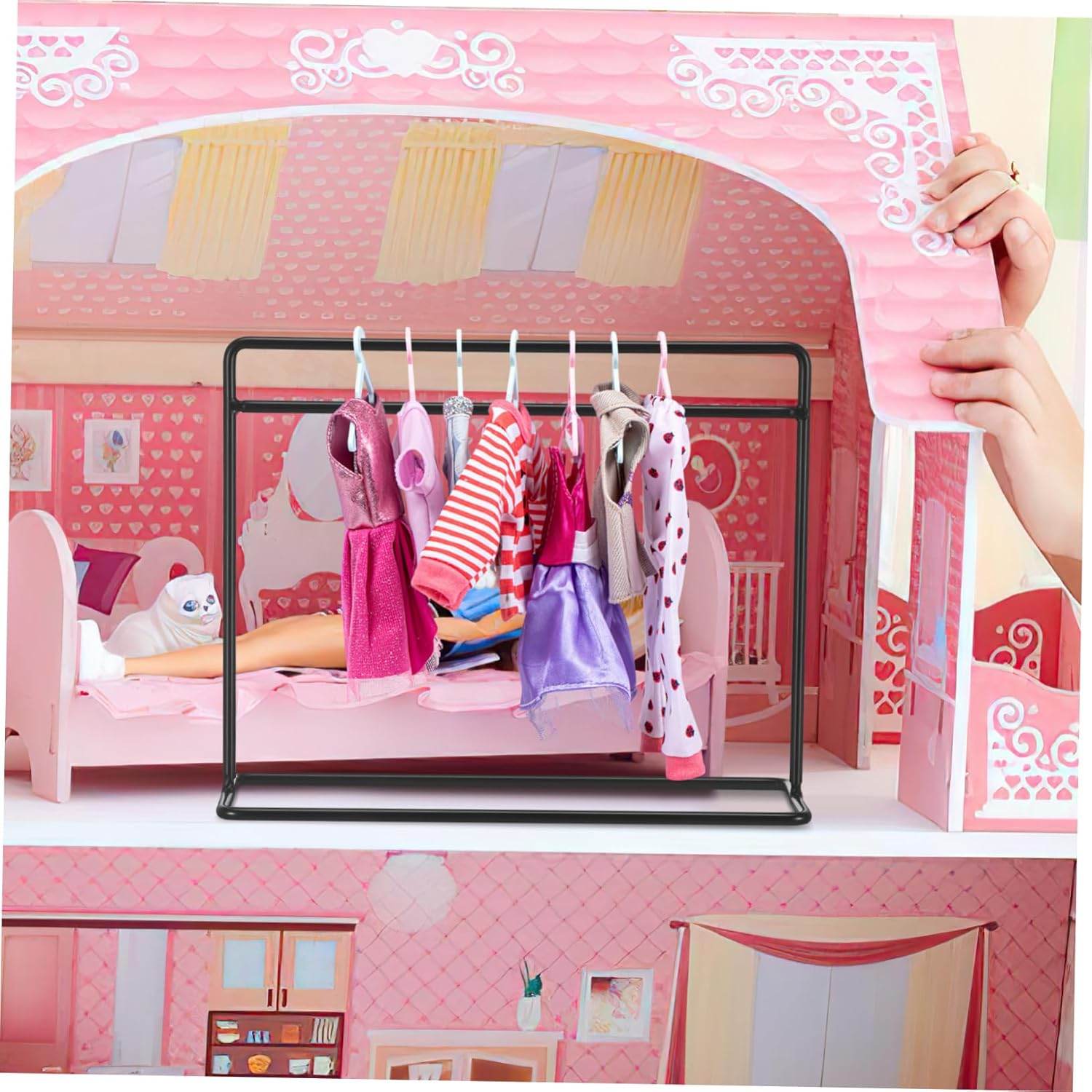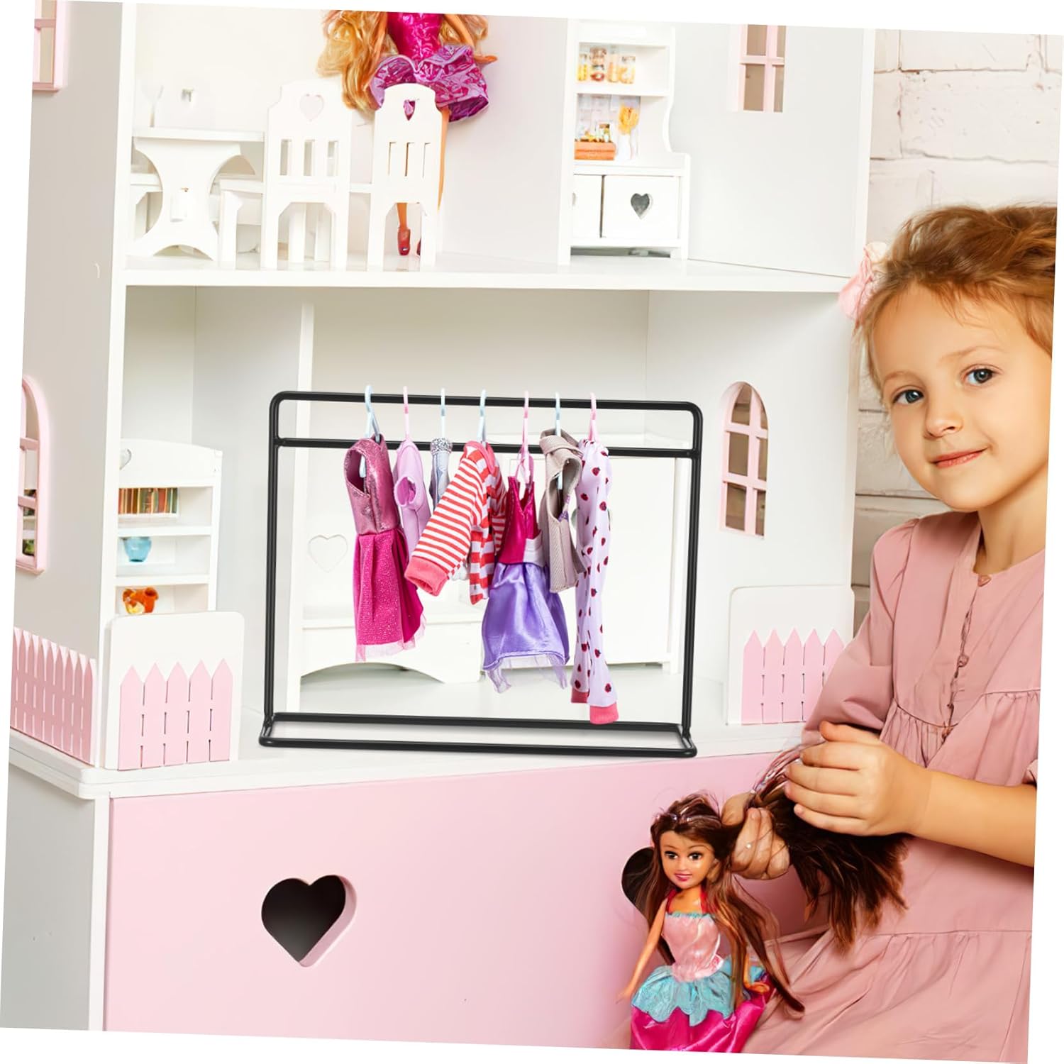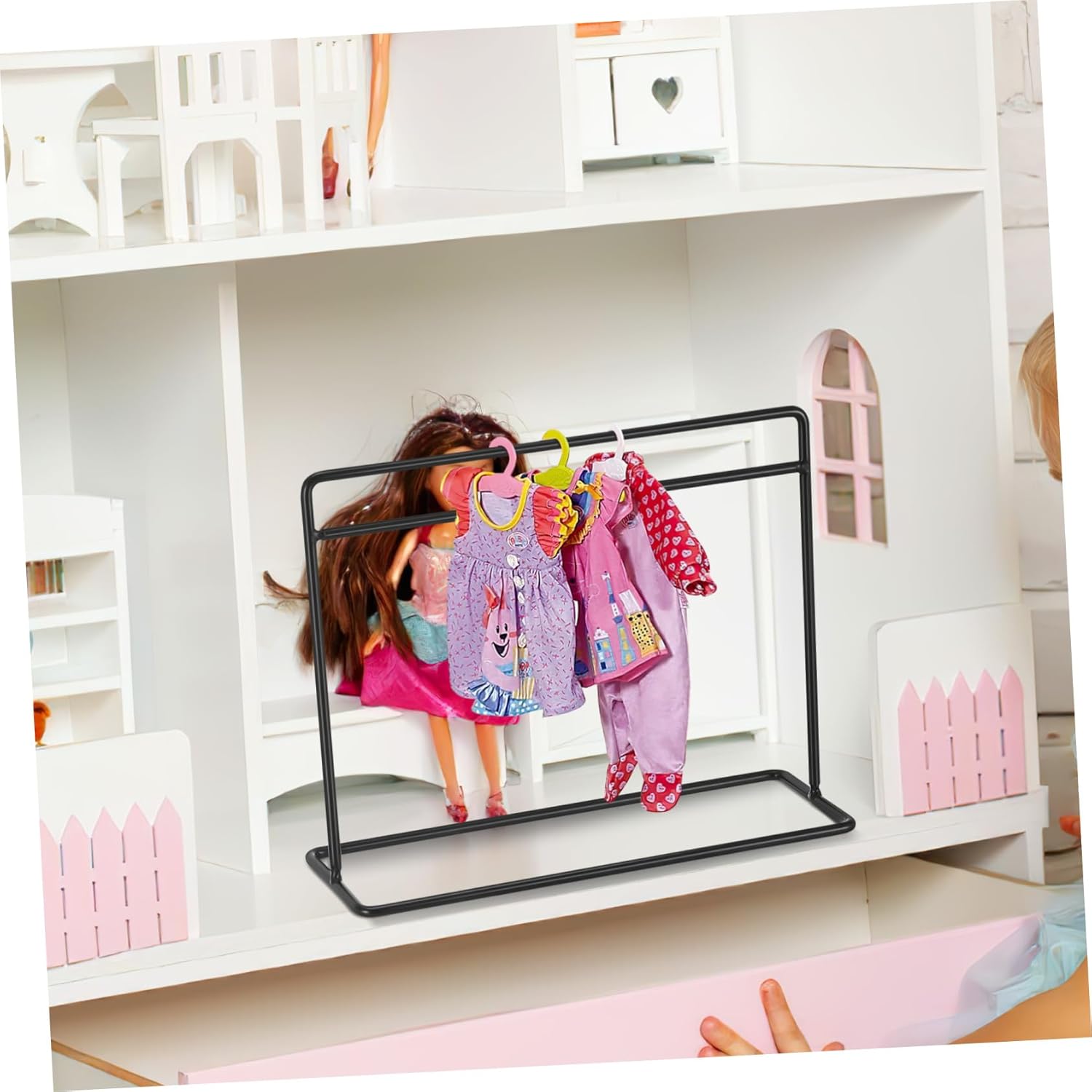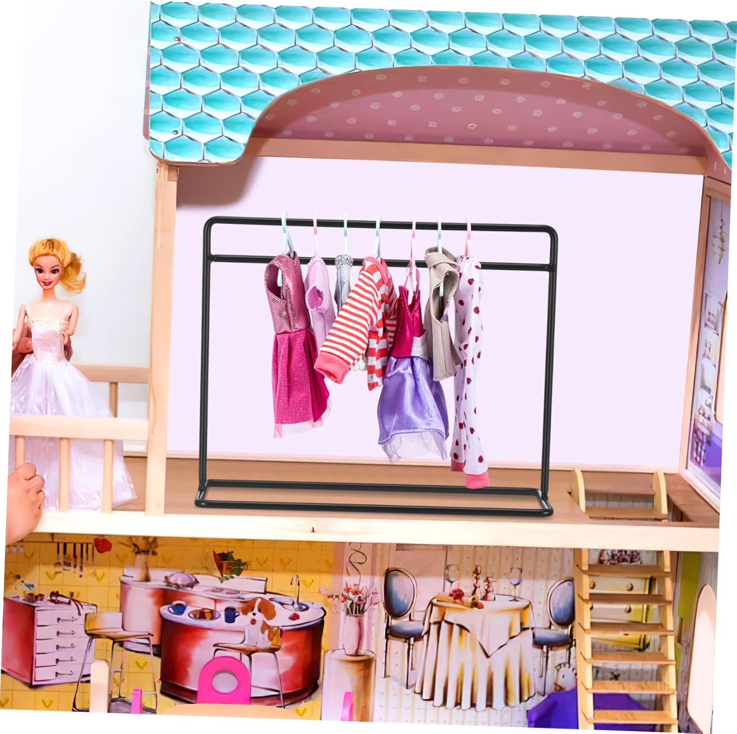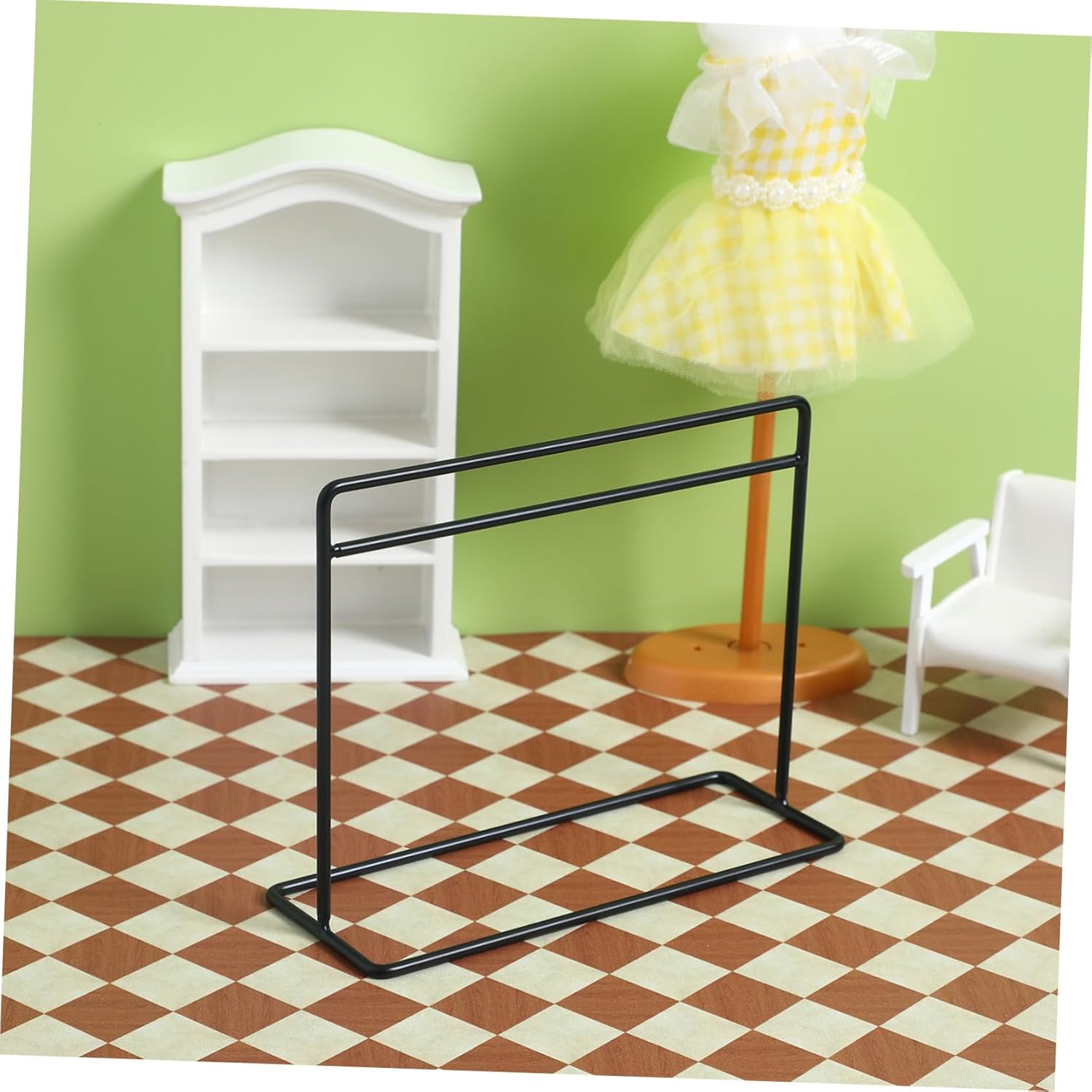Appendiabiti per bambole con grucce: realizzato in ferro e stabile, può essere utilizzato a lungo, appendiabiti per vestiti per bambole Appendiabiti per bambole: può essere usato per decorare le case delle bambole per rendere la tua casa delle bambole più bella ed elegante Appendiabiti per bambole: puoi usarlo per appendere i vestiti di cui la tua bambola non ha bisogno per l'uso quotidiano, mini vestiti per bambole Appendiabiti per bambole: questa è una combinazione che soddisfa le esigenze della tua casa delle bambole, anche un'ottima decorazione, mini appendiabiti per bambole Stand appendiabiti per bambole: adatto per appendere le tue mini vestiti per la casa delle bambole, divertenti e interessanti, appendiabiti per bambole
