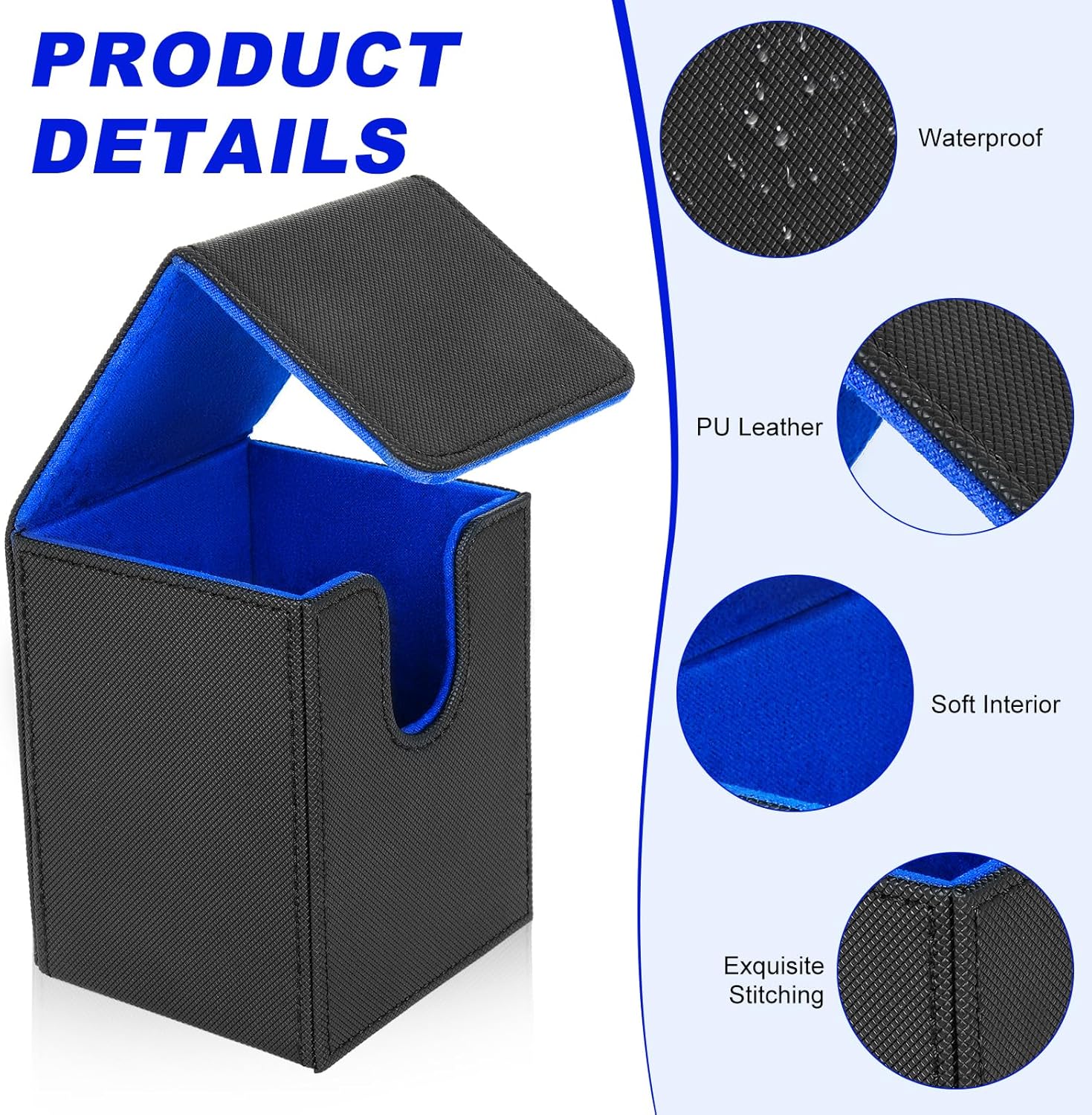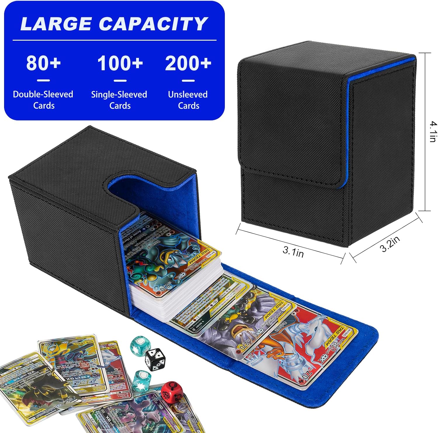 Dimensioni della scatola del mazzo:10,9 * 8,6 * 8,2 cm(4,29 x 3,39 x 3,23 pollici)Adatto per oltre 100 carte da gioco di dimensioni standard con custodia singola o 200 nuove carte senza custodia;Nota:solo scatola di carta,non include accessori Scatola portaoggetti per mazzo di giochi di carte Premium:Lo strato esterno è realizzato in pelle PU con trama antiscivolo,impermeabile,resistente ai graffi e all'usura,che può essere saldamente protetto dagli urti esterni;L'interno morbido può proteggere le tue carte collezionabili dai graffi Forte chiusura magnetica:I potenti magneti sono facili da aprire e chiudere,consentendoti di riporre le tue carte in modo sicuro in ogni momento e il coperchio può essere chiuso saldamente anche se scosso con forza,evitando che le carte cadano Multiuso:Adatto a una varietà di TCG,CCG,LCG e altre carte collezionabili;Compatibile con Magic The Gathering MTG,YuGiOh,Star Wars X-Wing,WoW,Game of Thrones,Legend of the Five Rings,Force of Will,Cardfight,Vanguard,Duel Masters,figurine calcio Panini e molti altri La nostra scatola per mazzi premium è appositamente progettata per giocatori e collezionisti,è un oggetto indispensabile per collezionare carte collezionabili ed