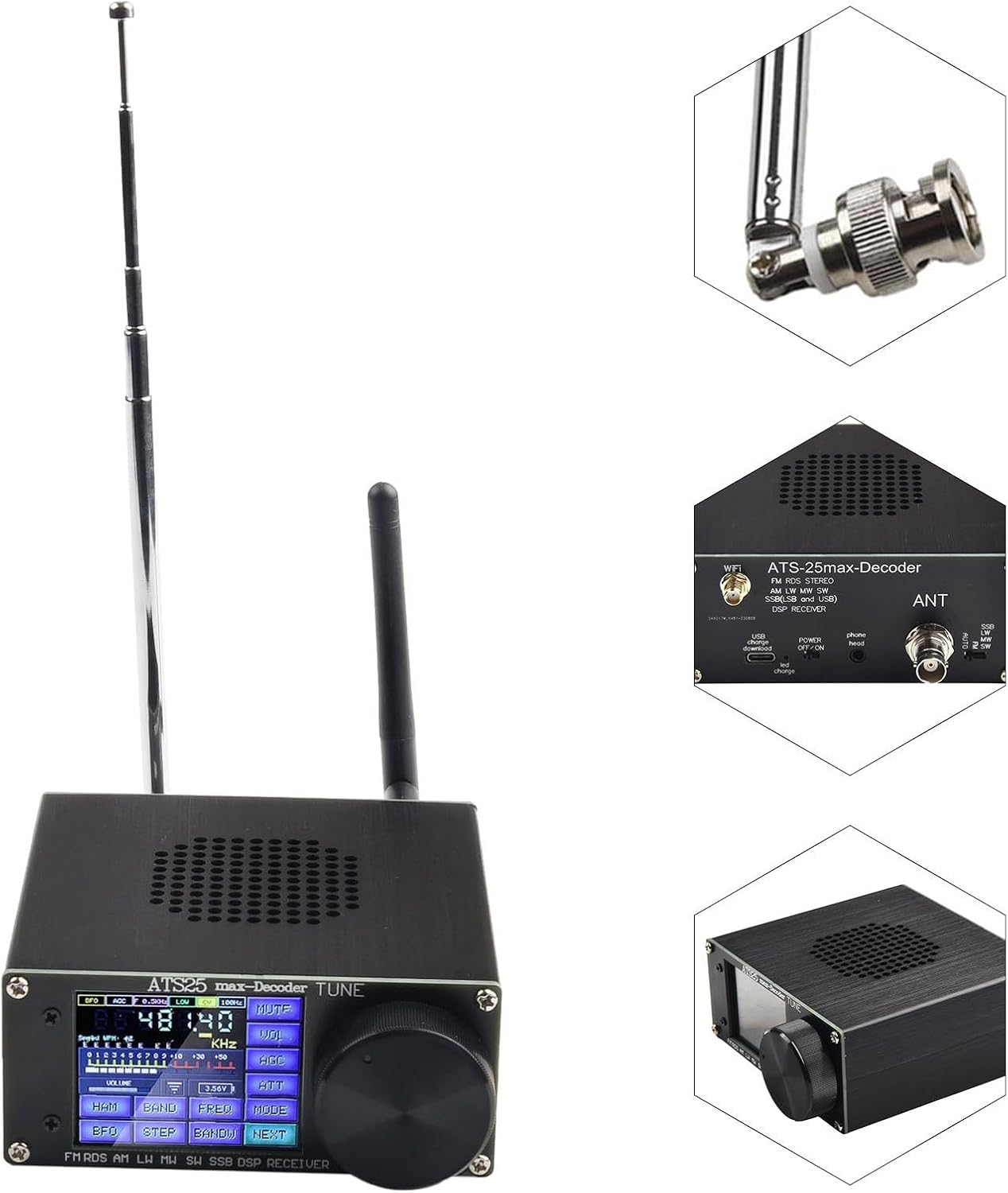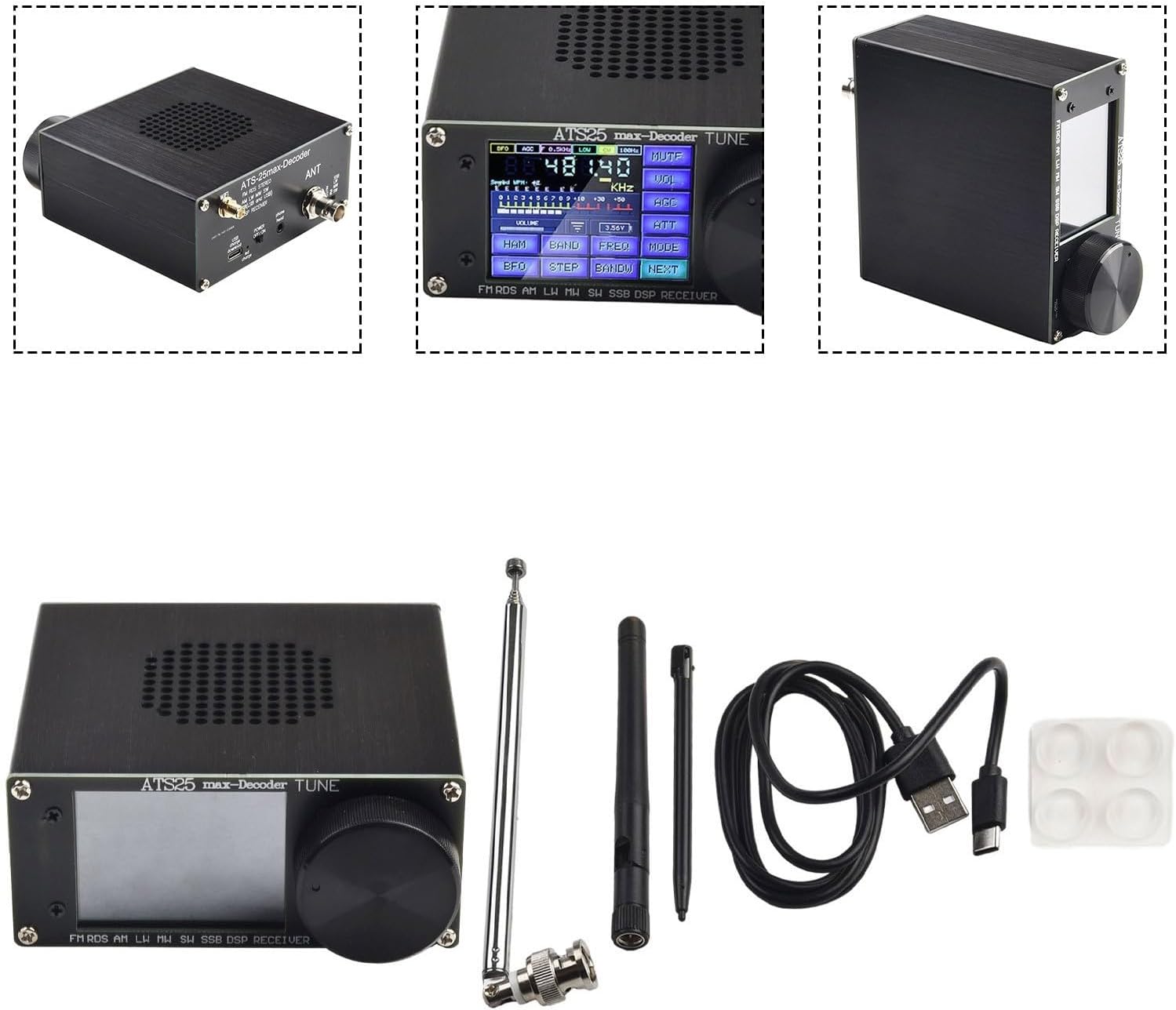 【Funzione di decodifica CW, RTty F4 F8】Funzione di decodifica CW, RTty F4 e F8 aggiuntiva con quattro spettri audio. 【Ottimizzazione del firmware】 Utilizzo della memoria del microcontrollore ottimizzato per migliorare la velocità dell'interfaccia. 【Precisione di visualizzazione migliorata】 Precisione di visualizzazione della frequenza migliorata nello spettro audio. 【Supporto multilingue】Portoghese aggiunto alle traduzioni brasiliane e francesi. 【Funzioni pratiche】Supporta diverse modalità operative per il segnale acustico, lo scorrimento del buffer del decodificatore e la frequenza di ingresso diretta tramite la tastiera digitale.