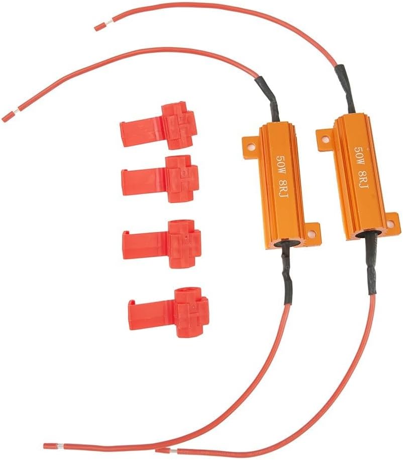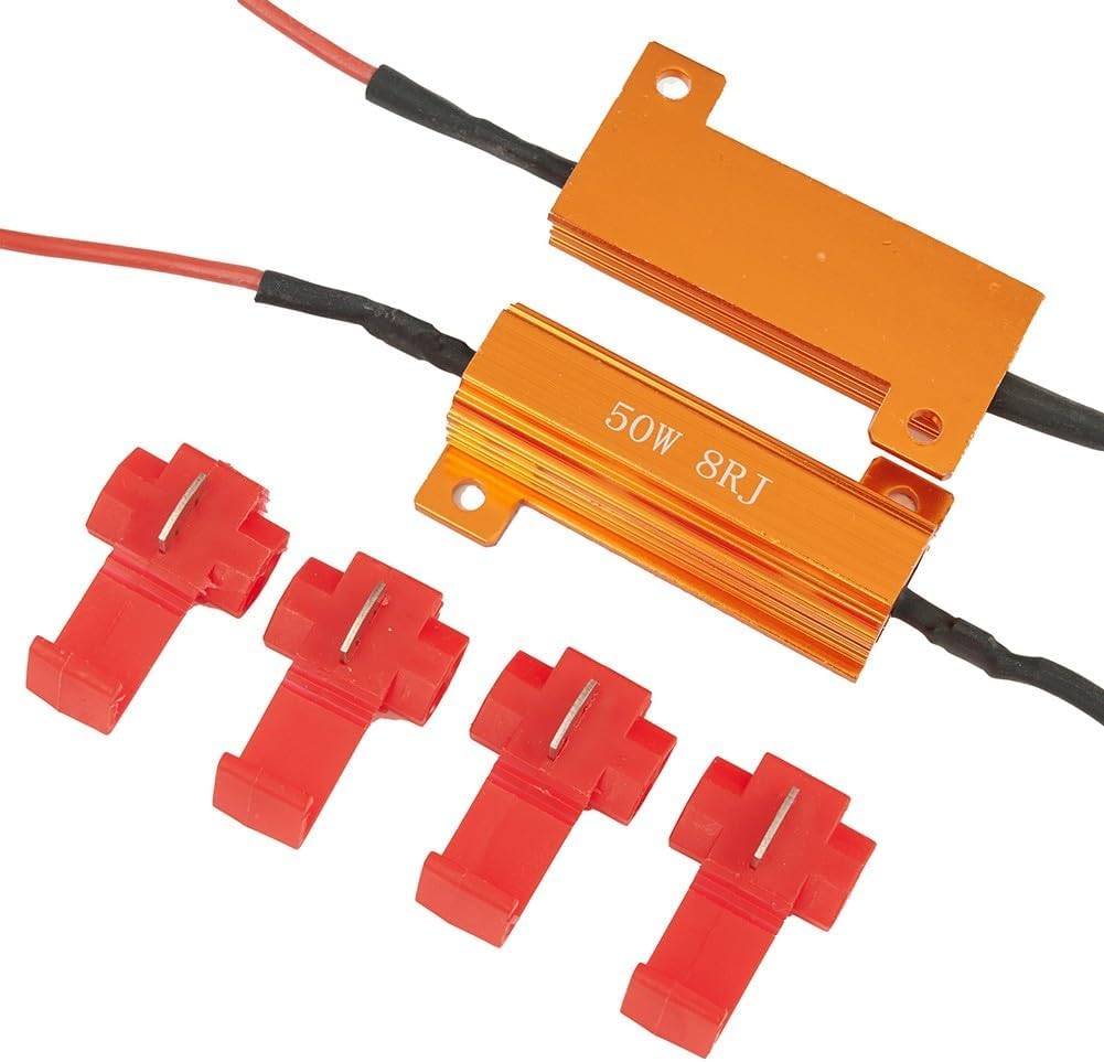 【Ripara il lampeggiatore Hyper Flash】 I decodificatori con resistore di carico LED da 4 pezzi 50 W 8 Ohm sono progettati per risolvere il problema della risposta lampeggiante rapida dopo l'installazione delle lampadine a LED. Fornisce una soluzione perfetta per eliminare questo problema e la corretta funzionalità. 【Risolvi il "Segnale Lampadina Spenta" e il Messaggio di Errore OBC】 Questi decodificatori possono risolvere efficacemente il problema del "Segnale Lampadina Spenta" o "Messaggio di Errore OBC" che spesso si verifica dopo l'installazione delle lampadine a LED. Con questi resistori puoi goderti un'esperienza senza problemi senza alcun messaggio di errore. 【Risolvere i problemi elettronici causati dalla sostituzione delle lampadine a LED】 La sostituzione delle lampadine con lampadine a LED può causare problemi elettronici. Tuttavia, con le resistenze di carico a LED è possibile superare questi problemi e le lampade a LED funzioneranno correttamente. Installazione semplice con T-Tap inclusi: le resistenze di carico LED sono dotate di cavi da 15 cm all'estremità e T-Tap per una facile installazione. Basta collegare i fili con le prese di giunzione incluse e non sarà necessario tagliare i cavi o eseguire procedure complicate. 【Eccellente dissipazione del calore】Con l'alloggiamento in alluminio dorato, questi resistori di carico forniscono un'eccellente dissipazione del calore. Ciò mantiene le resistenze fresche durante il funzionamento e ne garantisce la durata a lungo termine.