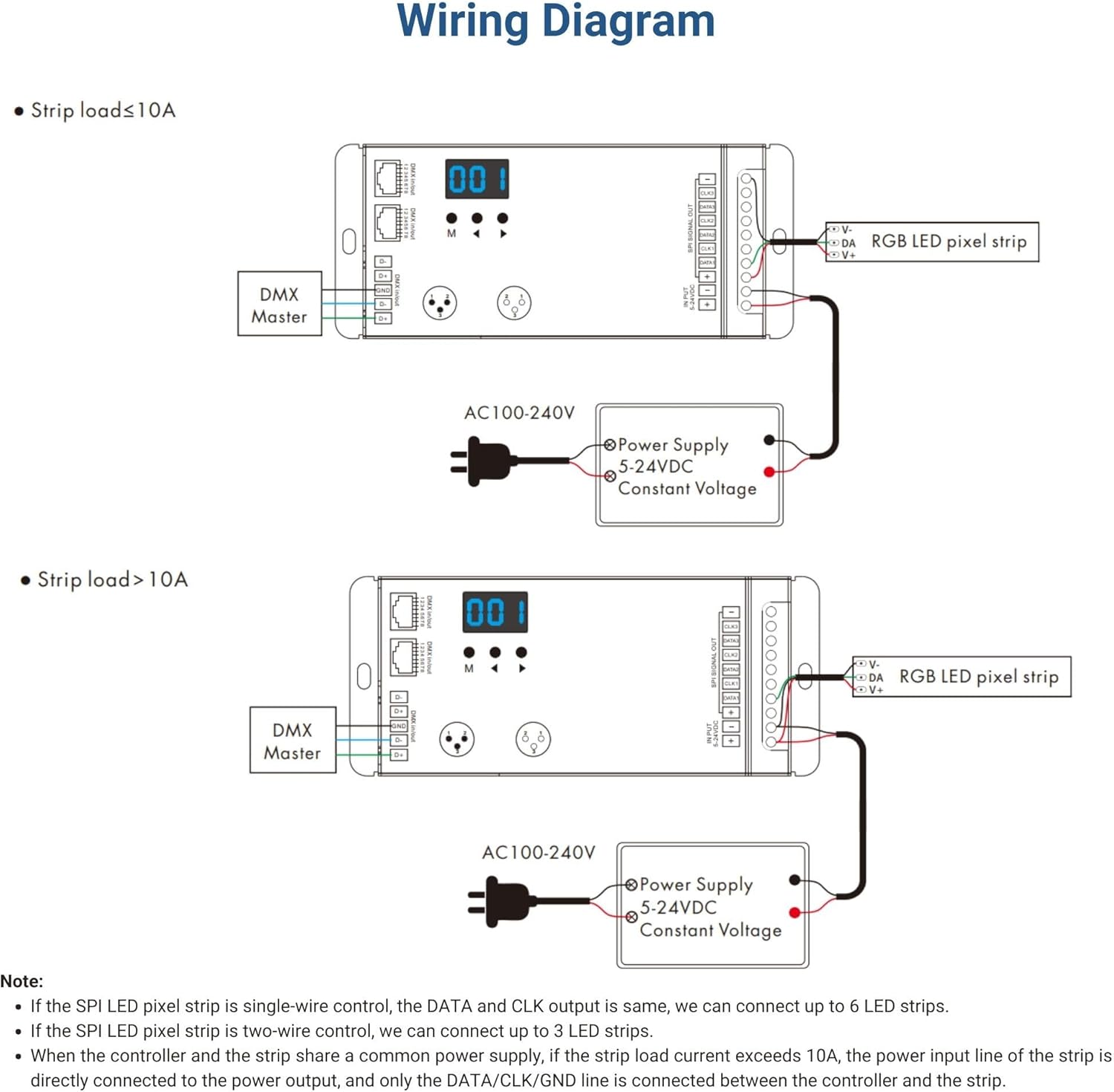 Il decoder da DMX512 a SPI Pixel e controller RF è una potente unità progettata per offrire un controllo versatile e completo sulle strisce LED digitali o intelligenti RGB/RGBW. Presenta un'ampia compatibilità con 47 diversi tipi di chip digitali: TM1803, TM1804, TM1809, TM1812, UCS1903, UCS1909, UCS1912, SK6813, UCS2903, UCS2909, UCS2912, WS2811, WS2812, WS2813, WS2815, TM1829, TLS3001, TLS3002, GW6205, MBI6120, TM1814B (RGBW), SK6812 (RGBW), SM16714 (RGBW), SM16703P, SM16714D, WS2813 (RGBW), WS2814