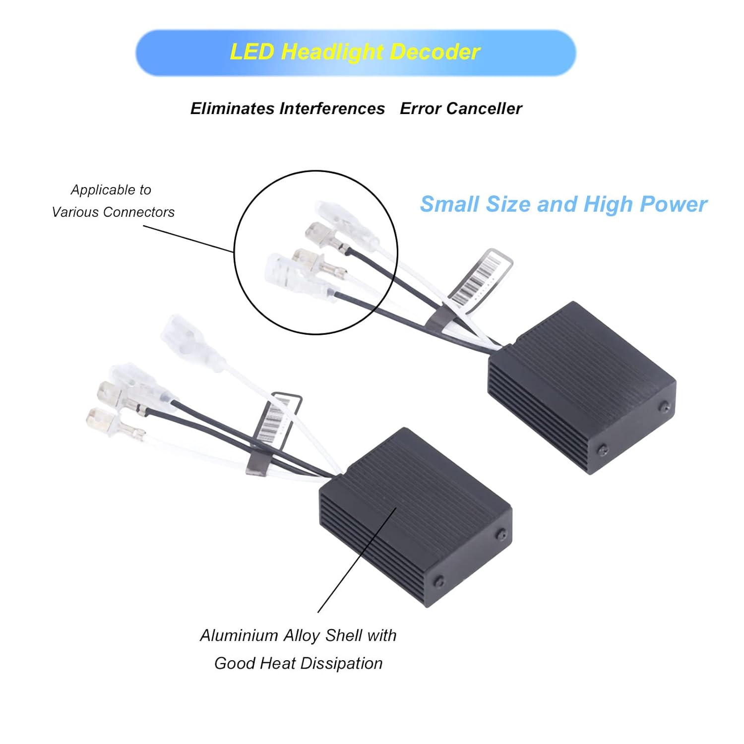 Decodificatore di luce: questo decodificatore di luce ad alta precisione può facilmente eliminare i codici di errore per la maggior parte dei fari a LED, molto utile. Uso pratico: applicabile a tutti i tipi di modelli, con una lunga durata fino a 39.000 ore e un'elevata potenza di 35 W. Design migliore: il design integrato consente una facile installazione, basta collegarlo e utilizzarlo direttamente, il funzionamento semplice consente di risparmiare tempo. Buon materiale: realizzato in lega di alluminio di alta qualità, altamente resistente alla corrosione e promette una rapida dissipazione del calore. Facile da trasportare: leggero e compatto, il decoder LED in 2 pezzi è molto comodo da trasportare e riporre.