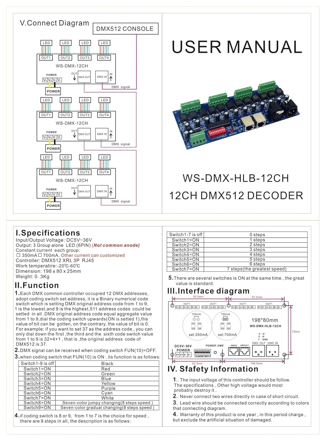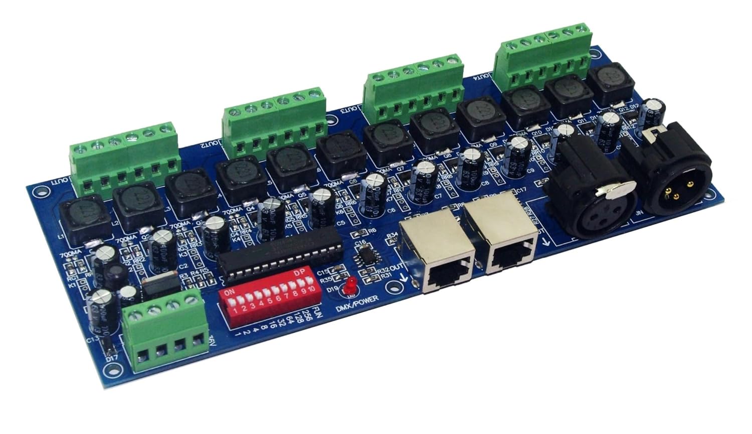 Componenti per l'illuminazione Decoder LED dimmer DMX512 a 12 canali a corrente costante 350MA/700MA*12CH e dimmer controller RJ45 3P for luci di striscia LED RGB