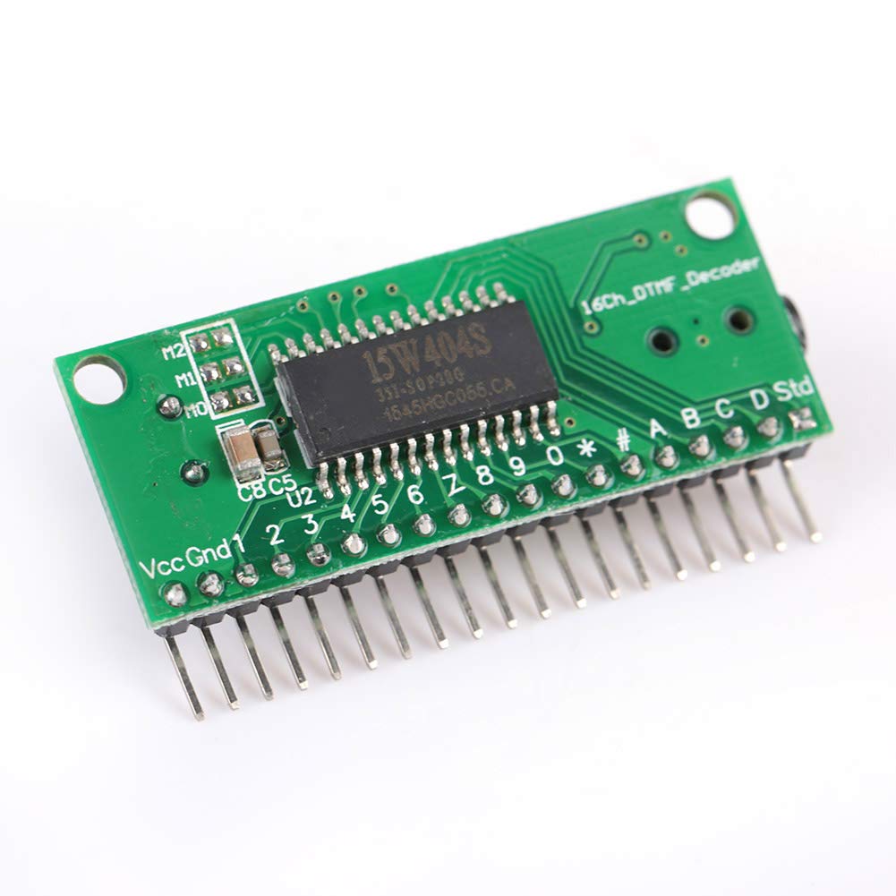 Un'altra uscita a 4 canali (ABCD) può utilizzare il controllo software "DTMF Dial". Questo modulo di decodifica è per la funzione di decodifica vocale mobile e fissa. Questo decodificatore audio è molto conveniente per incorporare tutti i tipi di telecomando remoto per telefono cellulare e fisso, valore di decodifica del telecomando. 12 canali di uscita decodificano i tasti del telefono mobile e fisso (0-9, * #). Dispone di 16 canali, 8 tipi di funzioni di uscita disponibili e porta al segnale STD utilizzare come segnale di interruzione del microcontroller.