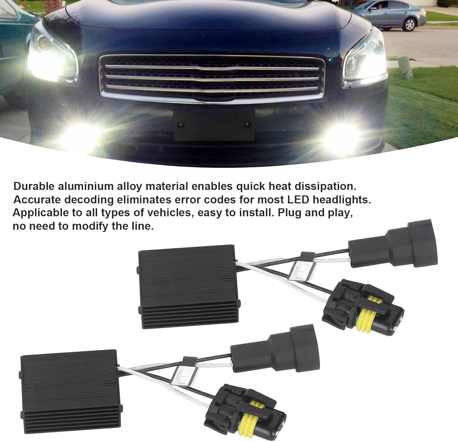 Elimina i codici di errore: risolvi facilmente i messaggi di errore sui fari a LED, garantendo prestazioni fluide e guida facile senza sfarfallio o avvisi sul cruscotto. COMPATIBILITÀ UNIVERSALE - Si adatta a una varietà di serie di veicoli e fornisce una soluzione semplice ai problemi dei fari a LED per quasi tutte le auto, camion o SUV. Installazione semplice: il design plug and play non implica alcuna configurazione complicata: basta collegare i decodificatori per ottenere risultati immediati con il minimo sforzo. Robusti e durevoli - Realizzati in lega di alluminio di alta qualità, questi decodificatori sono resistenti alla corrosione, dissipano il calore in modo efficiente e forniscono fino a 39.000 ore di migliori prestazioni. Compatto e portatile: leggero e poco ingombrante, è facile da trasportare e riporre, così puoi averlo a portata di mano quando devi effettuare riparazioni o sostituzioni rapide mentre sei in movimento.