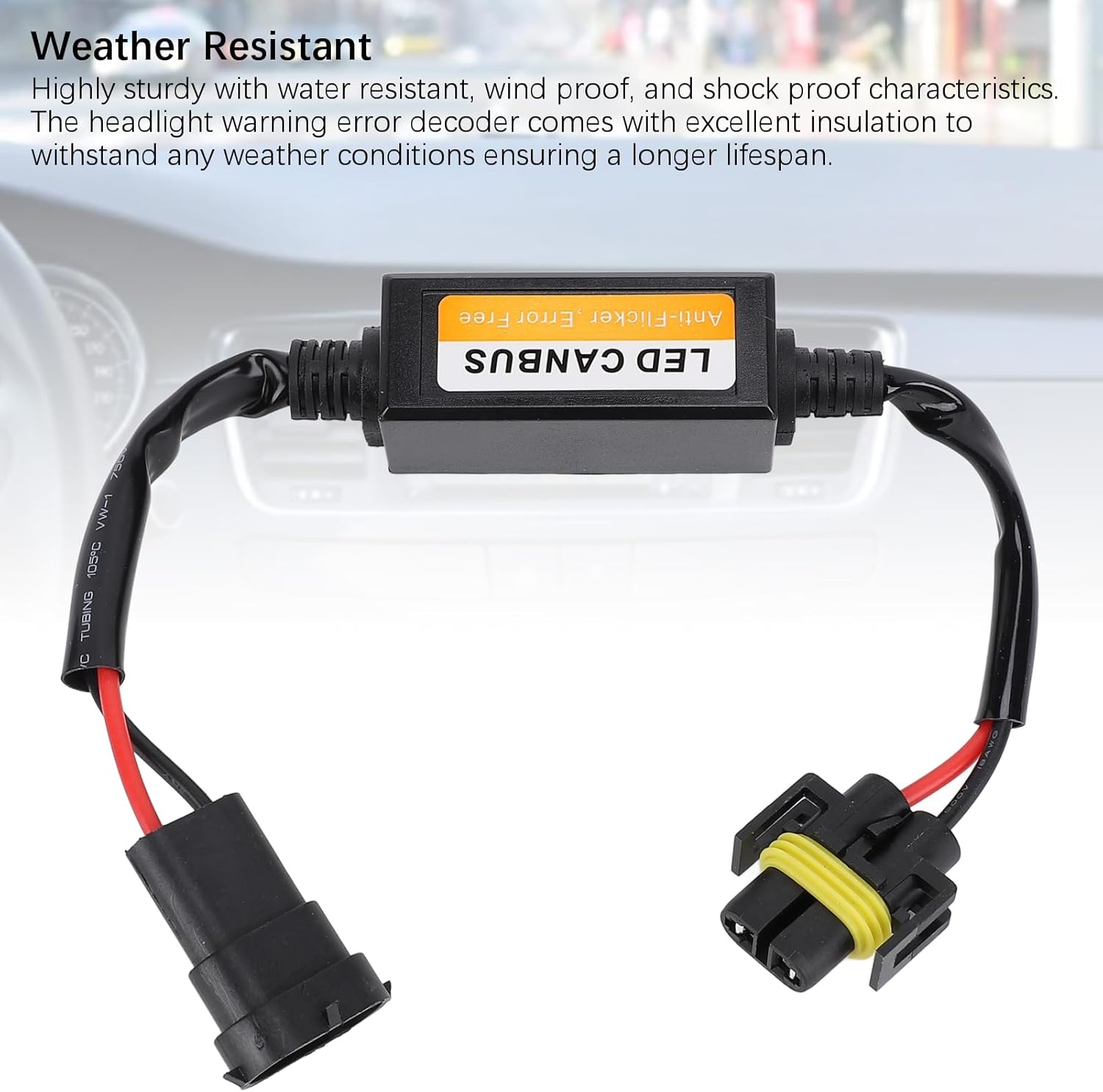 Resistente alle intemperie: estremamente robusto con proprietà antiacqua, vento e antiurto. Il decodificatore di guasto dell'avviso dei fari ha un eccellente isolamento per resistere a tutte le condizioni atmosferiche e garantire una maggiore durata. Installazione semplice: il decoder Canbus è precablato per una facile installazione plug and play, eliminando la necessità di normali resistori di carico. Converti facilmente la tua configurazione attuale in una pratica soluzione LED. MULTIUSO: il decodificatore del condensatore di annullamento dei fari a LED è adatto per veicoli con fari H8, H9, H11. Compatibilità universale per un utilizzo facile e conveniente con vari modelli di auto. Alte prestazioni: il decoder è progettato per risolvere i problemi causati dal basso consumo energetico durante la conversione da lampade alogene a lampade LED, come: B. OBC, computer di bordo, codici di errore di avviso, errori Canbus, lampeggio, assenza di sfarfallio, guasto della lampada o indicazioni di lampada bruciata. Maggiore luminosità: il decodificatore del resistore di errore dei fari è dotato di resistori di carico che assicurano che le lampadine a LED si accendano a piena potenza senza malfunzionamenti. Ottieni la massima luminosità senza preoccuparti di errori o malfunzionamenti.