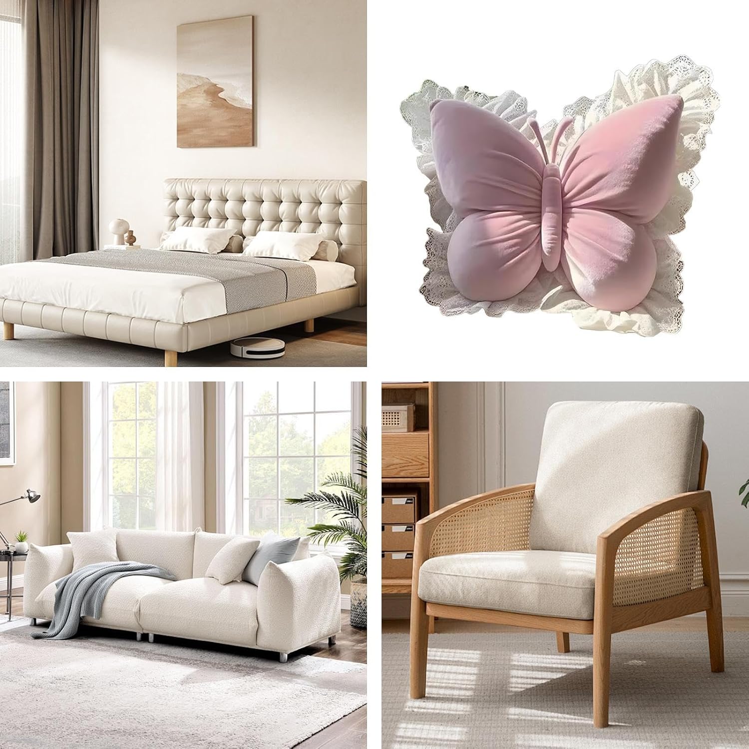 Cuscino decorativo funzionale e soluzione: il cuscino a farfalla è progettato per alleviare i disturbi alla schiena con il suo design ergonomico e funge da pratica soluzione di supporto lombare elegante per sedie da ufficio o sedili auto. Perfetto per il pendolarismo quotidiano o le sessioni di lavoro, offre comfort e sostegno che migliorano la seduta e convincono grazie alla sua qualità duratura. Supporto morbido: il cuscino Butterfly Throw è dotato di un rivestimento in velluto e una morbida imbottitura in cotone PP, che garantisce grande comfort e una sensazione delicata sulla pelle. È ideale per alleviare la schiena mentre si guarda la TV o si lavora sul divano, e promette una qualità durevole per un uso a lungo termine. Il cuscino offre un perfetto equilibrio tra morbidezza e supporto per momenti di relax. Eleganza ispirata alla farfalla: il cuscino a farfalla combina un design a farfalla con una delicata decorazione in pizzo, esalta l'estetica e aggiunge un tocco affascinante alla cameretta dei bambini, alle stanze dei giochi o alle confezioni regalo per una presentazione incantevole. L'aspetto elegante lo rende ideale per decorazioni giocose e sottolinea il fascino decorativo in ogni configurazione. Regalo creativo di gioia: questo cuscino a farfalla ti permette di esprimere la tua cura in modo creativo, portando divertimento e allegria alle aree della vita. Migliora facilmente le celebrazioni come vacanze, feste o incontri speciali ed è una scelta eccellente per chi cerca un regalo memorabile. Con il suo stile giocoso, promuove un'atmosfera serena e mostra il tuo affetto in modo innovativo. Design elegante con pizzo: il cuscino a farfalla convince per un delicato bordo in pizzo che enfatizza l'estetica sofisticata, garantendo profondità visiva e una trama tattile. Allo stesso tempo, la tuta aumenta il comfort, che favorisce i momenti di relax. L'abbinamento senza sforzo con il divano o la biancheria da letto del soggiorno crea un'atmosfera accogliente e dona a qualsiasi stanza un tocco armonioso, senza decorazioni elaborate.