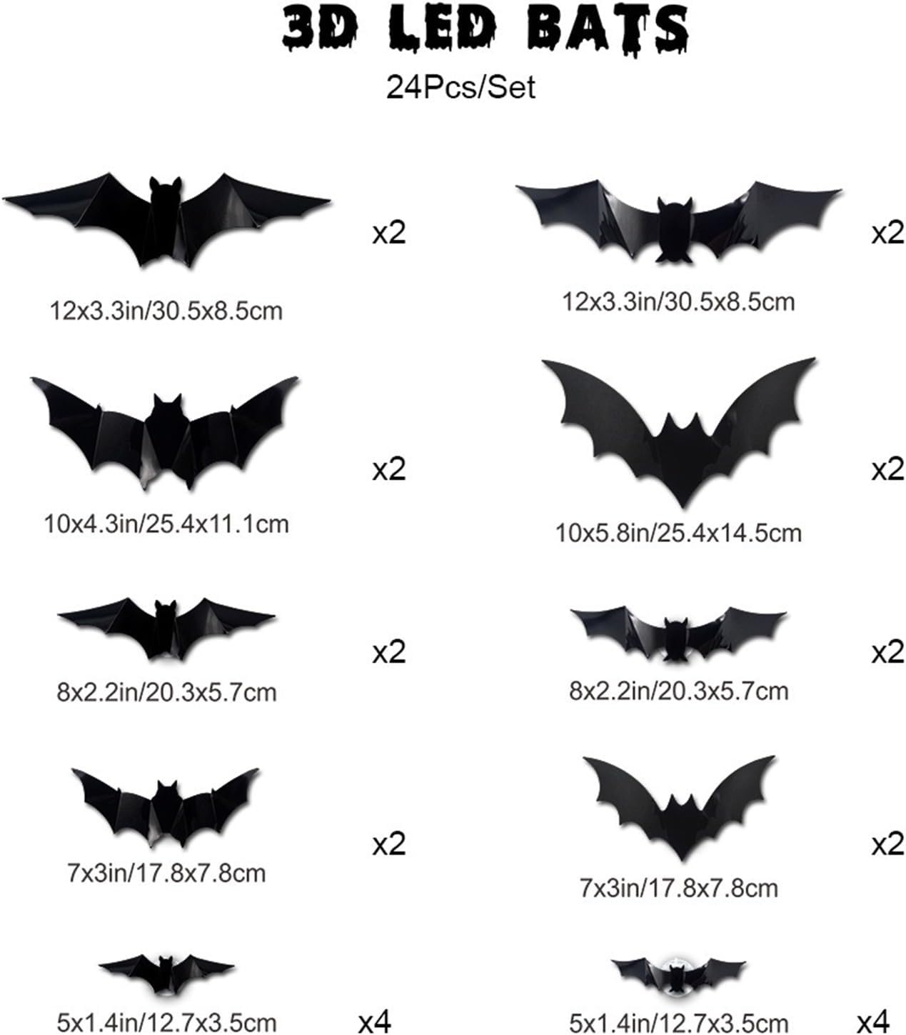 Pipistrelli 3D realistici: le decorazioni a LED per pipistrelli simulano vividamente lo stato di volo dei pipistrelli. Metti la luce notturna del pipistrello sul muro nella notte di Halloween, sembra un vero pipistrello. 【Set di pipistrelli di 3 dimensioni】 Le nostre luci a pipistrello LED di Halloween includono 3 dimensioni, diverse dimensioni possono soddisfare le diverse esigenze di decorazione. Materiale affidabile: gli adesivi pipistrelli che si illuminano al buio sono realizzati in PVC spesso, resistente ai graffi e opaco; Le tacche 3D migliorano la vivacità dei pipistrelli. 【Facile da usare】Attacca la colla inclusa sulla base della scatola della batteria, imposta la postura di volo del pipistrello, quindi attaccala sulla scatola della batteria. MULTIUSO: puoi anche decorarli ovunque nella tua casa, come porta, soggiorno, cucina, scale, camera da letto, finestra, ecc. per creare un'atmosfera festosa.