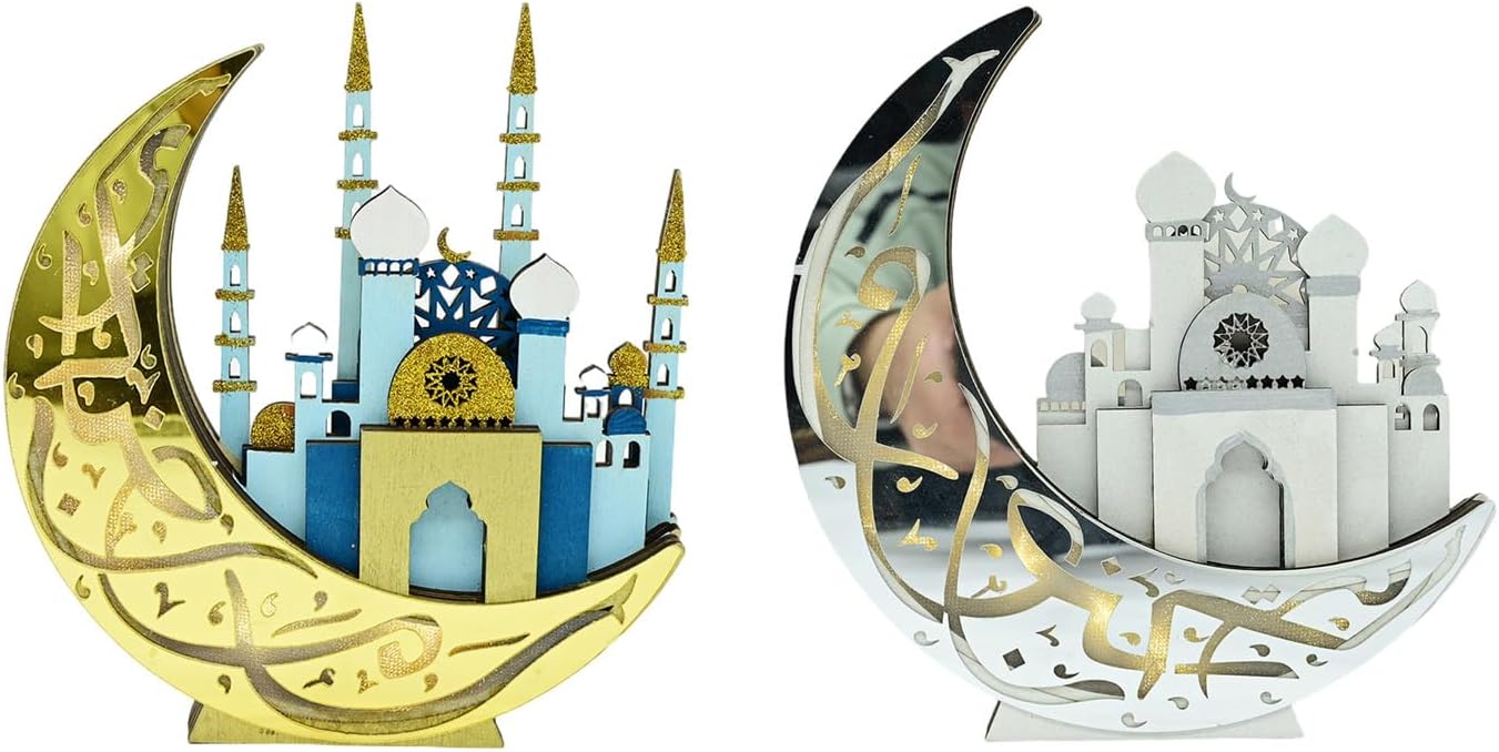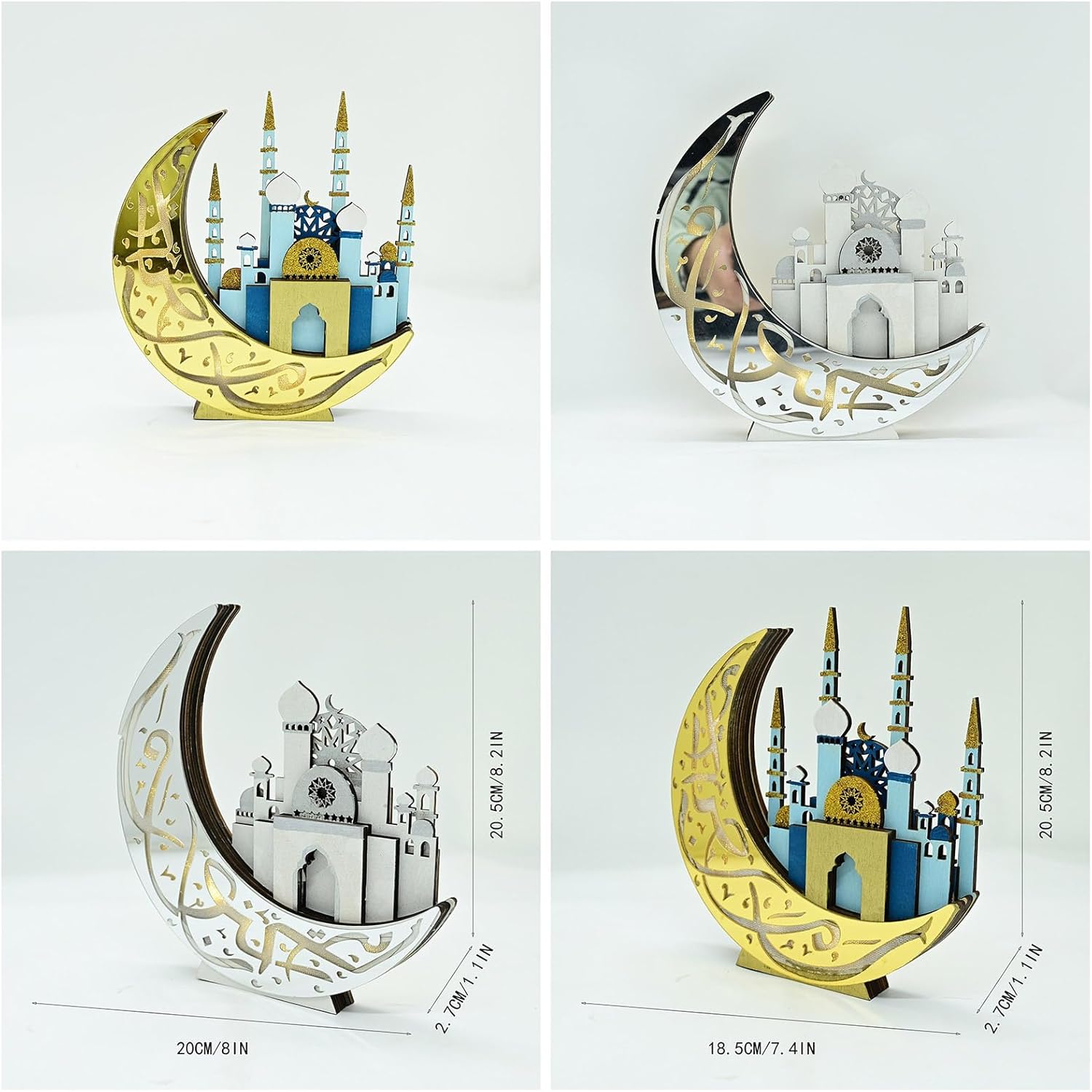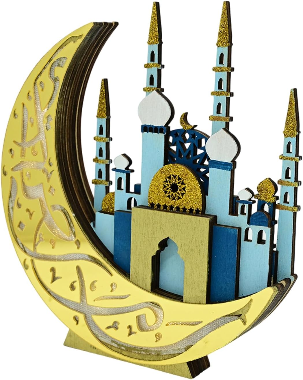 Ottimo per la famiglia musulmana, i luoghi religiosi e gli organizzatori di eventi stanno cercando di aumentare la loro celebrazione EID con sofisticato ornamento decorativo Festeggia l'EID con il nostro squisito ornamento in legno, dispone di un classico design a forma di luna e castelli, che migliora le atmosfere festive e dona eleganza alle vostre decorazioni per le vacanze Questo ornamento in legno è una decorazione; e un simbolo di tradizione e celebrazione, disegni per portare felicità e bellezza in ogni stanza durante il mese sacro Artigianato in legno di alta qualità, questi decori hanno intricato intaglio Ideale per la decorazione della casa durante Eid, moschea o come sfondo per feste che creano ambienti caldi e accoglienti