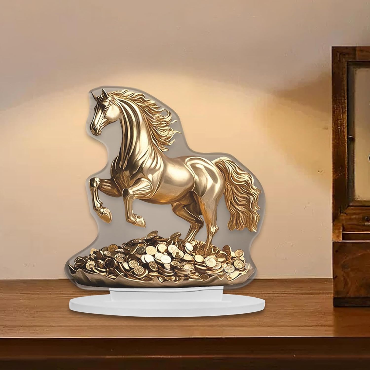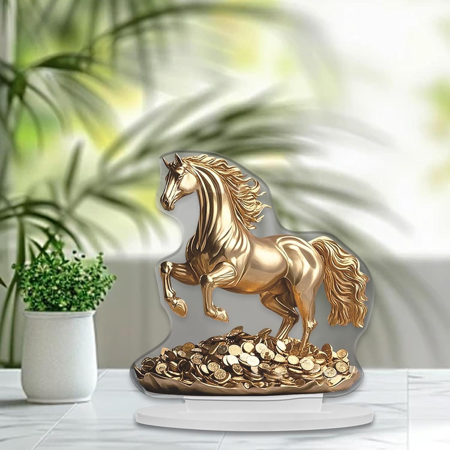 【Design di base】: la decorazione da tavolo è adatta per l'esposizione in casa, ufficio, decorazioni per interni ed esterni. 【Design piatto 2D】: la decorazione per feste ha un design acrilico piatto 2D. La pellicola deve essere rimossa prima dell'uso per mostrare l'effetto. 【Materiale acrilico】: la decorazione acrilica del cavallo è realizzata in materiale acrilico, leggero e resistente.