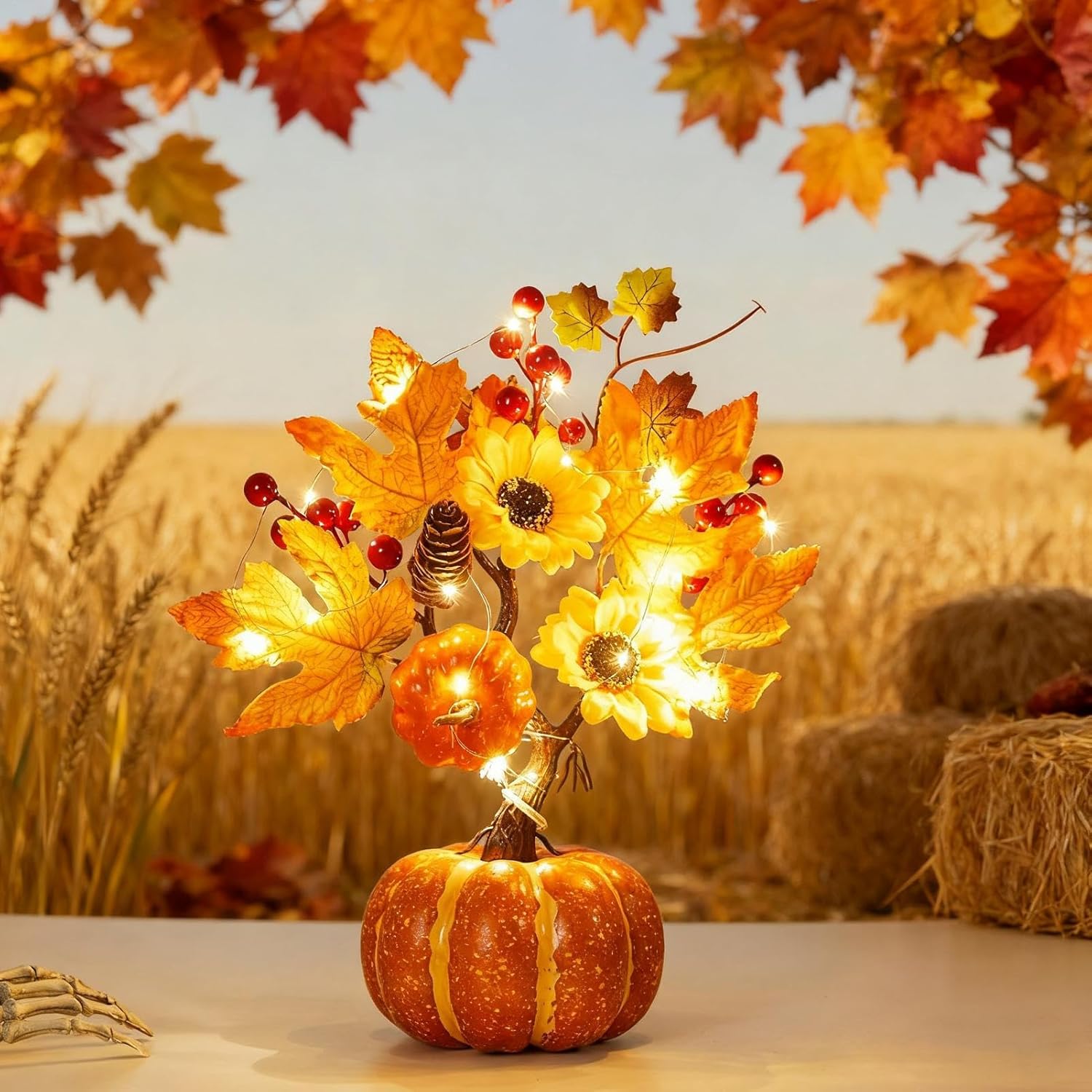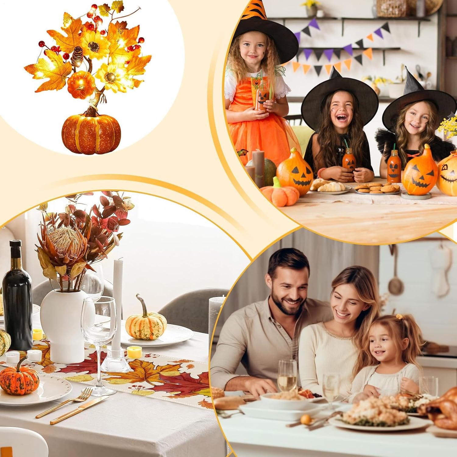 Miglioratore d'Atmosfera : Progettato per elevare l', emana una luminosità affascinante che migliora le ambientazioni festive, ideale per creare tradizioni autunnali preziosi con un effetto caloroso e invitante Essenziale Festa del Raccolto: Realizzato con luci calde intermittenti e dettagli arborei intricati, crea un'atmosfera accogliente per festività autunnali; versatile per interni o esterni come patii e ingressi, trasmette caldi auguri durante le serate autunnali migliorando l'ambiente con stile tematico Setup Istantaneo: Le zucche artificiali luminose sono preassemblate e funzionano subito. Ideali per cenee e feste, garantiscono flessibilità decorativa senza complicazioni, creando un'atmosfera incantevole con eleganza luminosa e zero stress Stile Festivo Migliorato: Questa autunnale con luci incorpora elementi artificiali di zucche e bacche per arricchire l'estetica autunnale, ideale per tavoli e davanzali per elevare il fascino stagionale della casa con un design accogliente e festoso Incantevole Bagliore Autunnale:Questa decorazione autunnale a forma di con luci LED aggiunge un tocco elegante alla tua casa, con un design compatto per caminetti o ingressi, creando un'atmosfera accogliente e invitante per gli interni durante la stagione autunnale