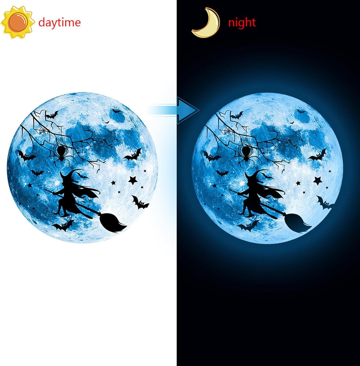 Materiale durevole: realizzato in PVC ecologico, questa decorazione murale di Halloween è impermeabile, priva di tossine e non richiede energia, garantendo sicurezza e sostenibilità per più stagioni Ambiente Festivo: integra idealmente vari spazi come pareti, porte e finestre, aggiungendo anche a laptop, frigoriferi e specchi in modo semplice per Halloween. Notturno autonomo: assorbe la luce ambientale per creare un'aura di luce di luna brillante di notte, aggiungendo un unico alla tua esperienza di decorazione da parete per Halloween. Senza rifiuti e danni: grazie alle sue proprietà autoadesive, questa decorazione di Halloween è facile da applicare e rimuovere senza danneggiare le superfici o lasciare segni residui. Regalo versatile: progettato per creare atmosfere da sogno in qualsiasi area, questa decorazione da parete Halloween è adorata da tutti, offrendo doppia funzionalità come un dettaglio affascinante o un accento decorativo quotidiano elegante.