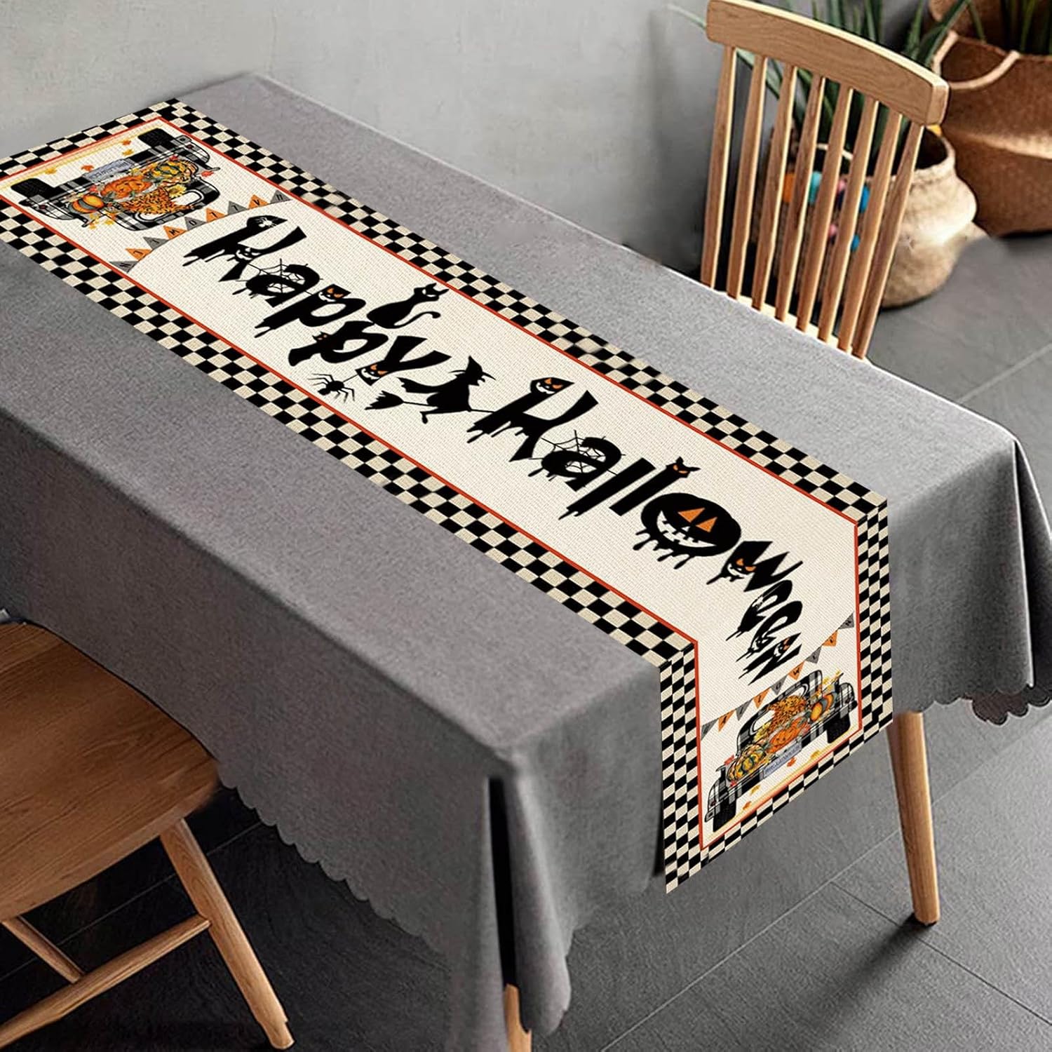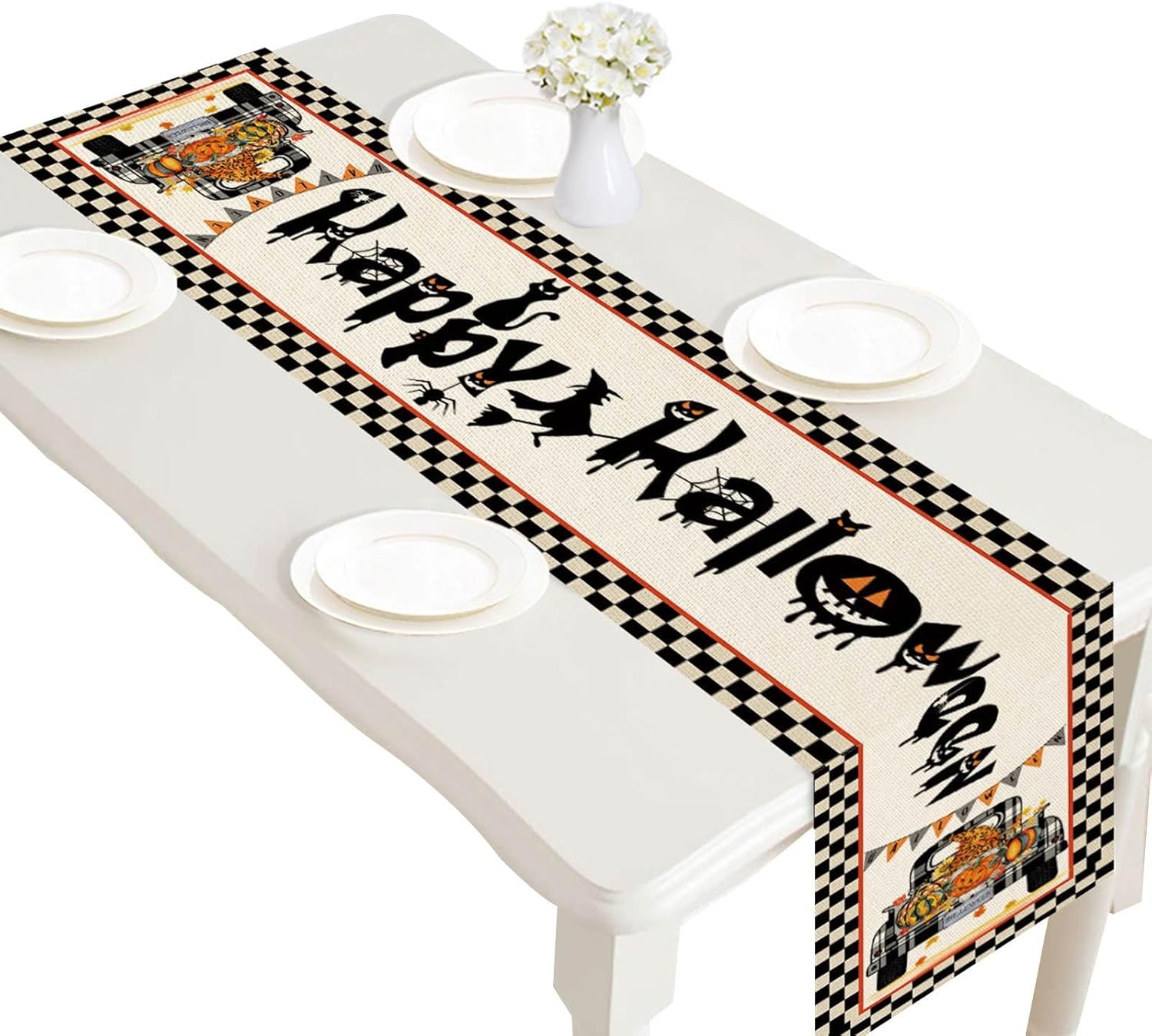 Tipici motivi di Halloween: crea un'atmosfera terrificante alla tua festa di Halloween con questa decorazione da tavola perfetta. L'aggiunta di classici elementi di Halloween sul runner da tavola aggiunge il tocco spaventoso di cui hai bisogno per infestare la tua festa. Ampia applicazione: stupisci i tuoi ospiti con questo macabro runner per Halloween, ideale per tutti gli sconti sulla tavola di qualsiasi festa sul tema delle scene di Halloween o della casa infestata. Schermo per tavolo: assicurati di proteggere il tavolo da fuoriuscite e danni con il nostro runner da tavola di Halloween. Aggiungi una scintilla di gioia e feste al tuo arredamento senza paura di fuoriuscite e danni creativi dei bambini. Il nostro runner da tavola con motivi luminosi e divertenti è progettato per affrontare tutto! Risparmia tempo: non c'è bisogno di pulire le fuoriuscite di bevande con il nostro runner da tavola di Halloween. di momenti di qualità con la famiglia e gli amici senza perdere tempo a ripulire i danni. Pratico da riutilizzare: il nostro runner da tavola di Halloween è realizzato in materiale resistente al colore e durevole, riutilizzabile e perfetto per un uso a lungo termine. Preparati a stupire i tuoi ospiti con questo stravagante centro centro di alta qualità!