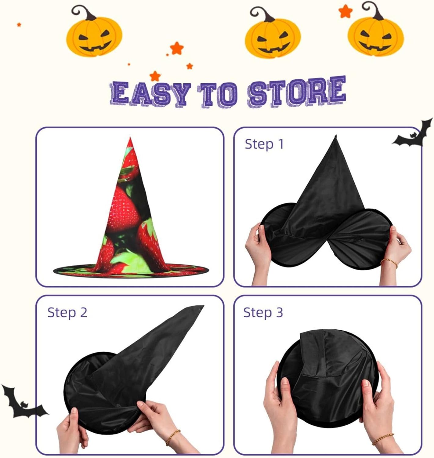 Decorazione del cappello della strega della stampa del modello di fragola per Halloween,Cappelli di Halloween versatili,Cappelli maghi pieghevoli cappelli da strega Bulk