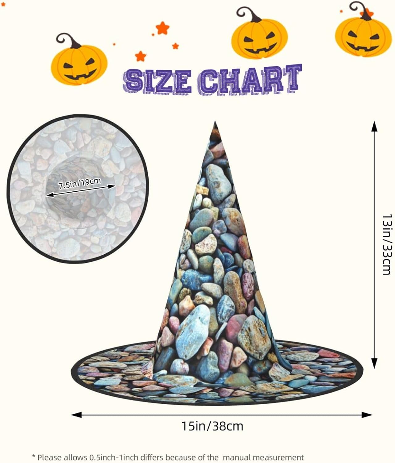 Realizzati in tessuto Oxford superiore, i nostri cappelli con stampa con motivo a pietra garantiscono durata e longevità. Il design unico consente di ridurre al minimo la parte superiore del cappello e i bordi di essere attorcigliati e piegati, rendendo i cappelli salvaspazio e facilmente portatili. Ogni cappello con stampa con motivo a pietra è di dimensioni generose per adattarsi alla maggior parte delle persone ed è leggero per un uso confortevole. Si prega di leggere la tabella delle taglie prima di effettuare l'ordine. Il design versatile dei nostri cappelli da strega di Halloween con stampa con motivo in pietra li rende perfetti per varie occasioni. Sono lavabili in lavatrice e ad asciugatura rapida per una facile manutenzione.