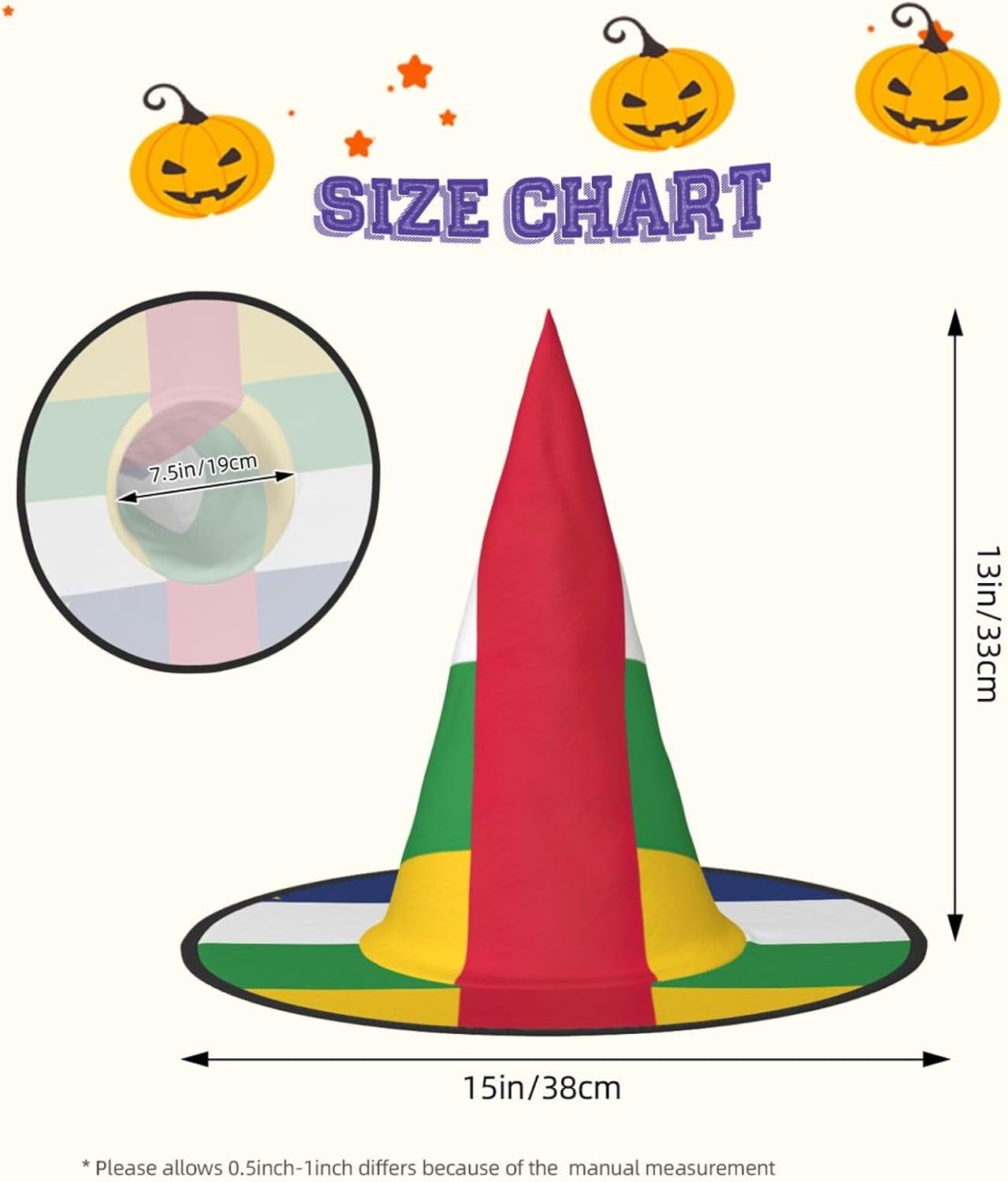 Realizzati in tessuto Oxford superiore, i nostri cappelli con stampa bandiera dell'Africa centrale garantiscono durata e longevità. Il design unico consente di ridurre al minimo la parte superiore del cappello e i bordi di essere attorcigliati e piegati, rendendo i cappelli salvaspazio e facilmente portatili. Ogni cappello con stampa bandiera dell'Africa centrale è di dimensioni generose per adattarsi alla maggior parte delle persone ed è leggero per un uso confortevole. Si prega di leggere la tabella delle taglie prima di effettuare l'ordine. Il design versatile dei nostri cappelli da strega di Halloween con stampa bandiera dell'Africa centrale li rende perfetti per varie occasioni. Sono lavabili in lavatrice e ad asciugatura rapida per una facile manutenzione.