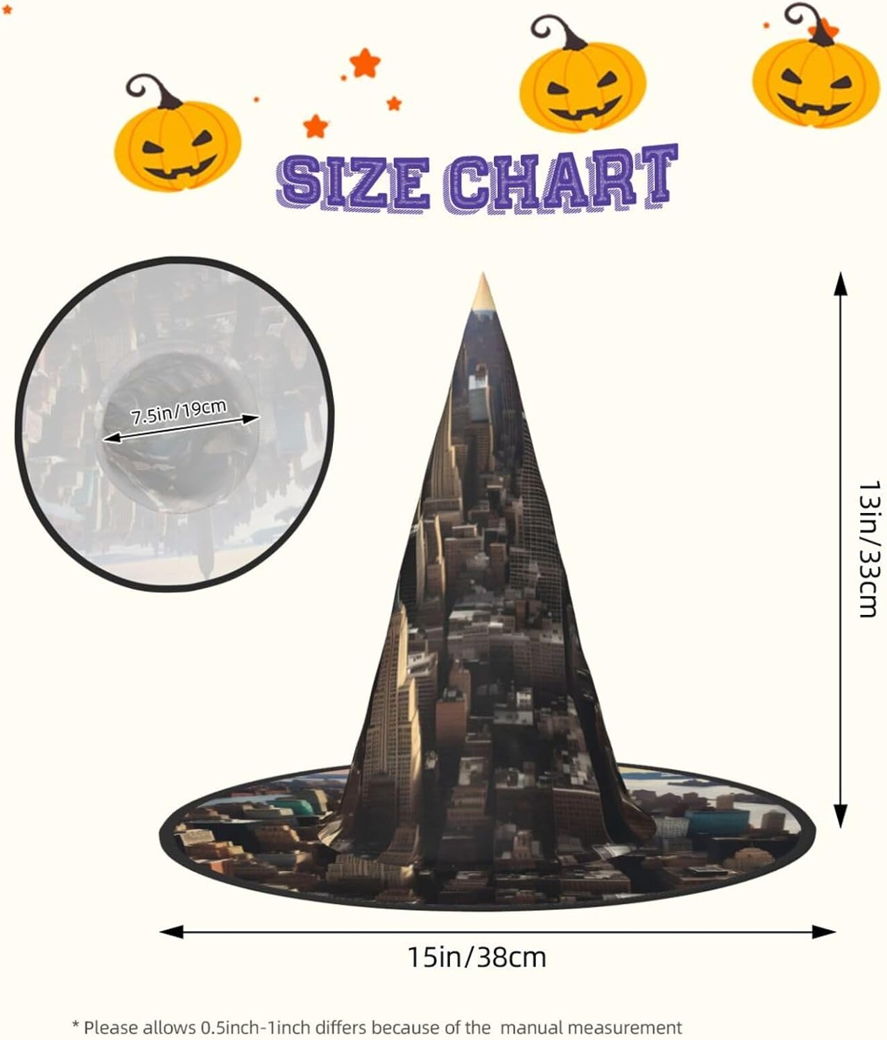 Realizzati in tessuto Oxford superiore, i nostri cappelli con stampa New York City garantiscono durata e longevità. Il design unico consente di ridurre al minimo la parte superiore del cappello e i bordi di essere attorcigliati e piegati, rendendo i cappelli salvaspazio e facilmente portatili. Ogni cappello con stampa di New York City è di dimensioni generose per adattarsi alla maggior parte delle persone ed è leggero per un uso confortevole. Si prega di leggere la tabella delle taglie prima di effettuare l'ordine. Il design versatile dei nostri cappelli da strega di Halloween con stampa New York City li rende perfetti per varie occasioni. Sono lavabili in lavatrice e ad asciugatura rapida per una facile manutenzione.