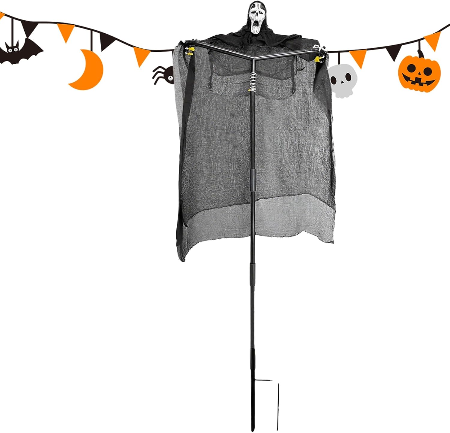 Display esterno affidabile: arricchisci il tuo spazio esterno con questa accattivante statuetta di strega. Progettato per resistere agli elementi per un uso stagionale elegante in giardini o campi. Stabilità tutto l'anno: la struttura in acciaio resistente alla ruggine con telaio rinforzato garantisce stabilità affidabile in qualsiasi condizione atmosferica, ideale per una decorazione esterna di lunga durata. Lavorazione resistente alle intemperie: componenti di alta qualità con struttura leggera infrangibile soprattutto per uso esterno. Garantisce un'atmosfera di vacanza duratura grazie alle prestazioni affidabili in caso di vento e intemperie. Perfetto per la decorazione perenne di Halloween. Figura di strega inquietante: i dettagli realistici con un mantello che si muove dal vento e un'espressione facciale distorta creano un autentico effetto horror. Ideale come decorazione da esterno di Halloween per aumentare in modo naturale le atmosfere inquietanti nel giardino o nell'ingresso di casa. Decorazione funzionale: la strega repellente per uccelli attivata dal vento combina un design spettrale con un utilizzo pratico come spavento decorativo da giardino e protezione affidabile dagli uccelli per terrazze, giardini e aree esterne ad Halloween