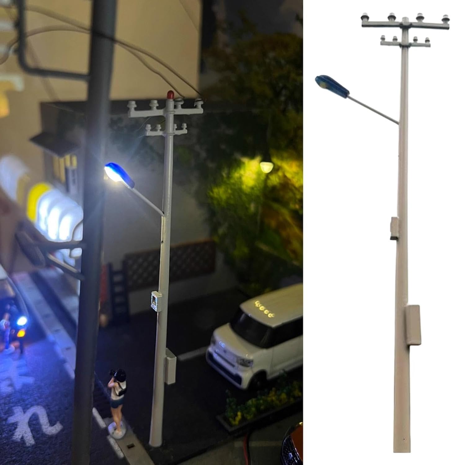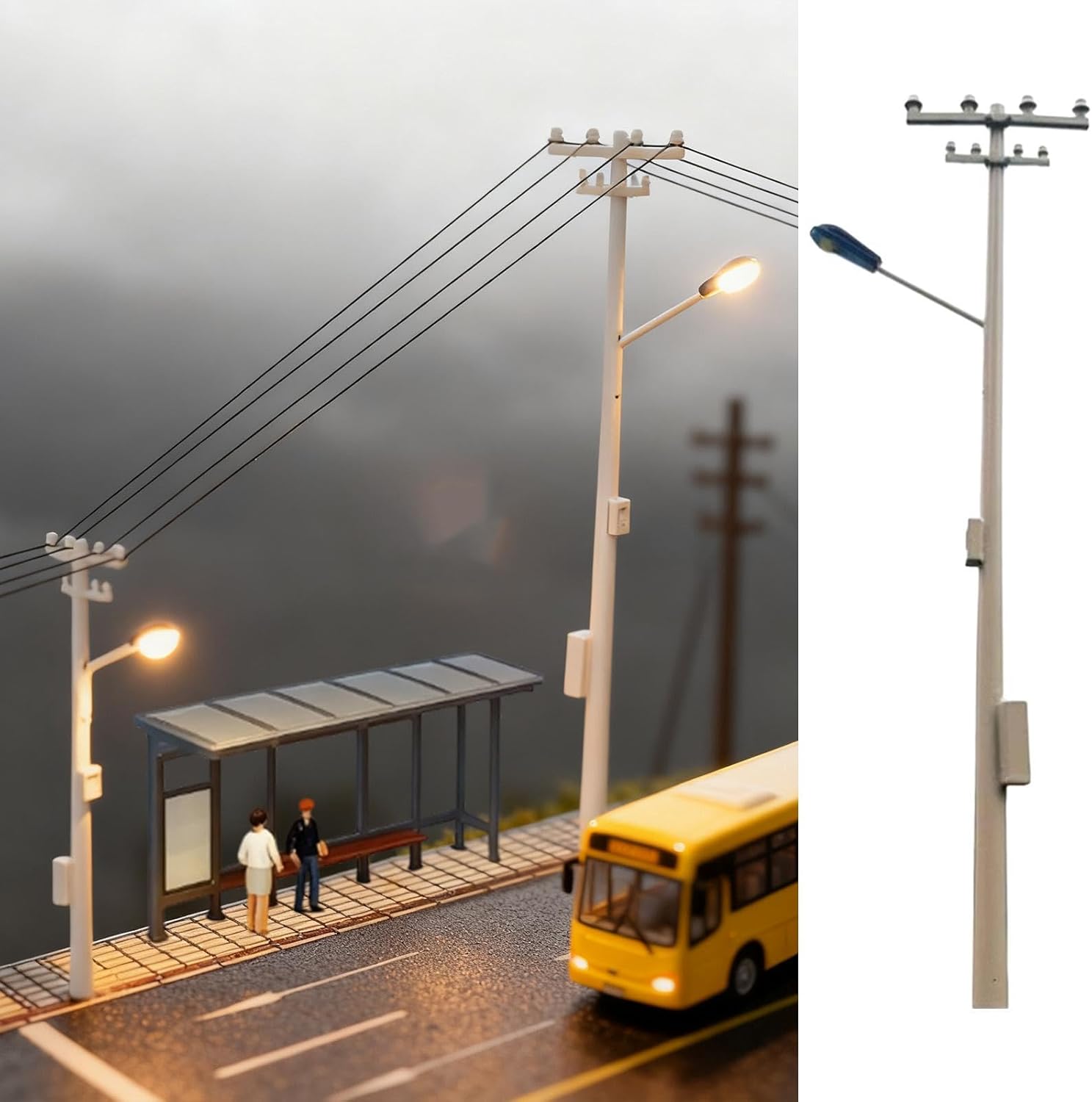 【Uso versatile per fai da te e artigianato】: accessori per la disposizione dei pali dell'elettricità in scala HO, ottimo strumento artigianale per hobbisti e appassionati di modellismo. Facile da montare: installazione semplice: posizionare il cavo in un anello, fissarlo nella fessura dell'isolante e fissarlo con colla per modelli per una finitura professionale. Design realistico: palo telefonico in miniatura in scala H0 con design realistico e dettagliato, ottimi accessori decorativi per plastici ferroviari, diorami e modellismo architettonico.