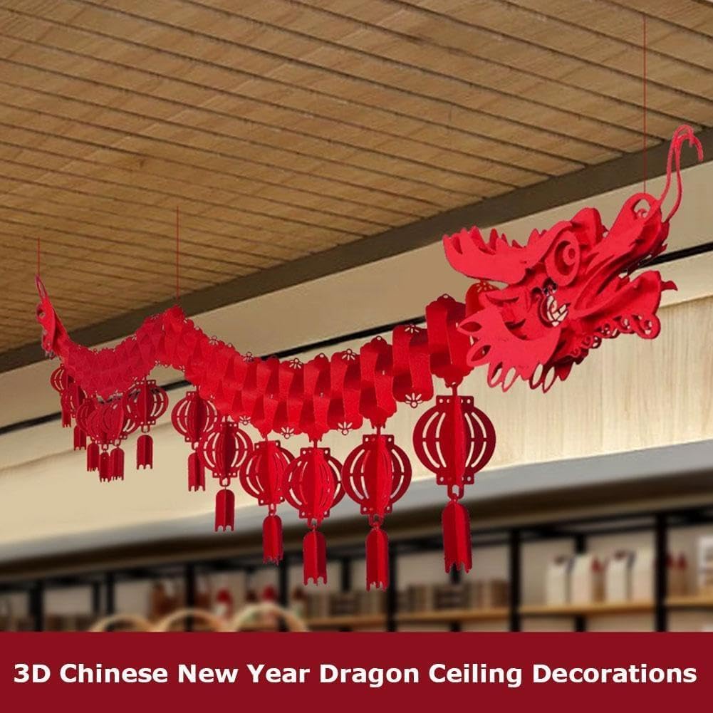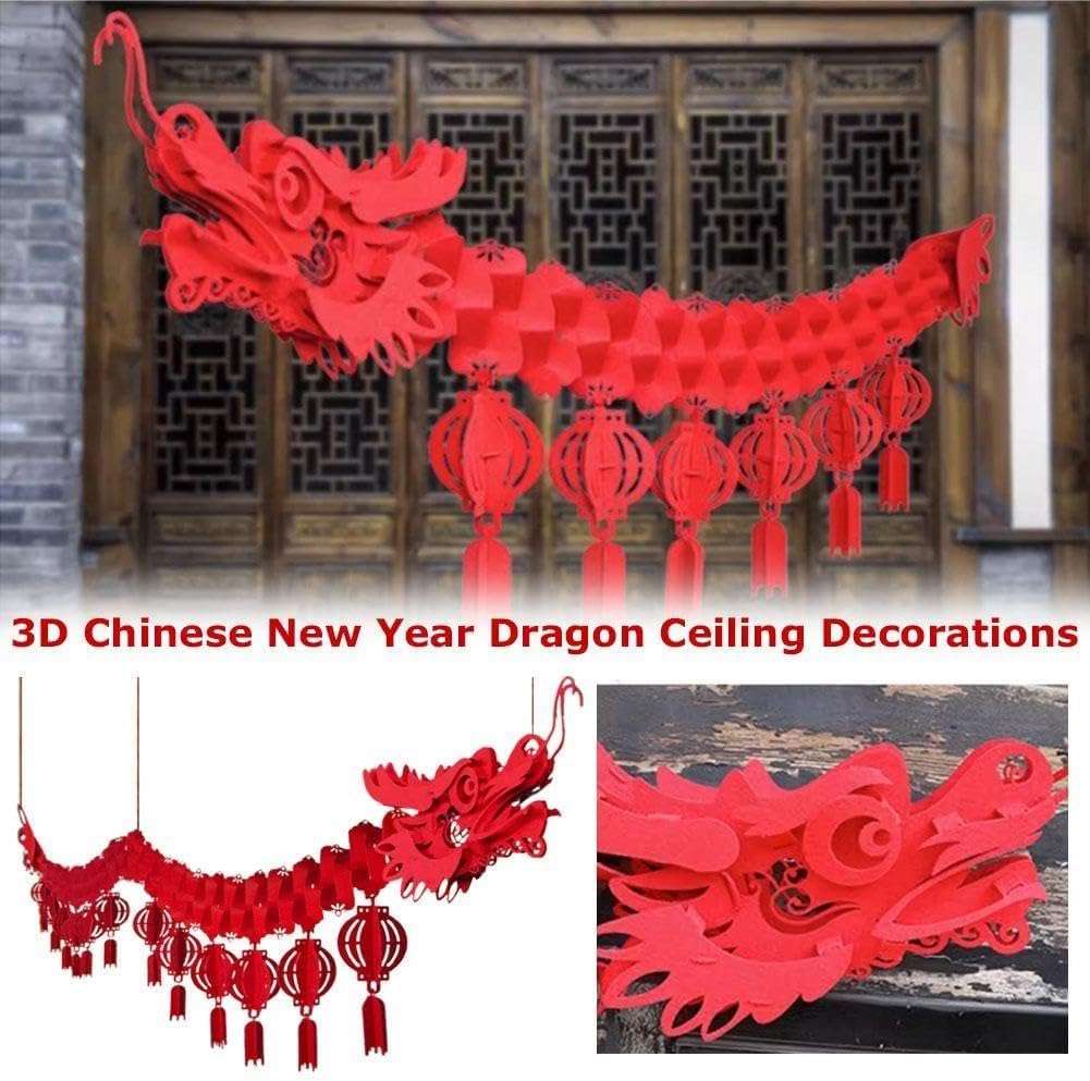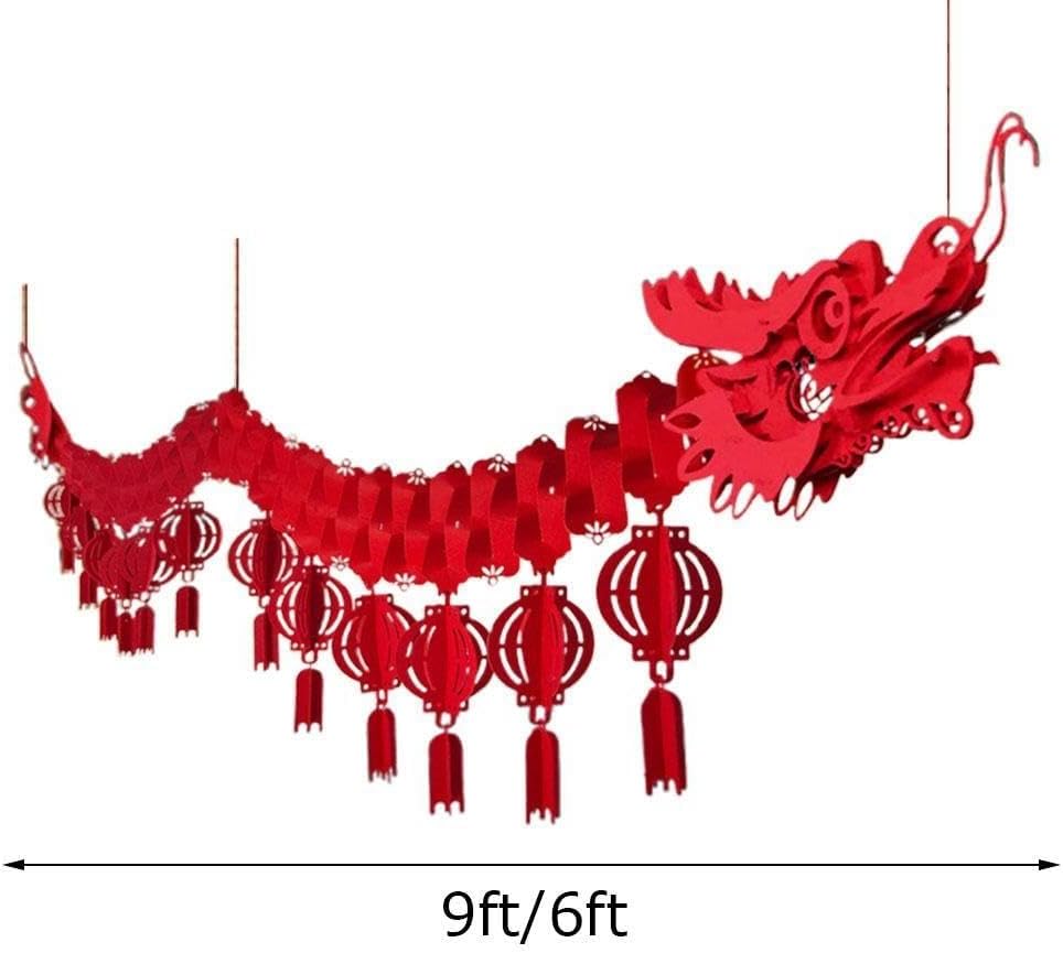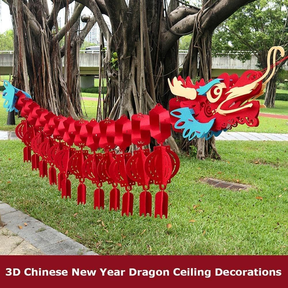 5. Multiuso: non solo può essere appeso alla parete del soggiorno, ma può anche essere utilizzato per decorare eventi di banchetti familiari o luoghi commerciali per mostrare il fascino della cultura tradizionale cinese.,Lanterne rosse simboliche: le lanterne rosse simboleggiano riunioni e feste di famiglia, rendendole indispensabili per creare un'atmosfera festiva indimenticabile. Queste lanterne sono adatte sia per uso interno che esterno e aggiungono fascino alla tua decorazione. 【Dimensioni】 La decorazione del drago cinese misura 1,8-2,7 m, queste dimensioni le rendono perfette aggiunte al tuo arredamento festivo, migliorano l'attrattiva visiva delle tue celebrazioni. Decorazione del drago con ciondolo a lanterna: la decorazione del drago del Capodanno cinese con ciondolo a lanterna, simboleggia buona fortuna. Appendi questa ghirlanda di carta al tuo ingresso per trasmettere gli auguri per il nuovo anno. Si prega di notare che la decorazione del drago deve essere assemblata, seguendo i passaggi dettagliati nel manuale di istruzioni (potrebbe non essere in inglese). 3. Felice benedizione: la decorazione è anche decorata con carattere (che significa "fortuna") e motivi decorativi, che simboleggiano un anno nuovo dolce e felice