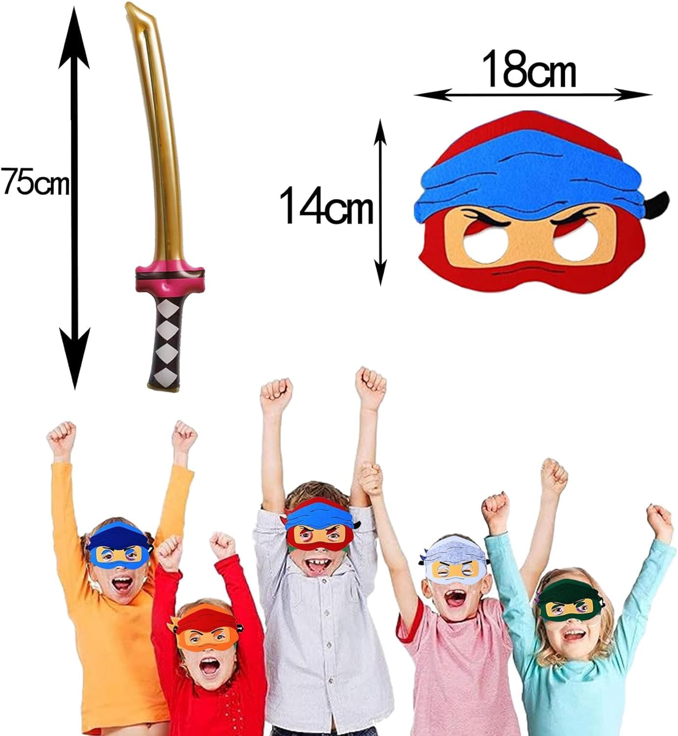 Set da gioco per bomboniere per feste di compleanno ninja da 24 pezzi: include 8 maschere ninja, 8 accessori ninja gonfiabili per bambini con spada ninja, 8 anelli elastici giocattoli ninja. Borsa per festa di compleanno dal design carino: questa borsa da festa per bambini è una decorazione di compleanno vivace e carina, indossa le maschere e gli accessori gonfiabili ninja e la fionda per le dita, puoi provare l'esperienza coinvolgente di trasformarti in un guerriero, regalare ai tuoi bambini una festa davvero speciale! Decorazione di compleanno per ragazzi Alta qualità: il riempitivo per sacchetti da festa è realizzato in materiale siliconico di alta qualità, morbido e confortevole, atossico e inodore. La fionda per le dita è altamente elastica e super elastica e la maschera in feltro è morbida e delicata sulla pelle, il che porta un divertimento senza fine ai bambini. Pinata che riempie i contenuti del calendario dell'avvento per ragazze. Occasioni applicabili: questo fantastico set di giocattoli multifunzionale è adatto a tutti i tipi di feste di guerrieri ninja, feste di compleanno, feste di Halloween, feste di Natale, feste del Ringraziamento e altro ancora. Ideale per premi come scrigni del tesoro, premi in classe, feste in maschera, riempitivi per borse per bomboniere, rave party, riempitivi per calze e omaggi per feste. La nostra promessa: la tua soddisfazione è la nostra massima priorità. Se sei soddisfatto o lo restituisci entro 30 giorni, ti rimborseremo l'intero importo. Grazie per la fiducia e il supporto.