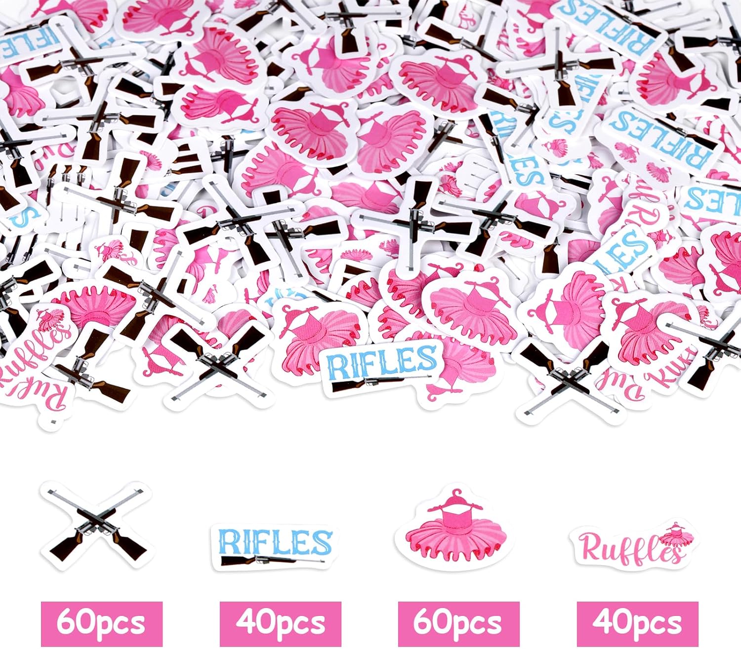 Il pacchetto include: Riceverai 200 pezzi di coriandoli con pistole o volant (40 pistole con lettere, 40 volant con lettere, 60 pistole e 60 volant) Pistole o volant. Rivelazione del genere: il colore dei coriandoli è rosa e blu. I coriandoli sono realizzati in carta con un design double-face che garantisce durata e un colore vibrante. I colori rosa e blu attirano l'attenzione e creano un'atmosfera divertente alla tua festa di rivelazione di genere. Ampie applicazioni: i coriandoli con pistole o volant possono essere utilizzati per varie occasioni, come pistole o volant, rivelazione di genere, baby shower, rivelazioni di genere rosa e blu, annunci di gravidanza e altro ancora. Facile da usare: basta aprire la confezione e versare i coriandoli su una superficie. I coriandoli cadranno a cascata creando un bellissimo spettacolo di rosa o blu. È facile da pulire e non lascia disordine. REGALO UNICO: questi coriandoli rivelano il genere sono un regalo unico e memorabile per i futuri genitori. Faranno tesoro dei ricordi della loro festa di rivelazione del genere per gli anni a venire