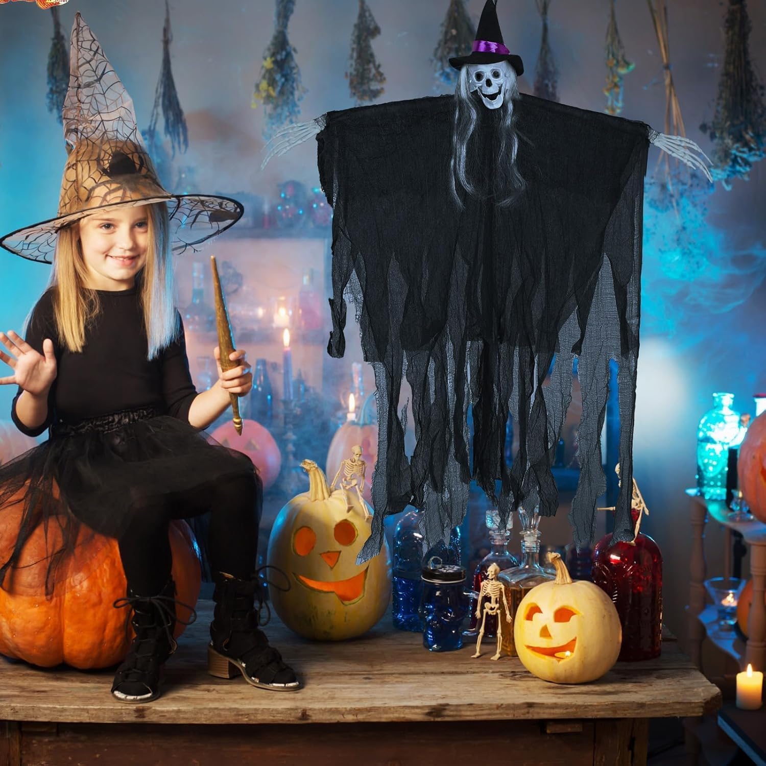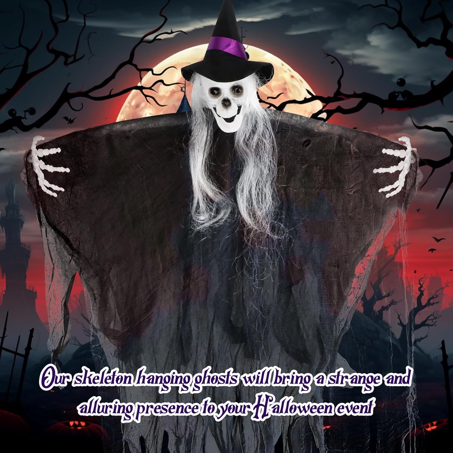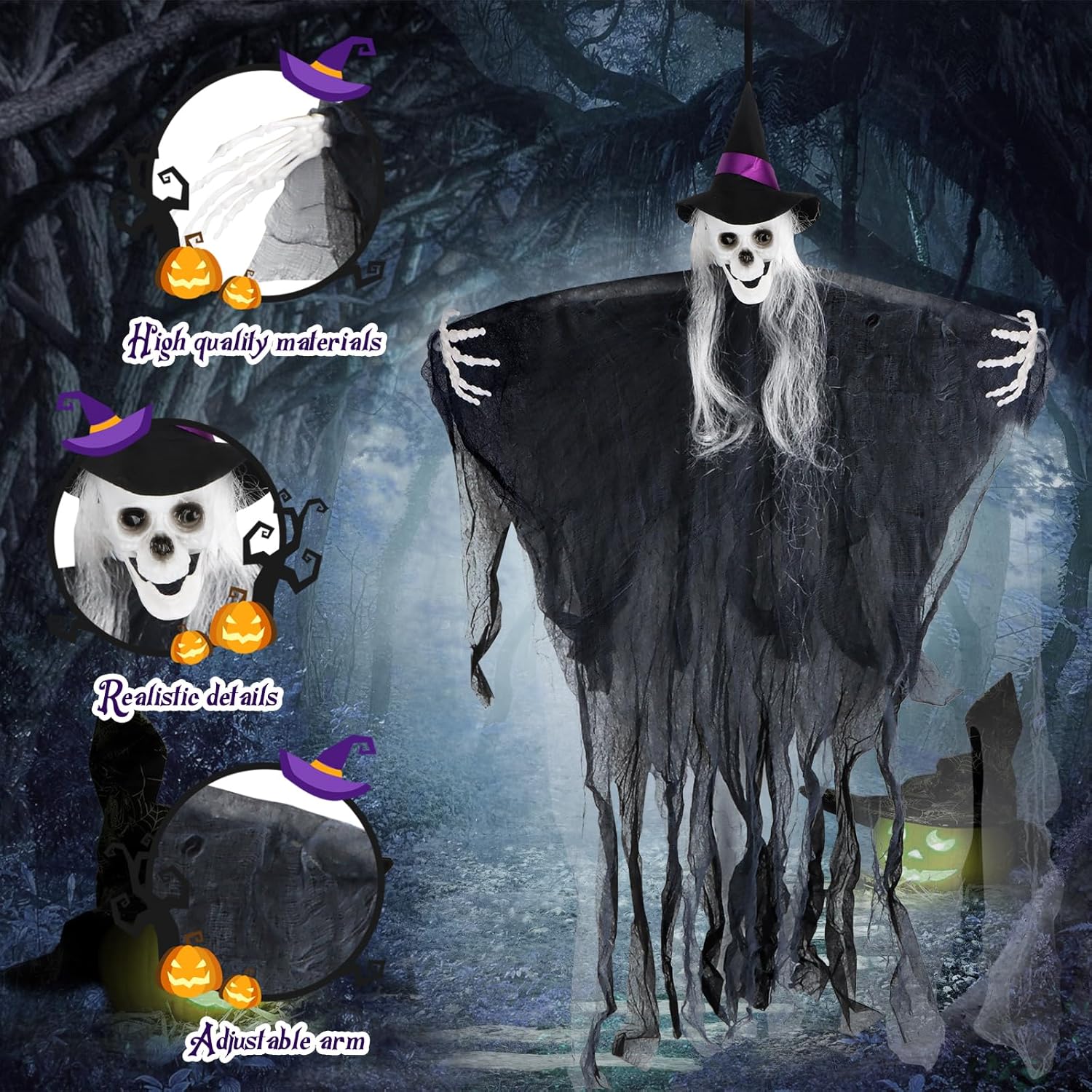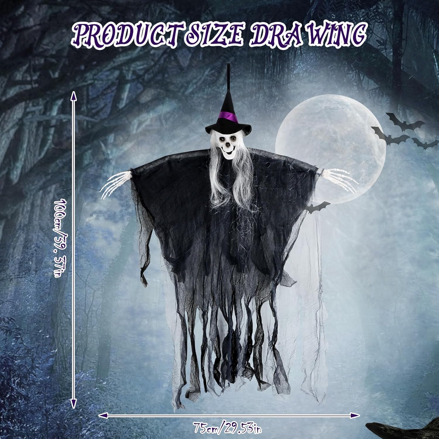 【Design horror realistico】 Con una dimensione impressionante di 39 pollici, questo fantasma scheletro a grandezza naturale affascinerà e spaventerà sicuramente i tuoi ospiti. La sua immagine spettrale, insieme ai lunghi capelli bianchi, agli orgasmi e ai vestiti stracciati, è un'ottima aggiunta alle tue decorazioni di Halloween. 【Costruzione di qualità】 Le nostre figure spaventose sono realizzate in plastica di alta qualità in grado di resistere agli elementi esterni pur mantenendo il loro fascino spettrale. Sono l'aggiunta perfetta alle case stregate di Halloween interne ed esterne e sono progettate per durare. 【Installazione semplice】 Questa decorazione fantasma può essere appesa ovunque ed è un'aggiunta versatile alle decorazioni di Halloween. Crea senza sforzo un'atmosfera spettrale sia all'interno che all'esterno. 【Pose e versatilità】 Con la mano a filo, puoi facilmente regolare gli arti del fantasma per assumere una posa spettrale unica. Appendilo in casa, su un albero o in veranda per spaventarti! 【Perfetto per tutte le occasioni】 Che tu stia organizzando una festa di Halloween, decorando il tuo giardino o allestendo una casa infestata, questo fantasma scheletro è perfetto per te.