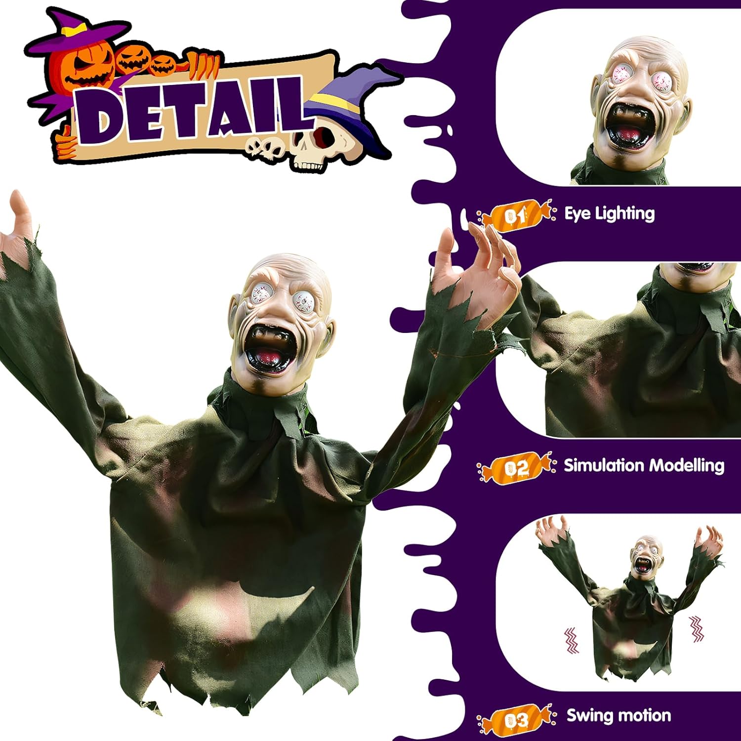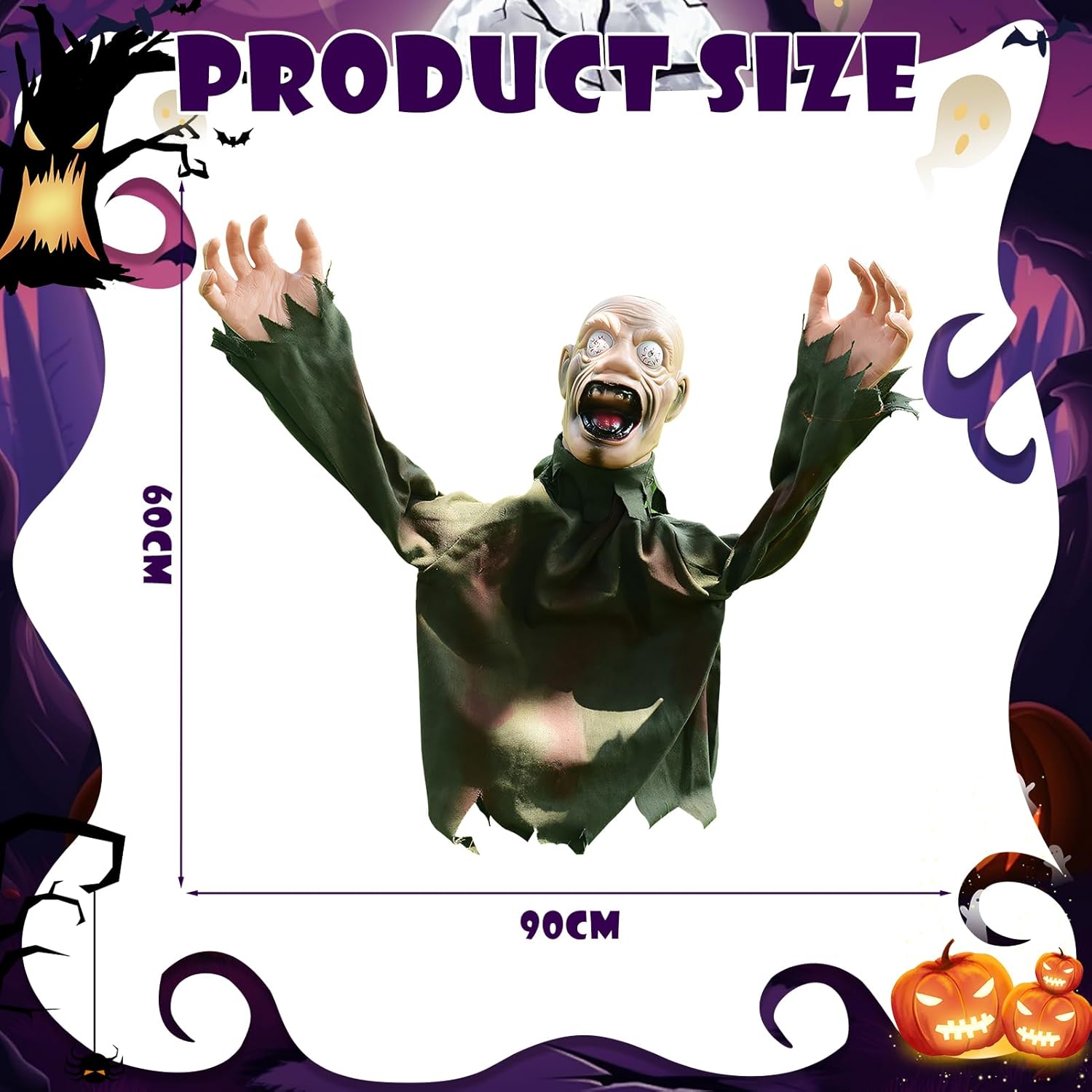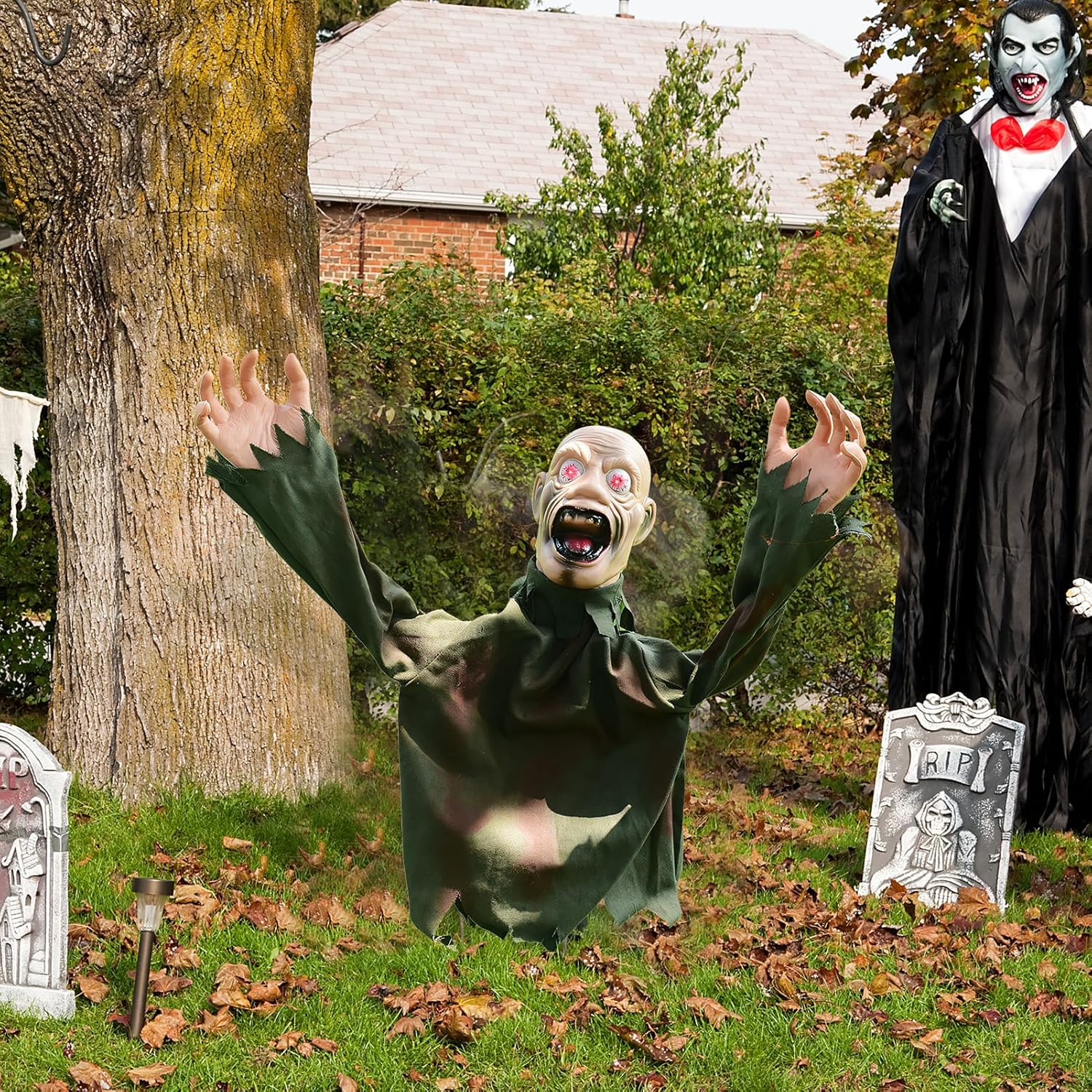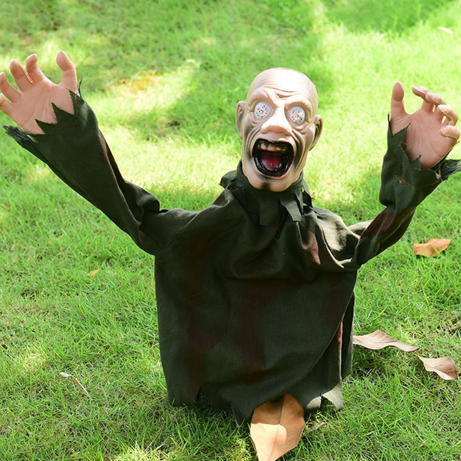 【Zombie all'aperto con decorazione di Halloween】 Questo zombie Xxl animato con decorazione di Halloween può fungere da pali del prato e spaventare gli ospiti con il suo aspetto spaventoso. Questo zombi di Halloween è l'uomo giusto per migliorare l'effetto decorativo di Halloween all'aperto e migliorare rapidamente l'orrore della scena. 【Risate terribili e occhi LED】 Come giardino decorativo di Halloween, Halloween Animatronic Zombies ha opzioni piccole (609016 cm) e grandi (7510019 cm). Questo animatronico di Halloween colpisce e provoca risate terribili. Anche i suoi occhi si illumineranno di rosso come quelli di un vero zombie e sono una riqualificazione di alta qualità per Halloween in giardino. 【Adattamento multi-scena】 Questa decorazione di Halloween per esterni è un'eccellente scelta di decorazione per la tua casa, una scena di cimitero o una festa di Halloween e può integrare perfettamente varie disposizioni di atmosfera horror per soddisfare le esigenze di scene diverse. 【Decorazione di Halloween all'aperto】 Gli zombie da giardino con decorazione di Halloween possono essere appositamente progettati per la decorazione di Halloween all'aperto e possono essere utilizzati con altre decorazioni per migliorare ulteriormente la strana atmosfera all'aperto e rendere aree esterne come cortili e prati pieni di solida atmosfera horror. 【Effetto realistico ed emozionante】 Questo scheletro da esterno con decorazione di Halloween può aiutare a creare scene horror spaventose. Con la sua forma unica e gli effetti dinamici, l'intera scena horror è più completa e realistica e l'esperienza di Halloween è più profonda.